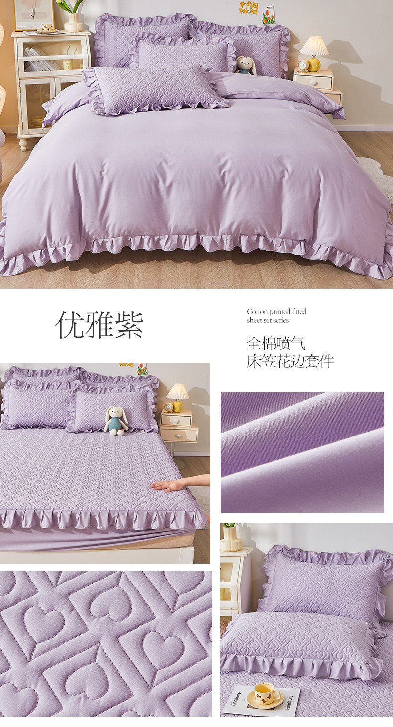 宜凡 2023新款全棉印花床笠四件套 优雅紫