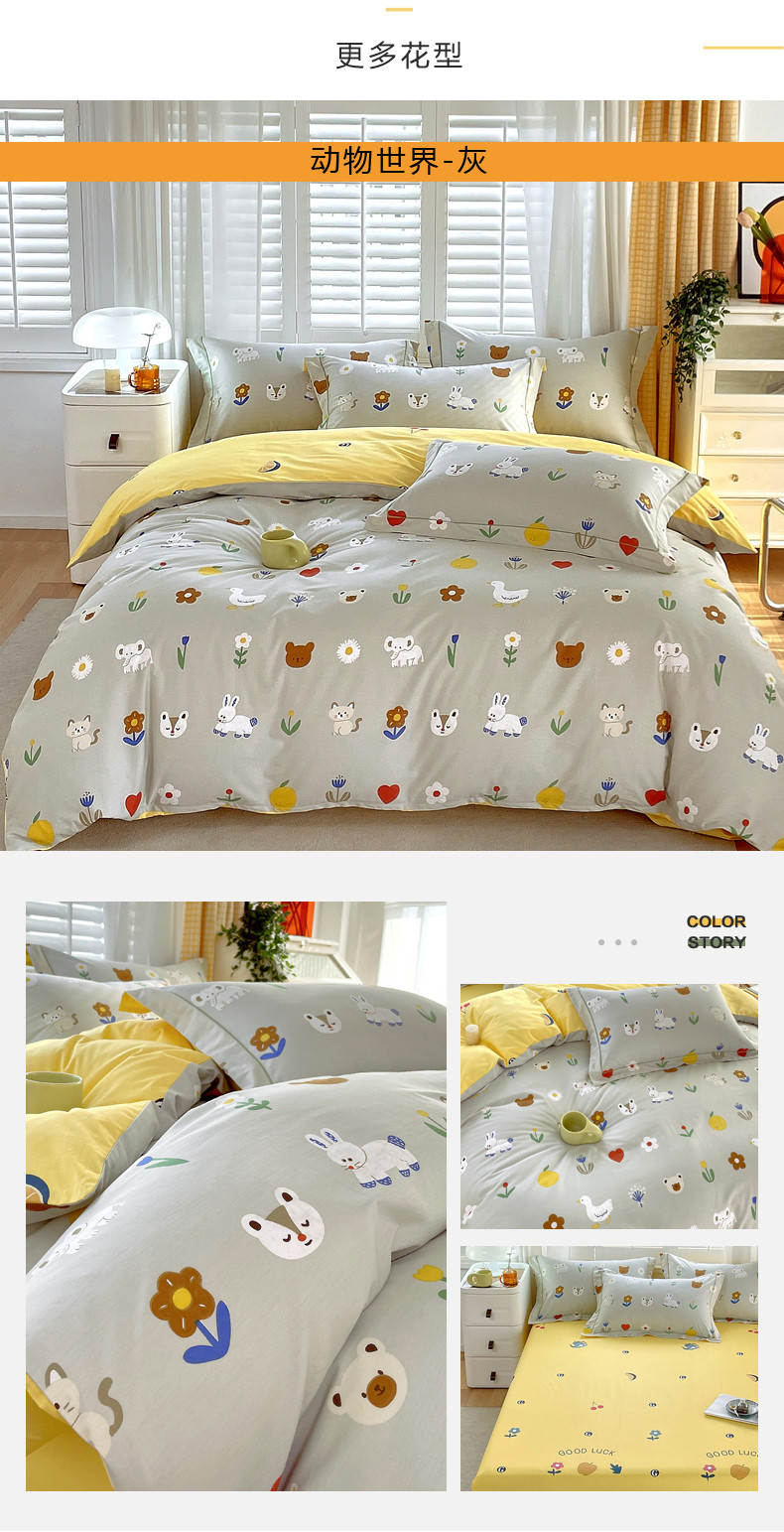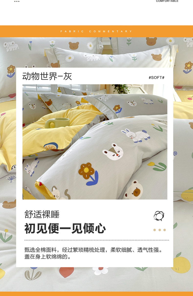 商品名称:星期三家纺 2023新款6月新款铂金全棉13372四件套(加老板微信有会员价) 动物世界-灰