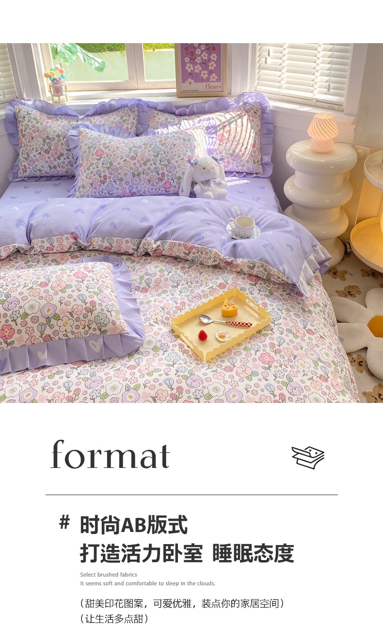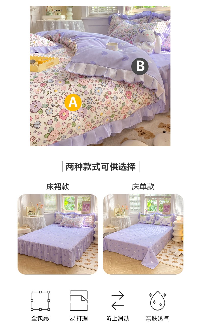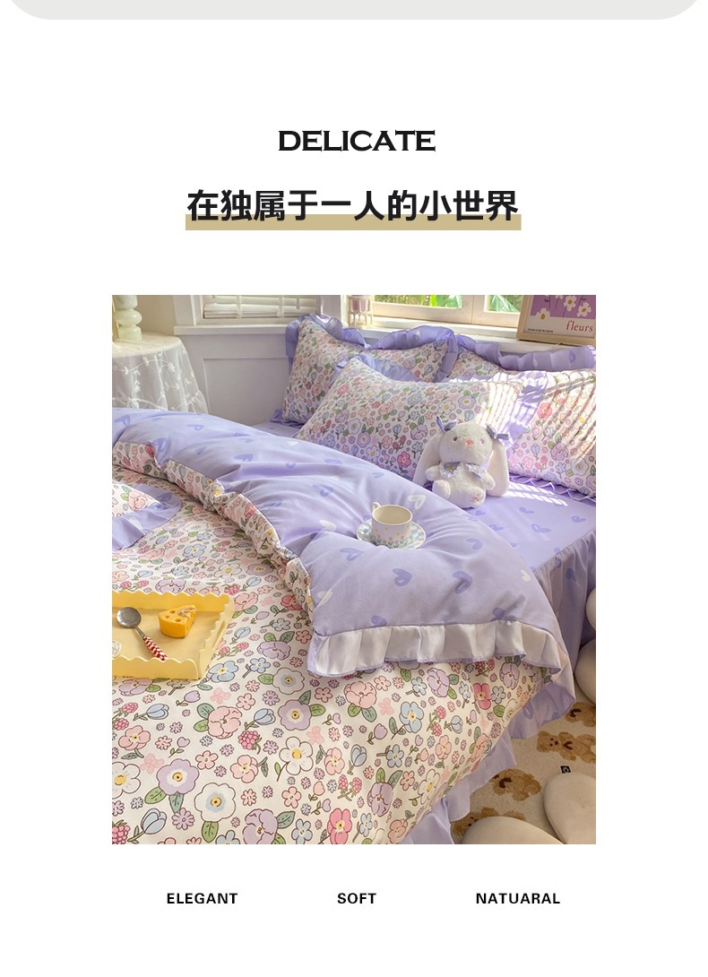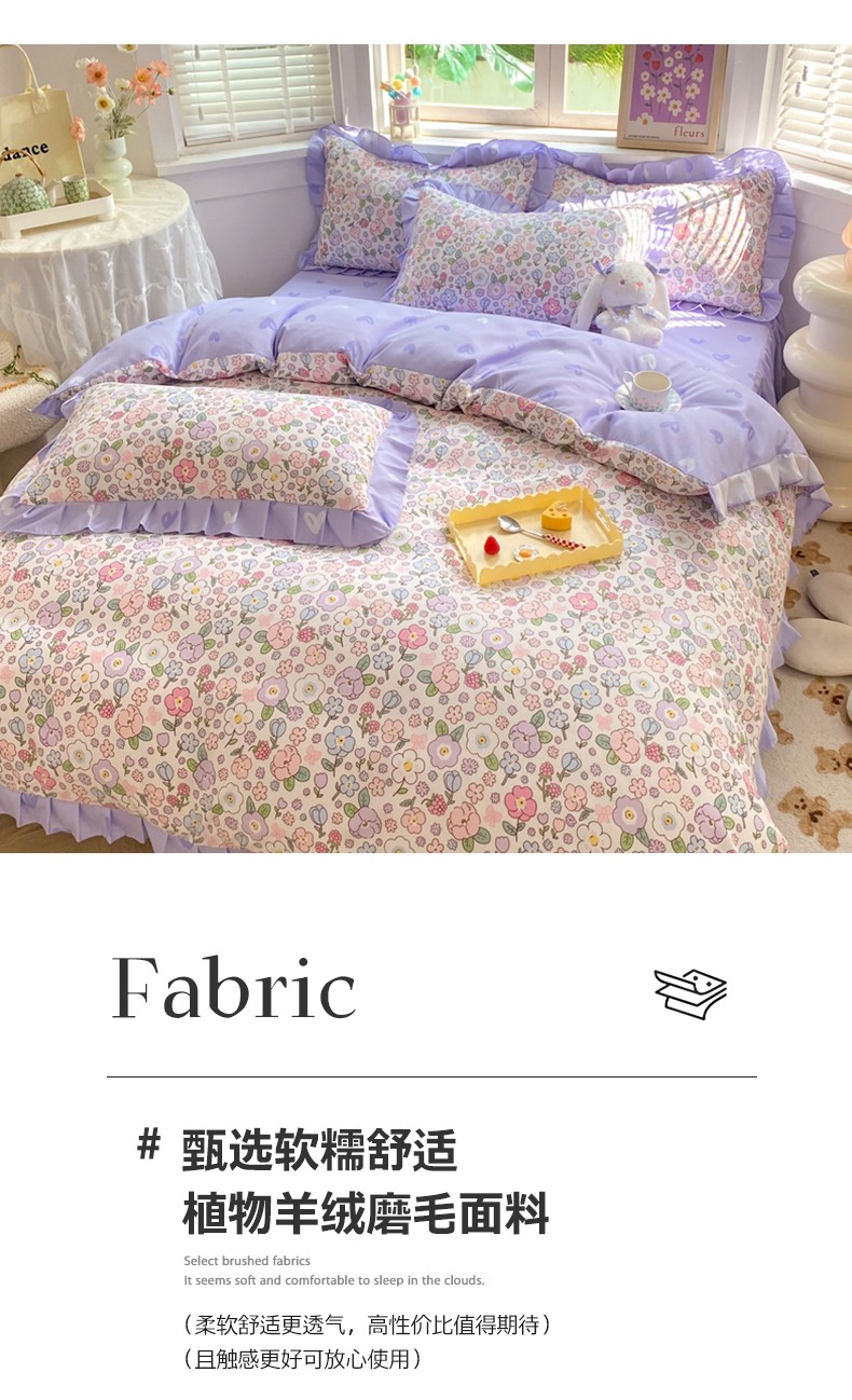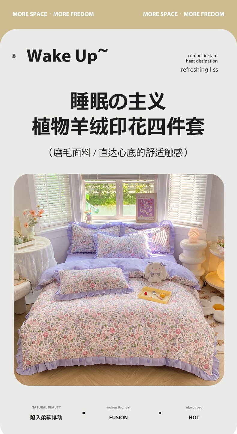 当前位置: 91家纺网 > 商品网购 > 床品套件 > 四件套 > 磨绒四件套 > 秋艳 新款直播电商爆款韩版公主风加厚磨毛植物羊绒床裙四件套 遇见浪漫