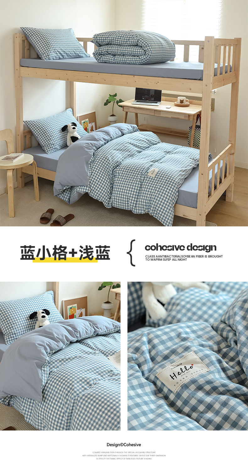当前位置: 91家纺网 > 商品网购 > 床品套件 > 多件套 > 多件套 > 寐眠 2023新款全棉AB版水洗棉学生三件套 蓝小格+浅蓝
