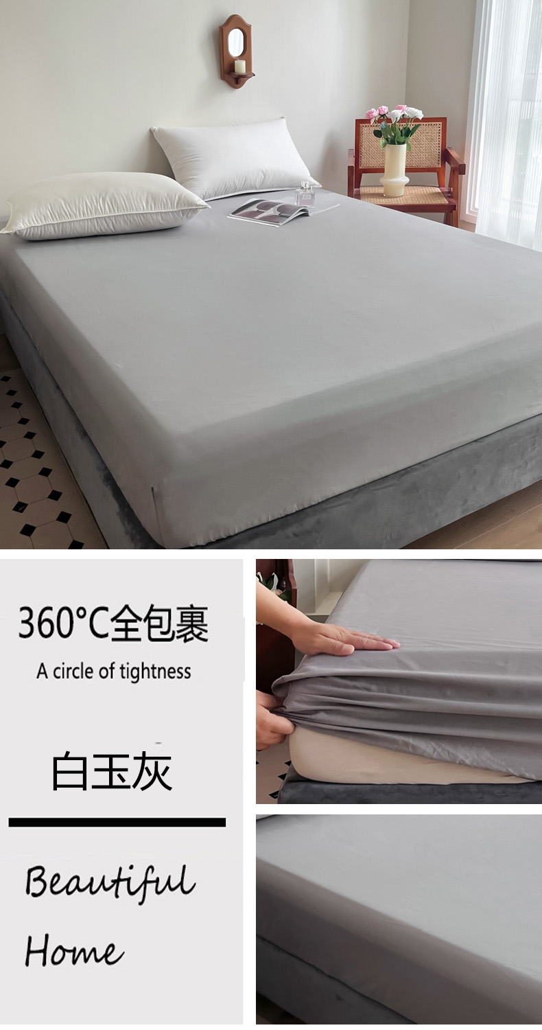 艾迪尚家纺 2025新款100s生态全棉纯色磨毛单品床笠 白玉灰
