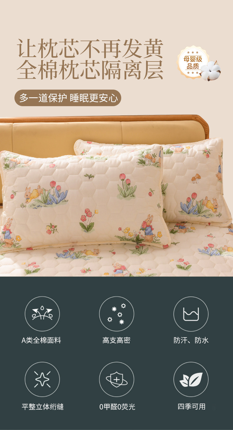 商品名称:九亭2023新款A类纯棉防油防汗防口水家用枕套 防水款-蘑菇屋