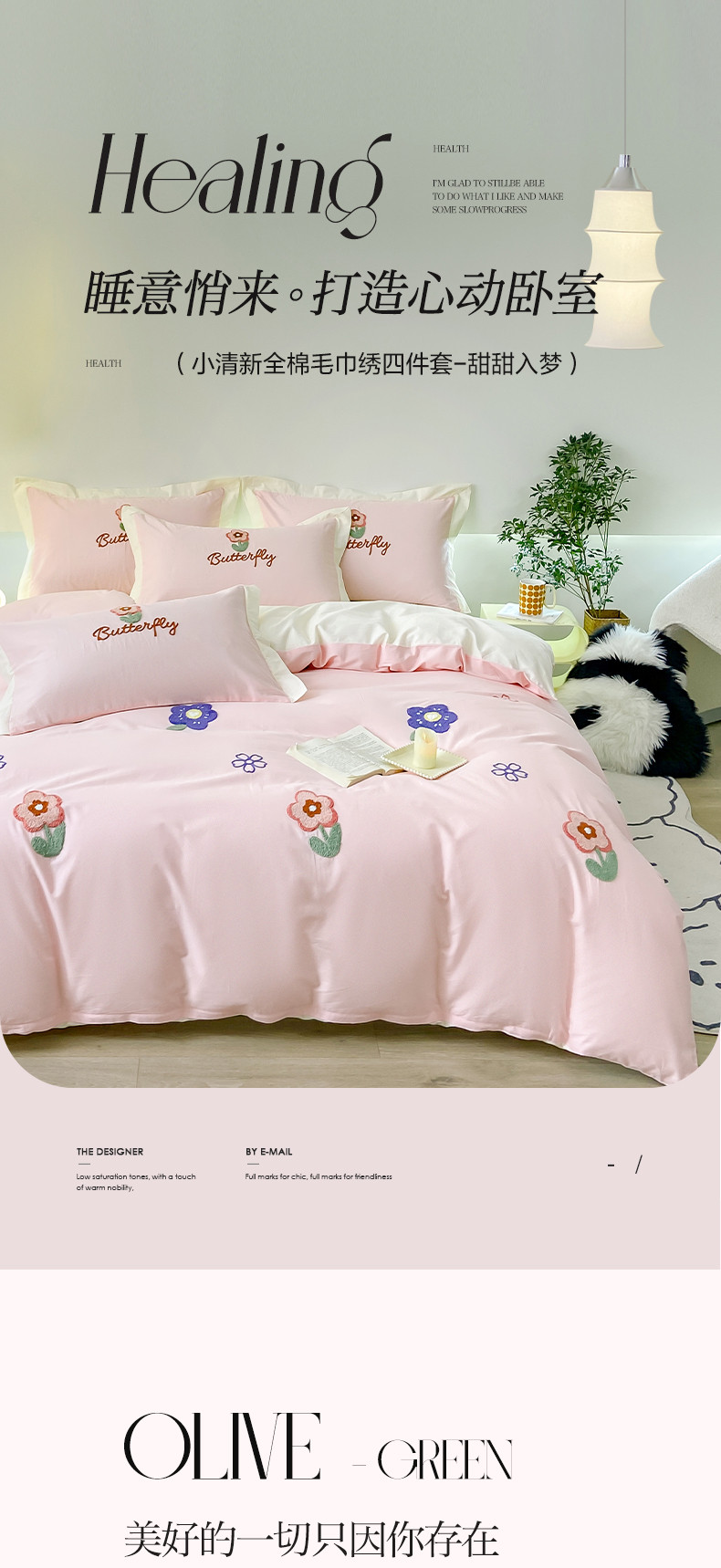 帅露 2023新款全棉ins小清新毛巾绣系列四件套三件套 花盼