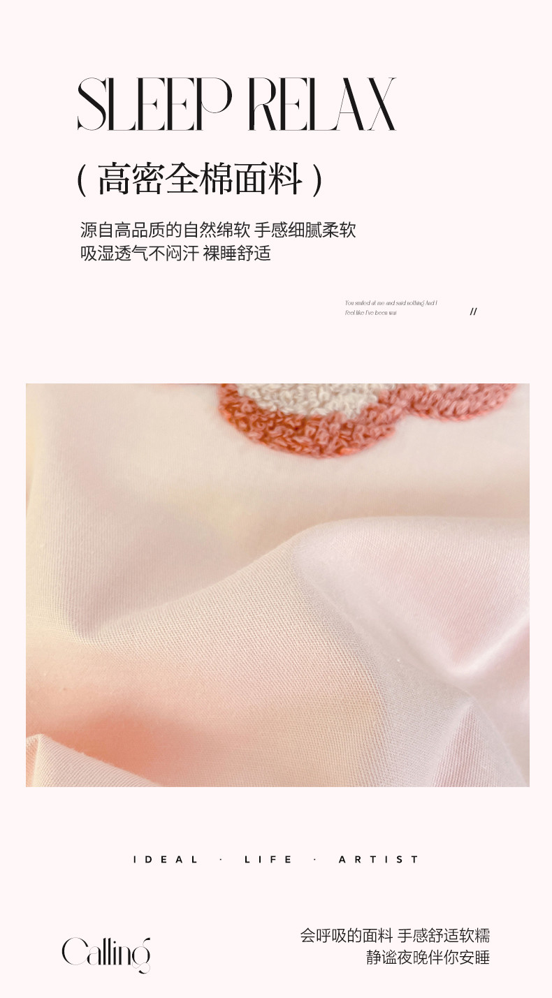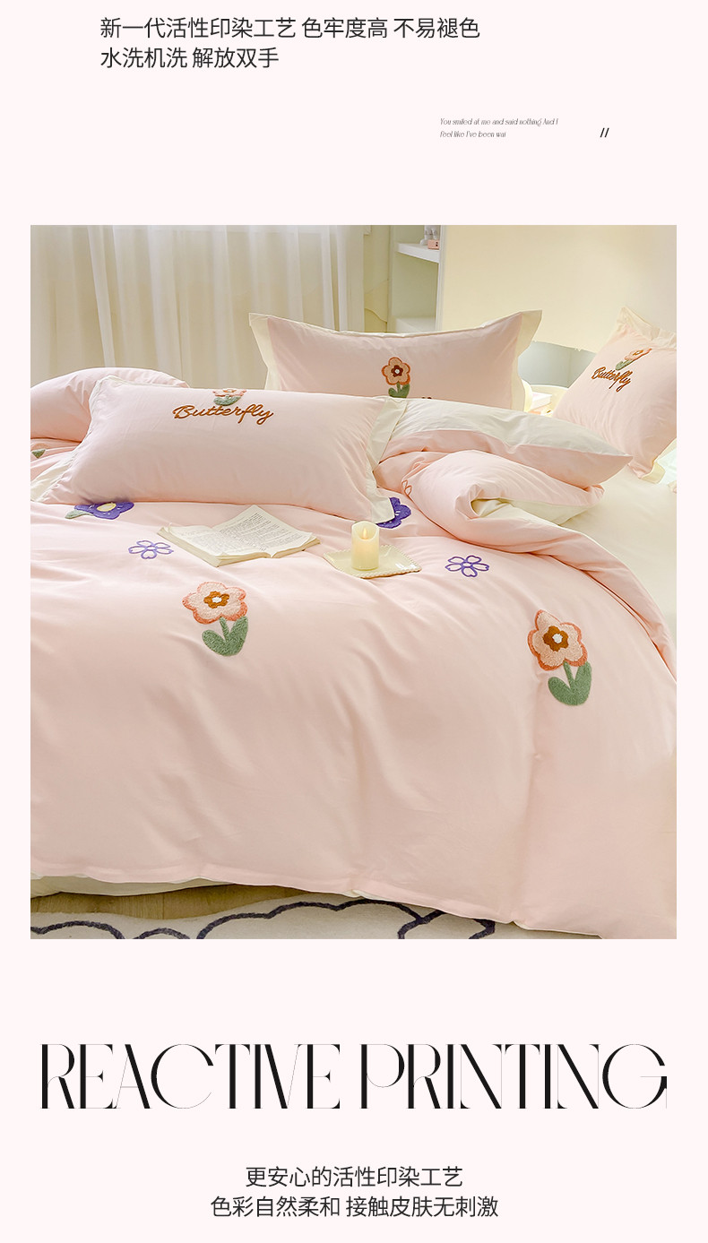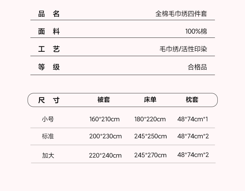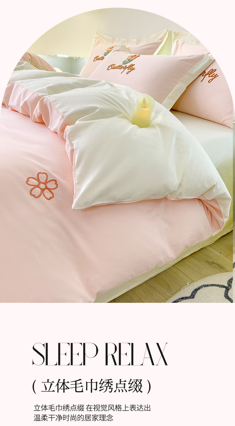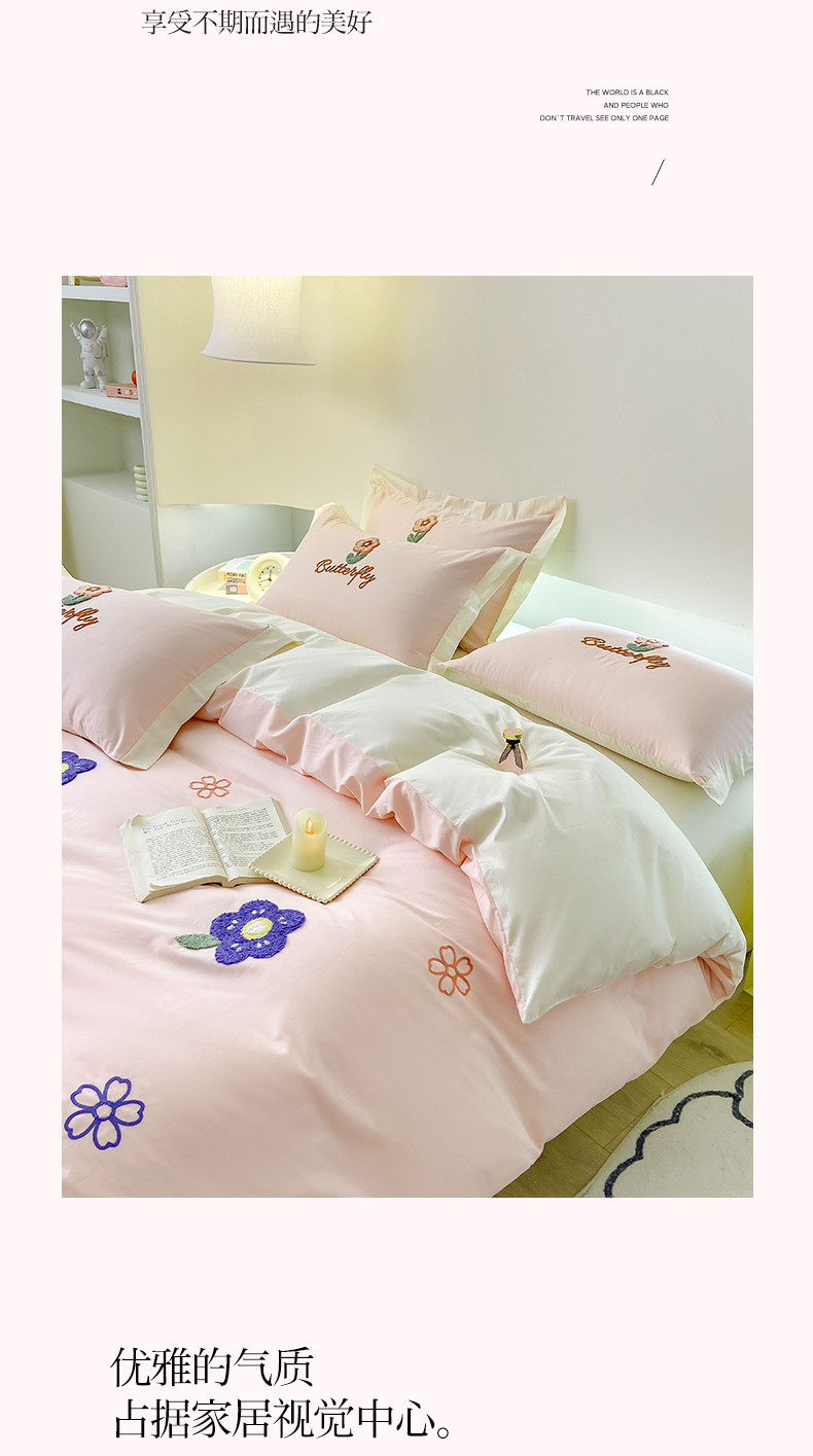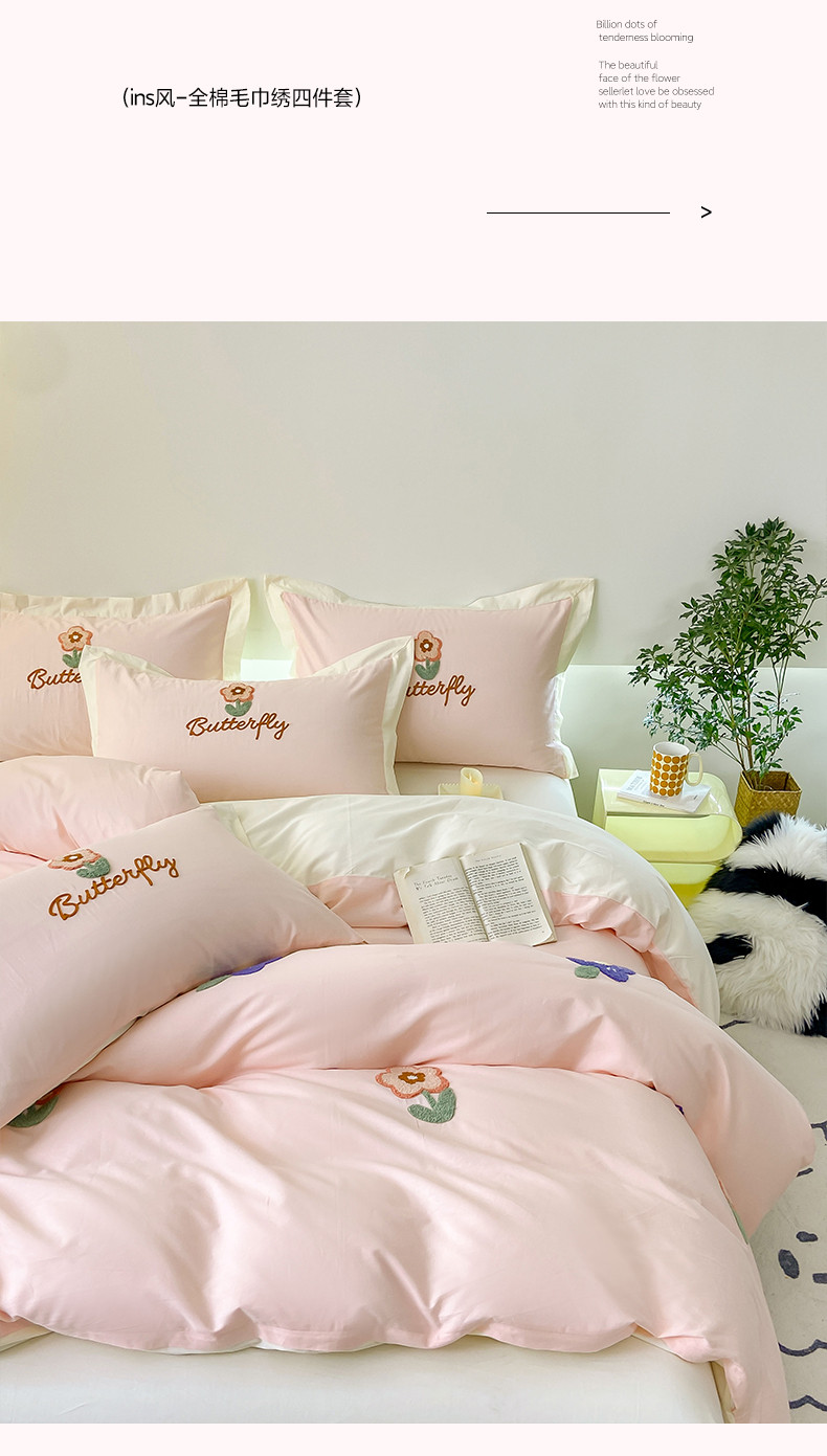 商品名称:帅露 2023新款全棉ins小清新毛巾绣系列四件套三件套 花盼
