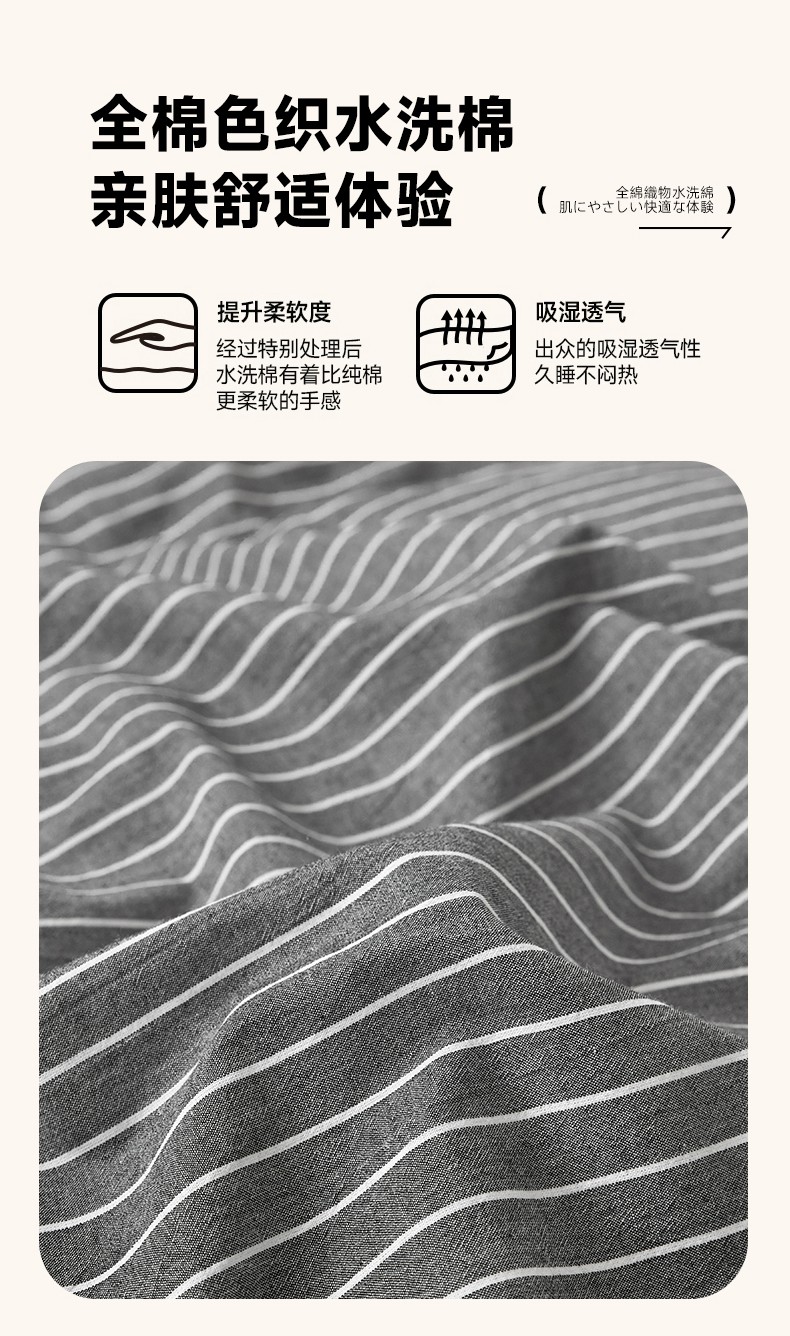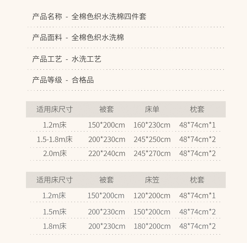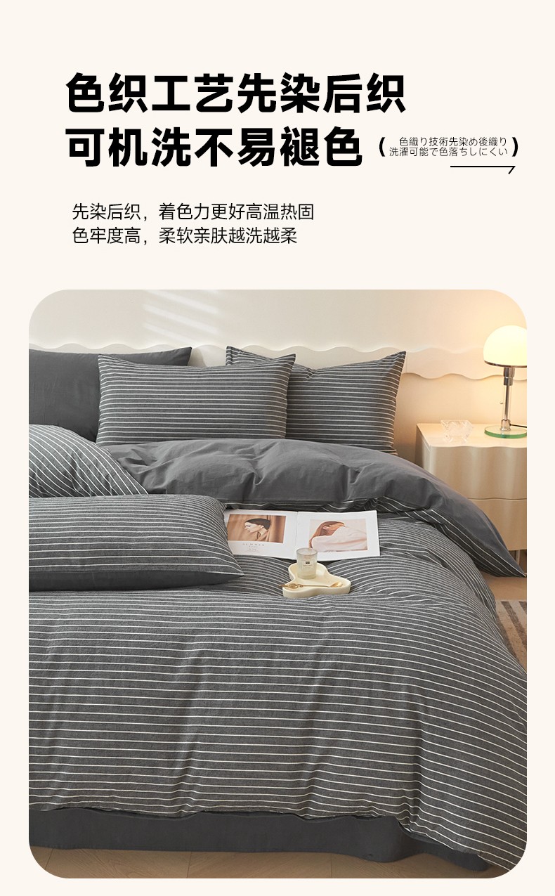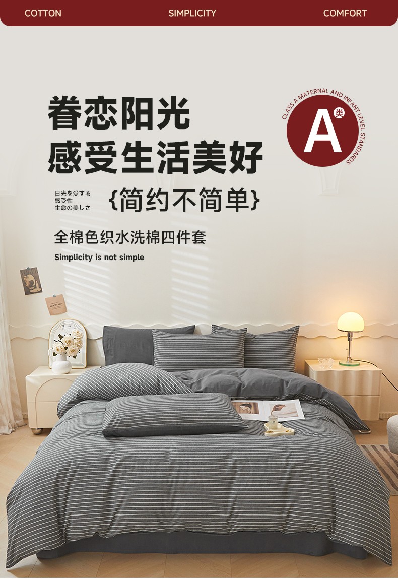 商品名称:吉象 2023新款全棉色织水洗棉四件套 拿铁