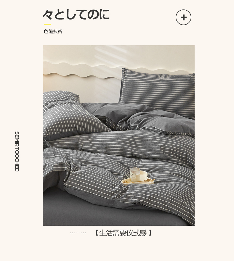 吉象 2023新款全棉色织水洗棉四件套 拿铁