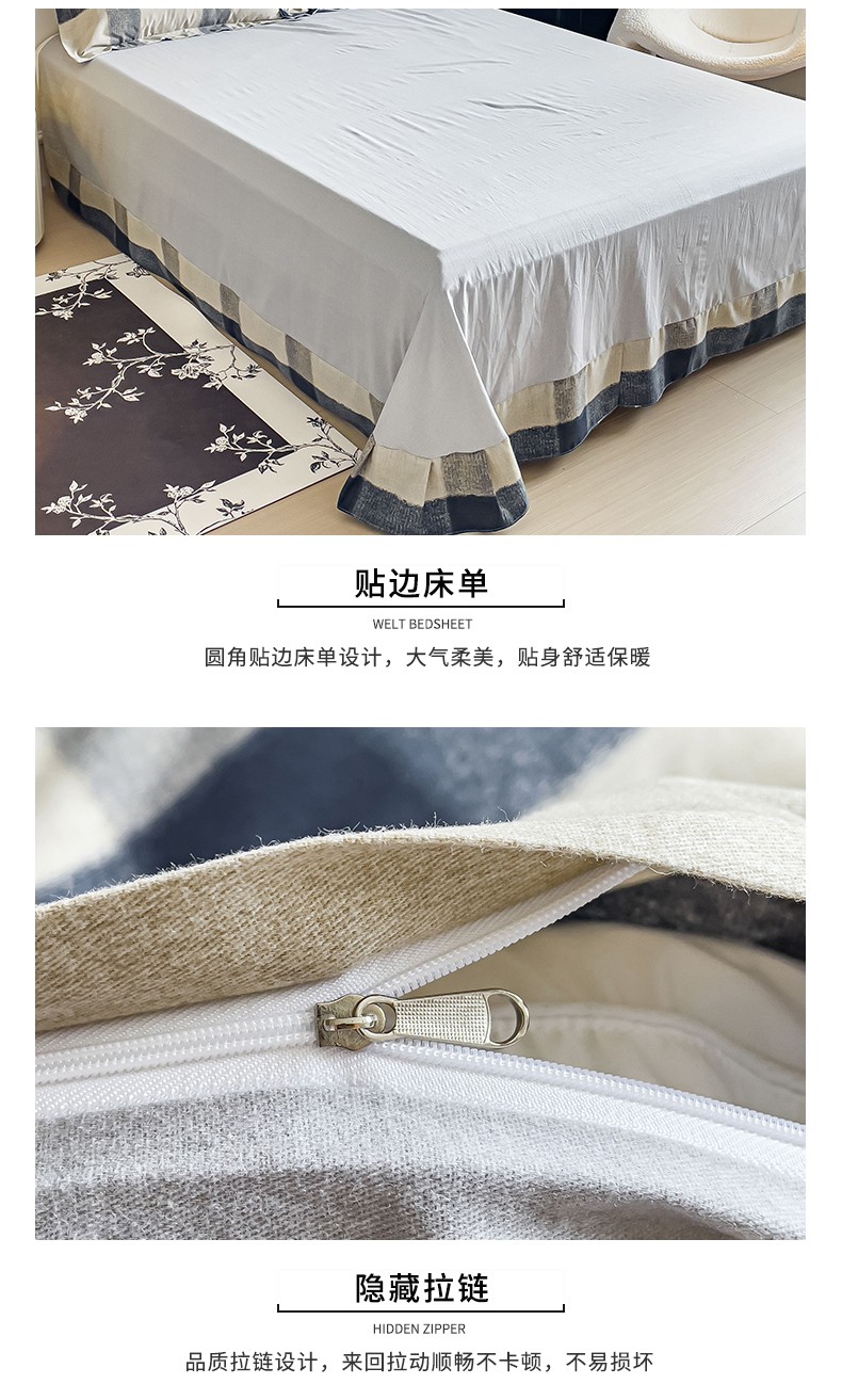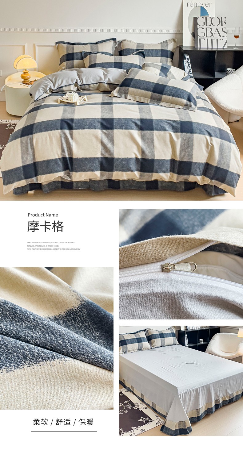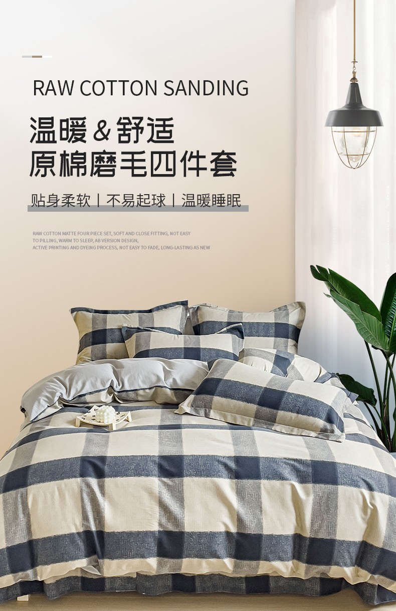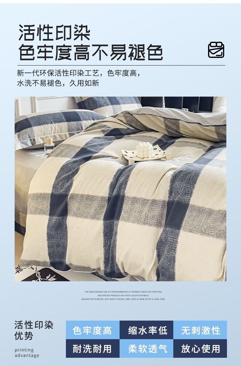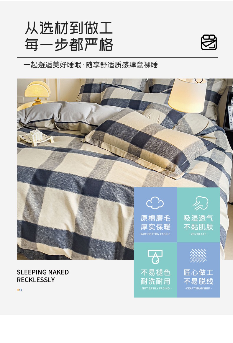 商品名称:金丝鸟 2023新款原棉磨毛四件套简约系列 摩卡格