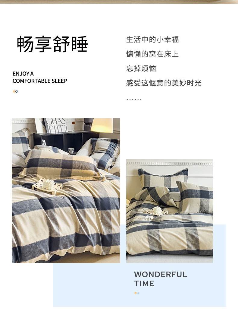金丝鸟 2023新款原棉磨毛四件套简约系列 摩卡格