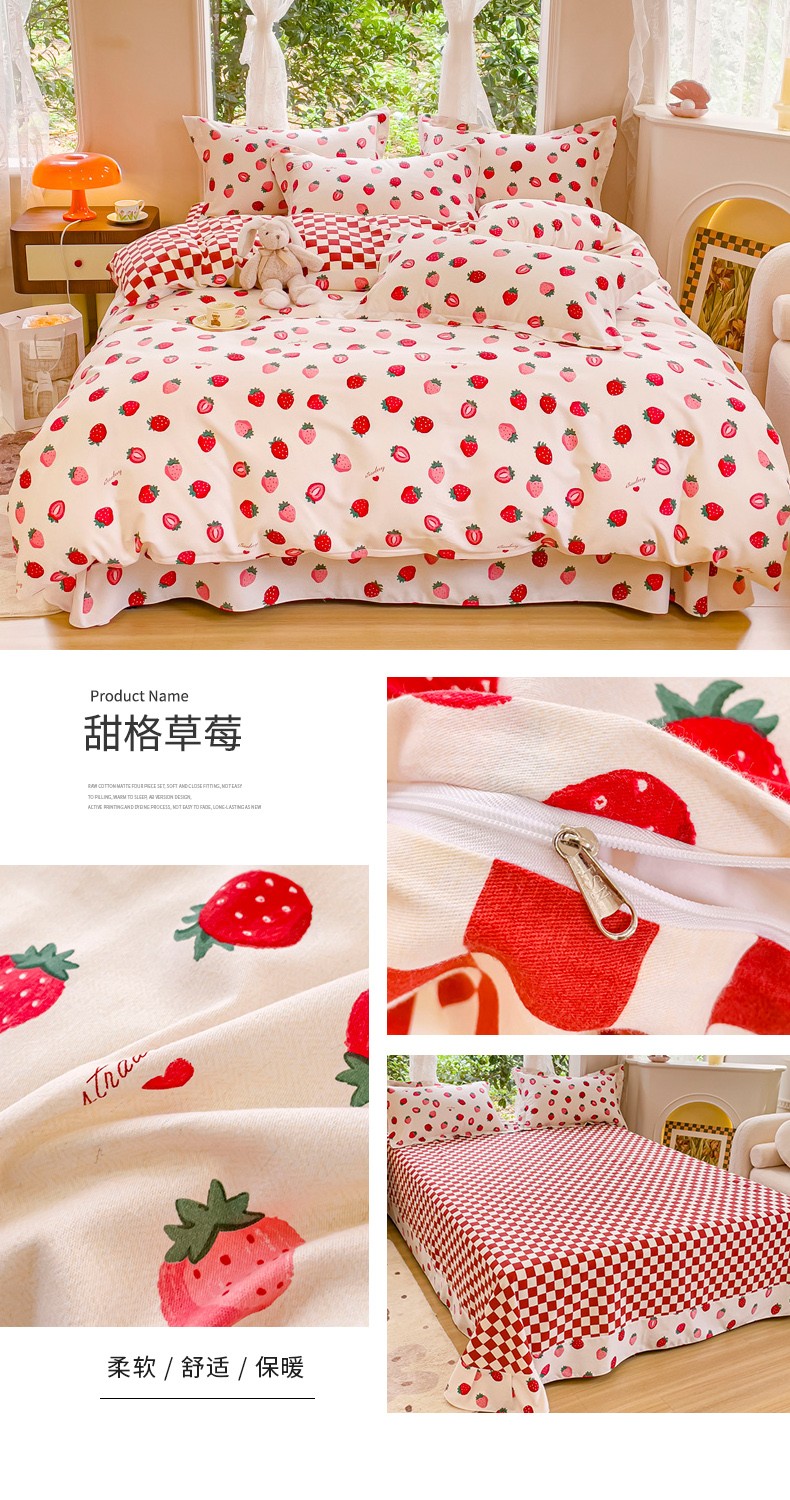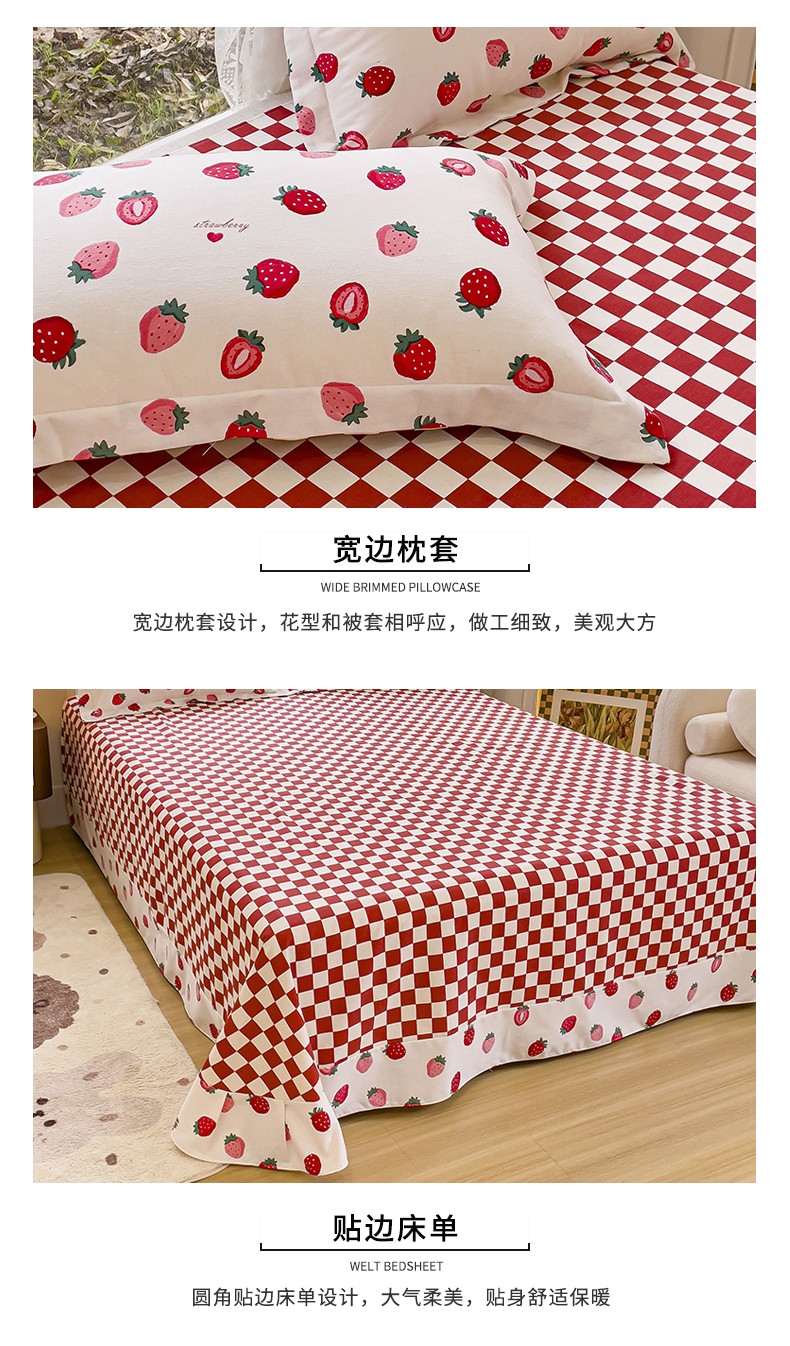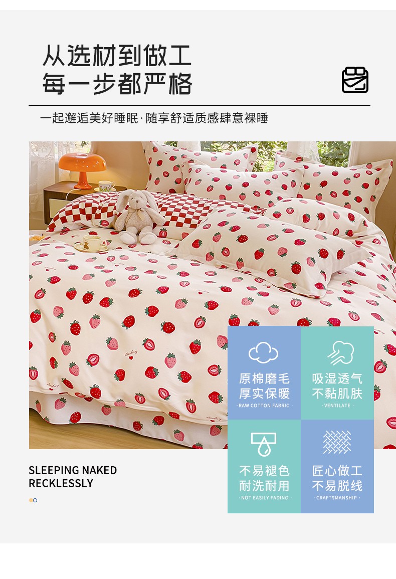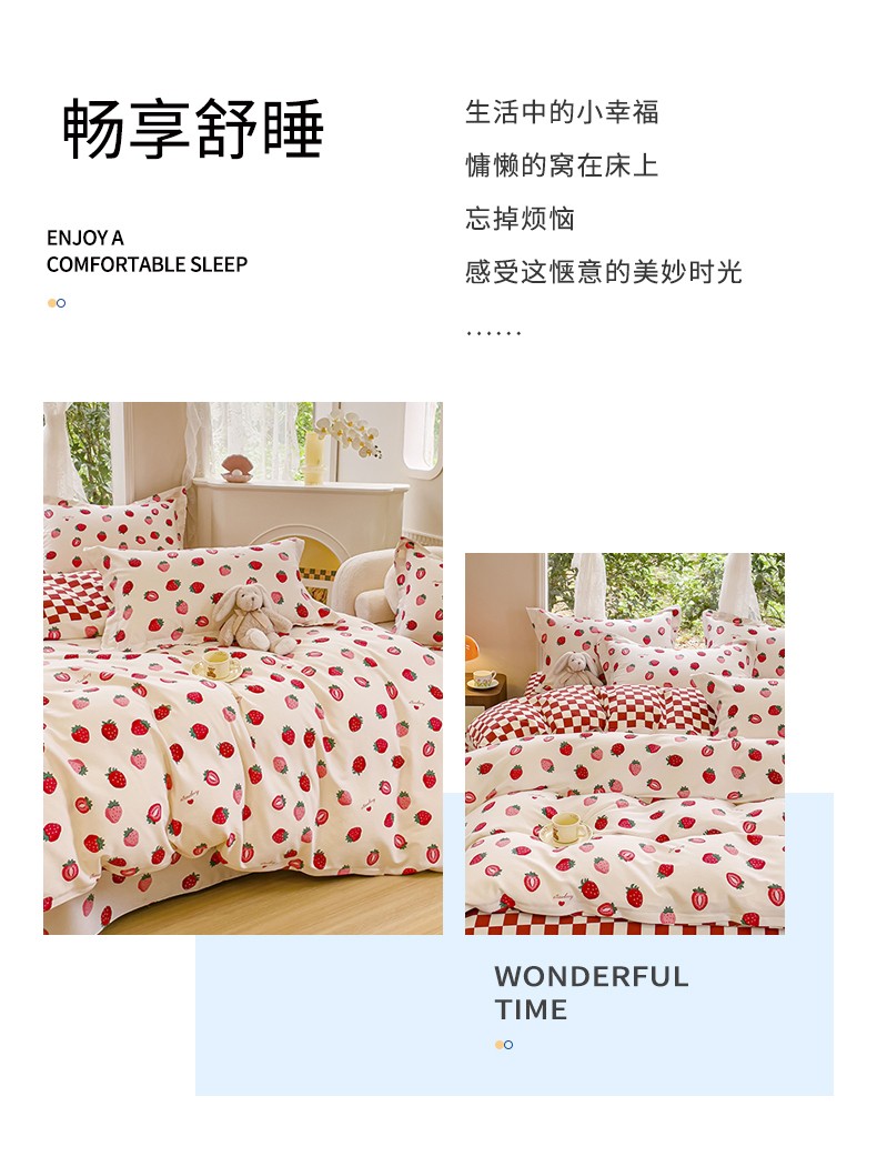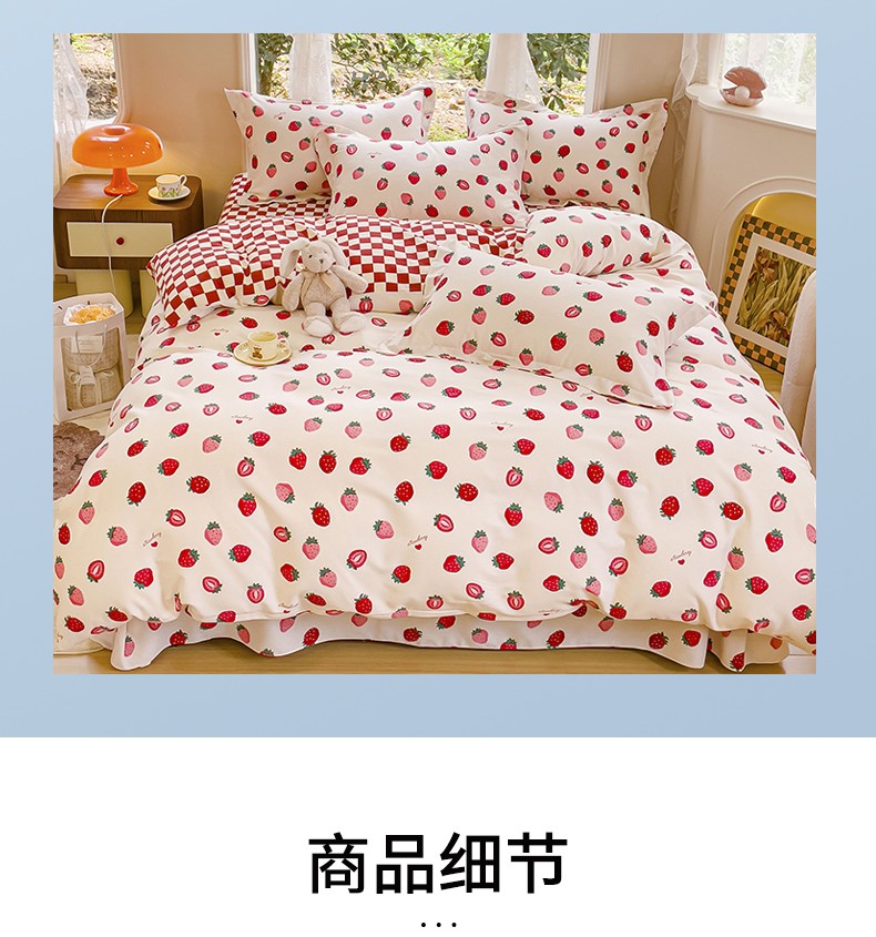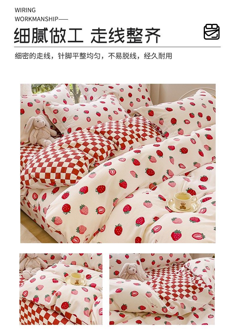 商品名称:金丝鸟 2023新款原棉磨毛四件套小清新系列 甜格草莓