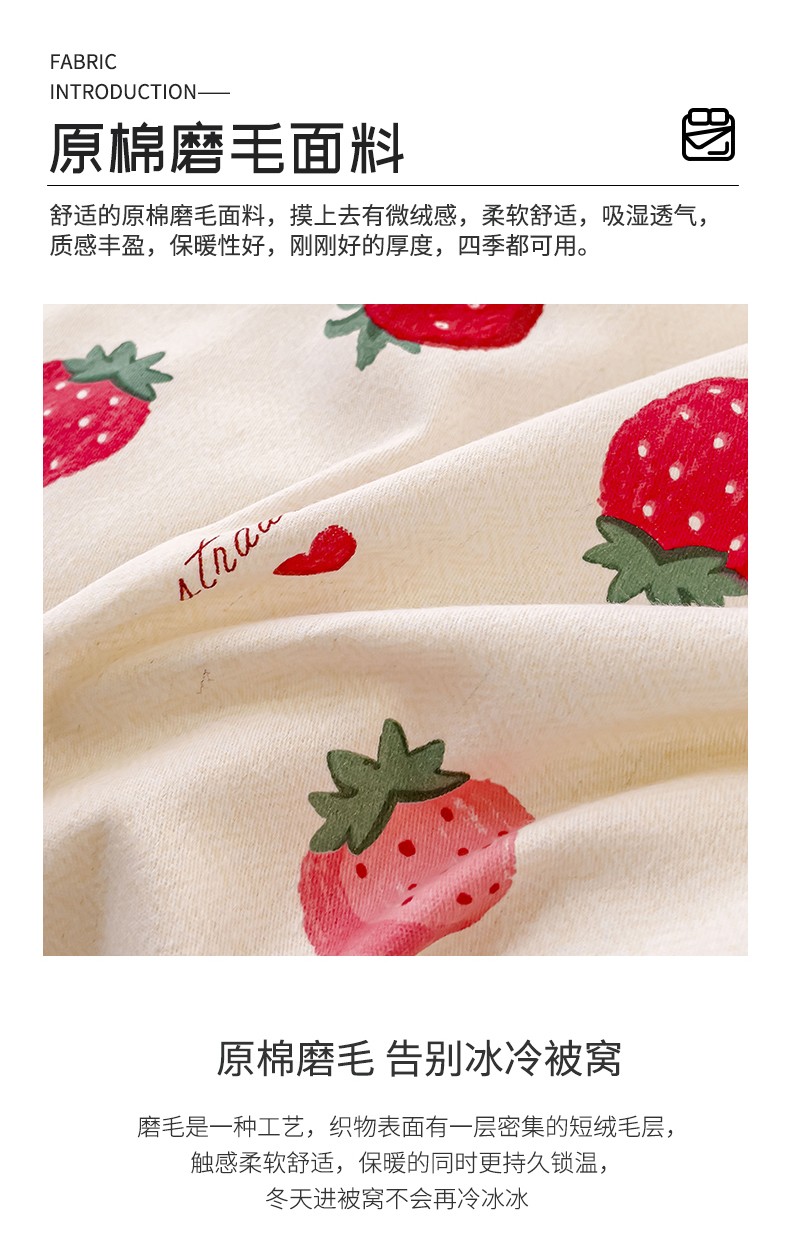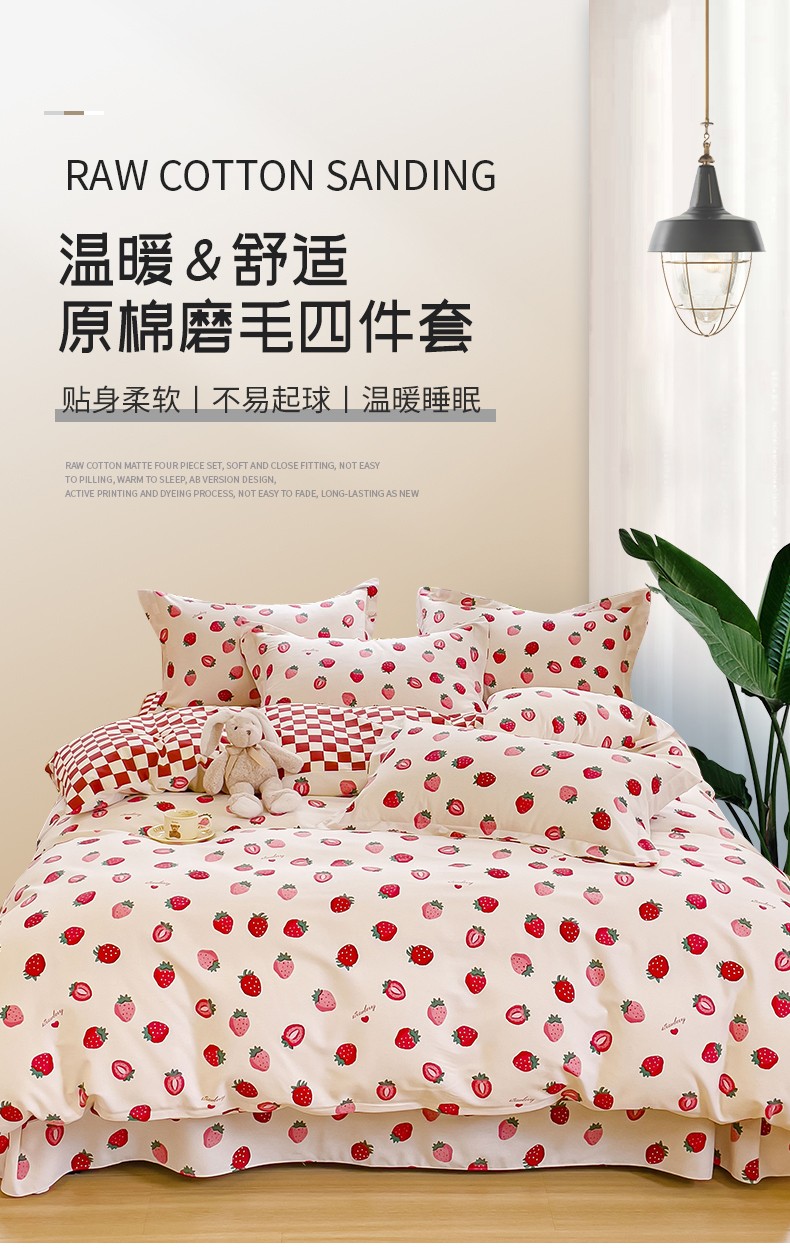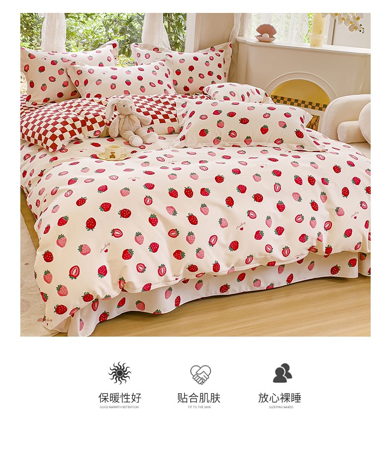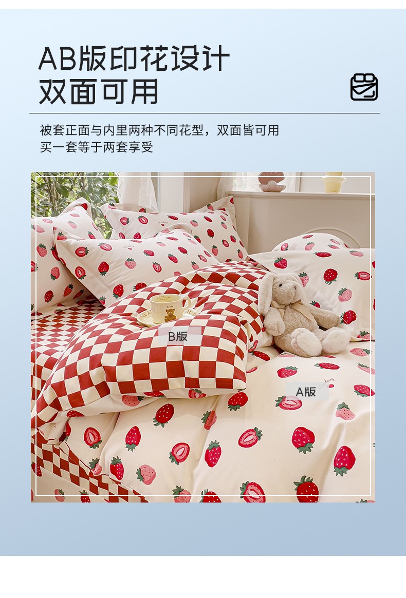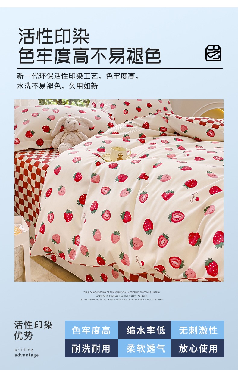 商品名称:金丝鸟 2023新款原棉磨毛四件套小清新系列 甜格草莓