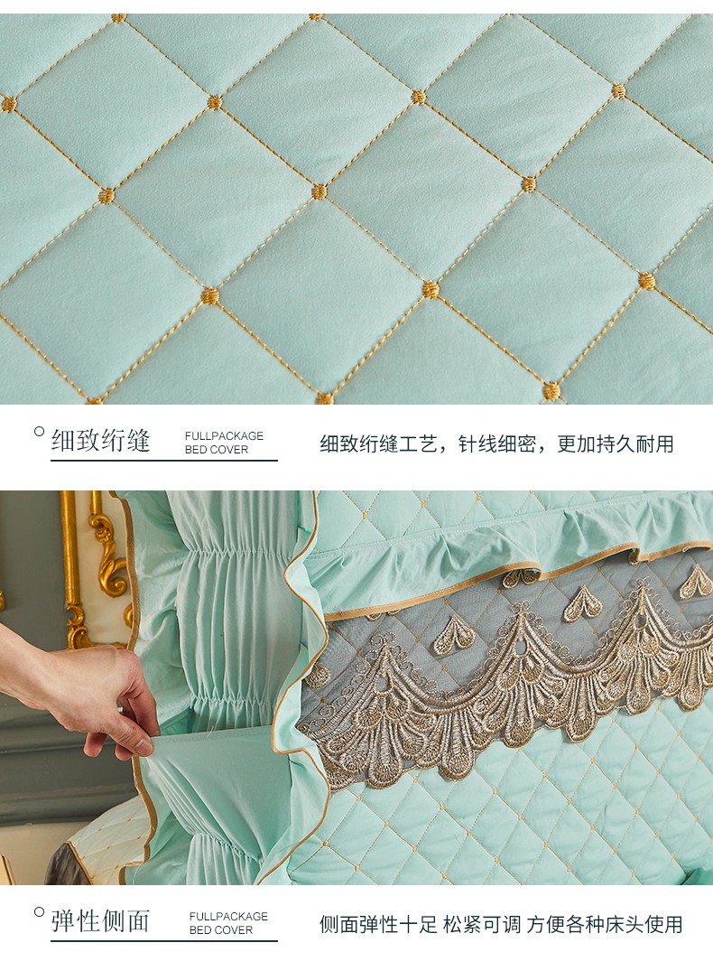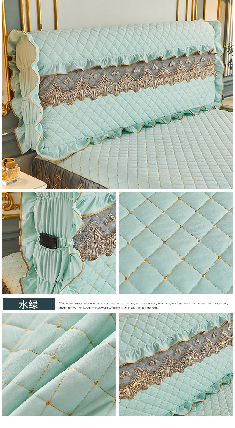 (总)屹成家纺2025新款水晶绒夹棉绗缝蕾丝床裙三件套(塞纳河畔)床裙单件起售价不低于105元,大红,豆沙,翡翠绿,粉玉,橄榄绿,蔚蓝,银灰