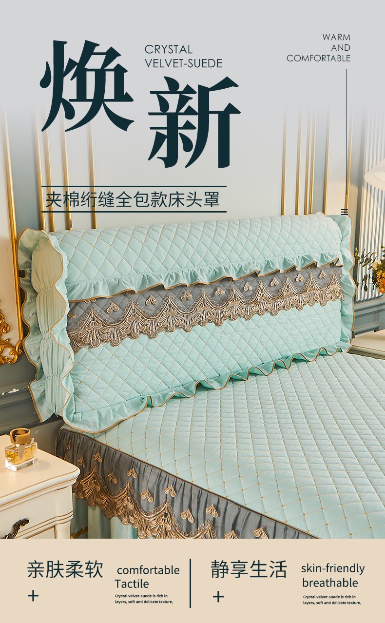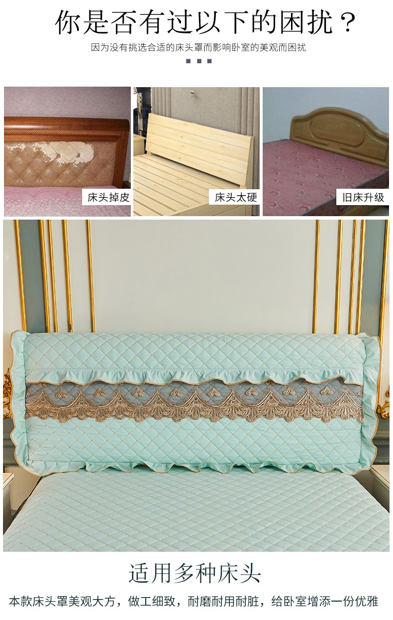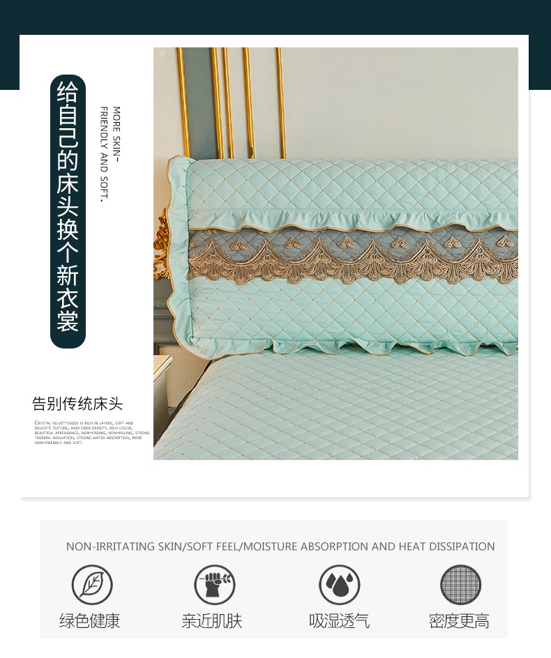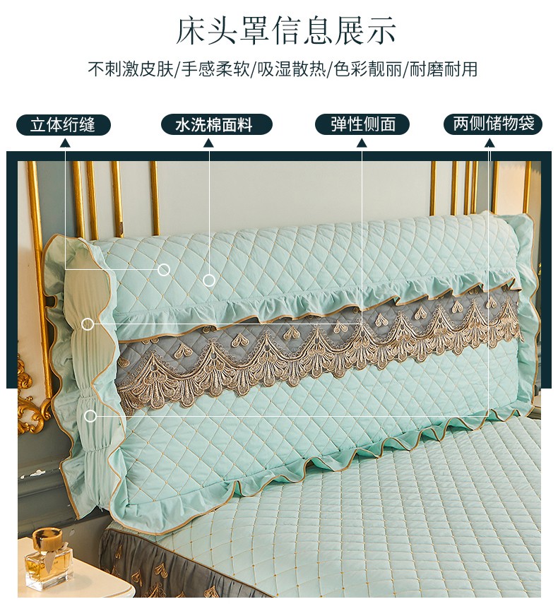 商品名称:屹成 2024新款水洗棉蕾丝四季款床笠床裙单品套件-床头罩 水绿