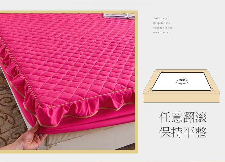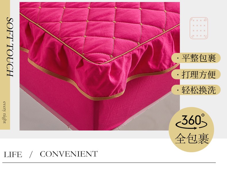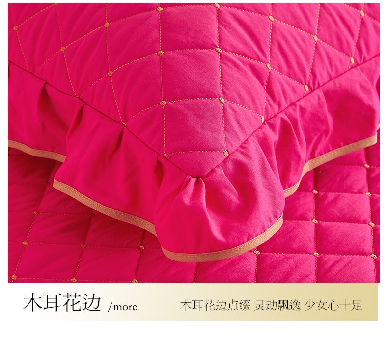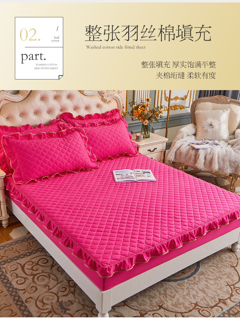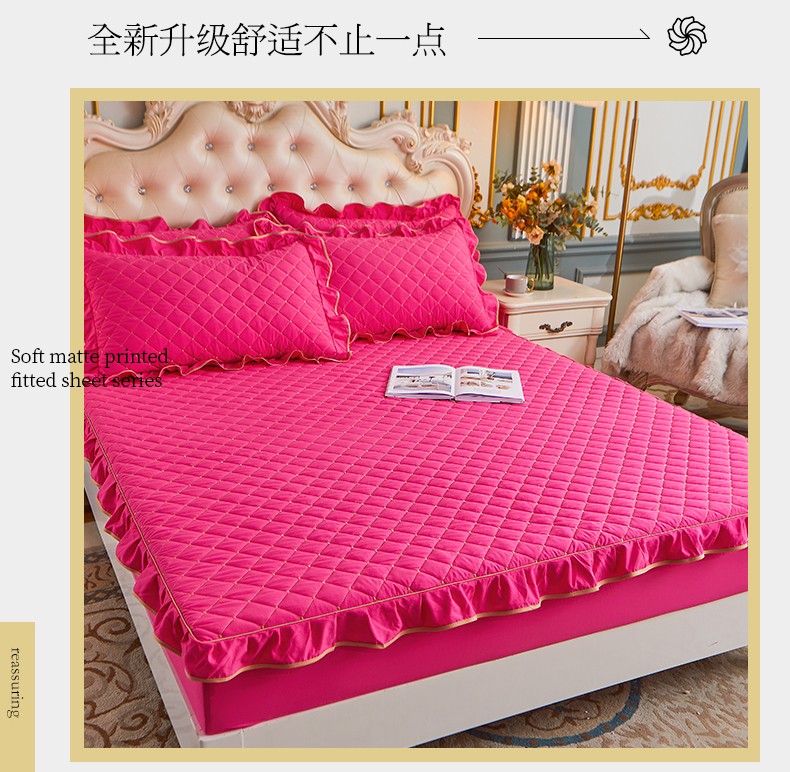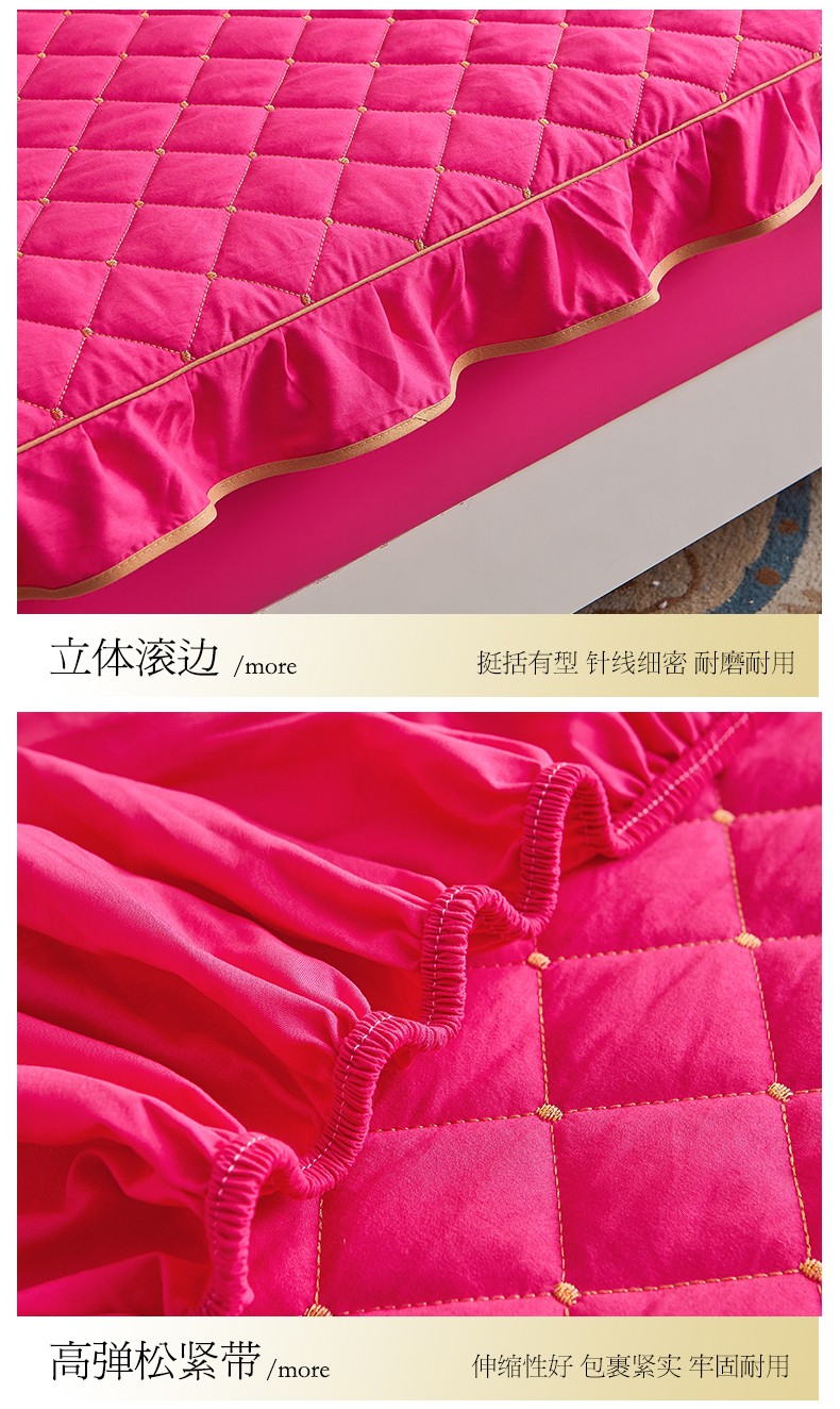 (总)屹成家纺2025新款水晶绒夹棉绗缝蕾丝床裙三件套(塞纳河畔)床裙单件起售价不低于105元,大红,豆沙,翡翠绿,粉玉,橄榄绿,蔚蓝,银灰