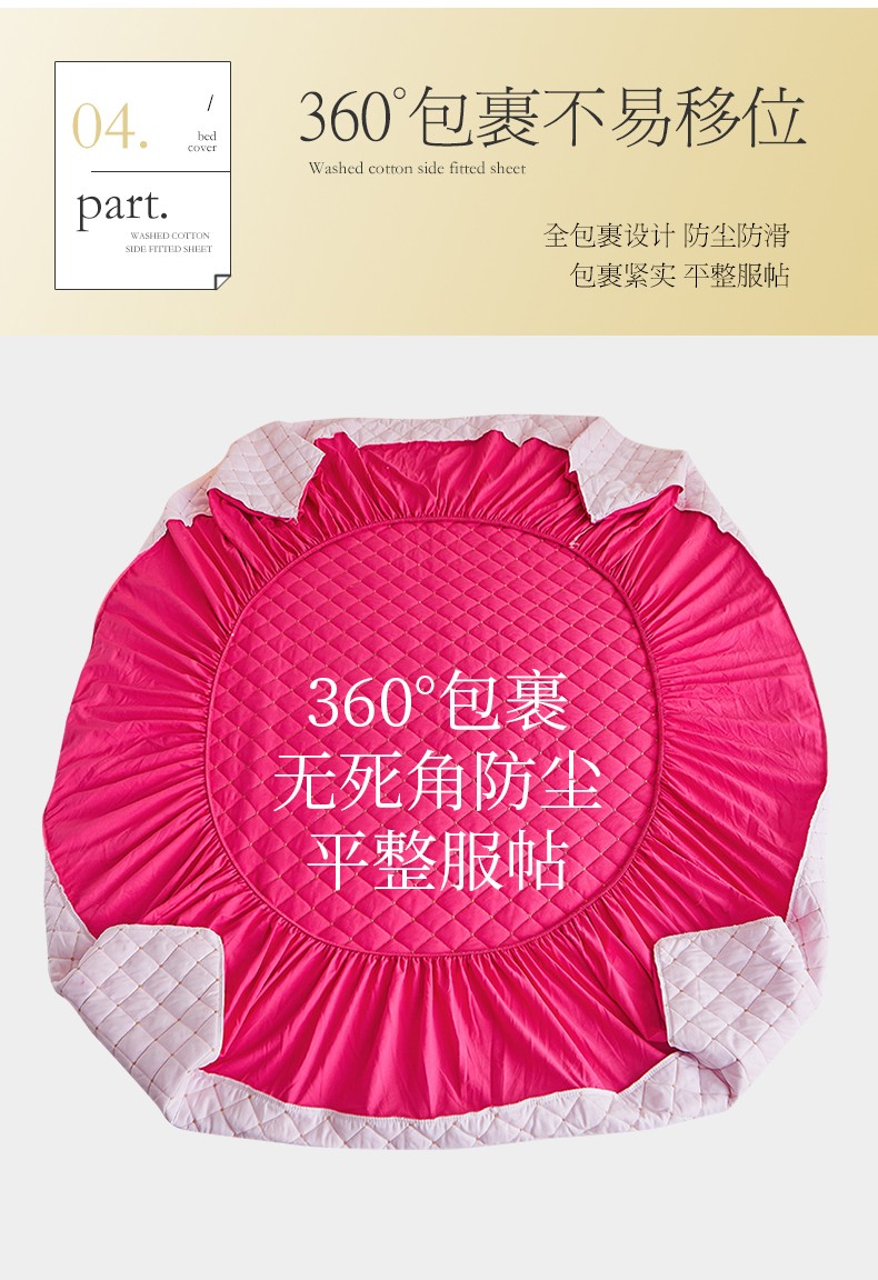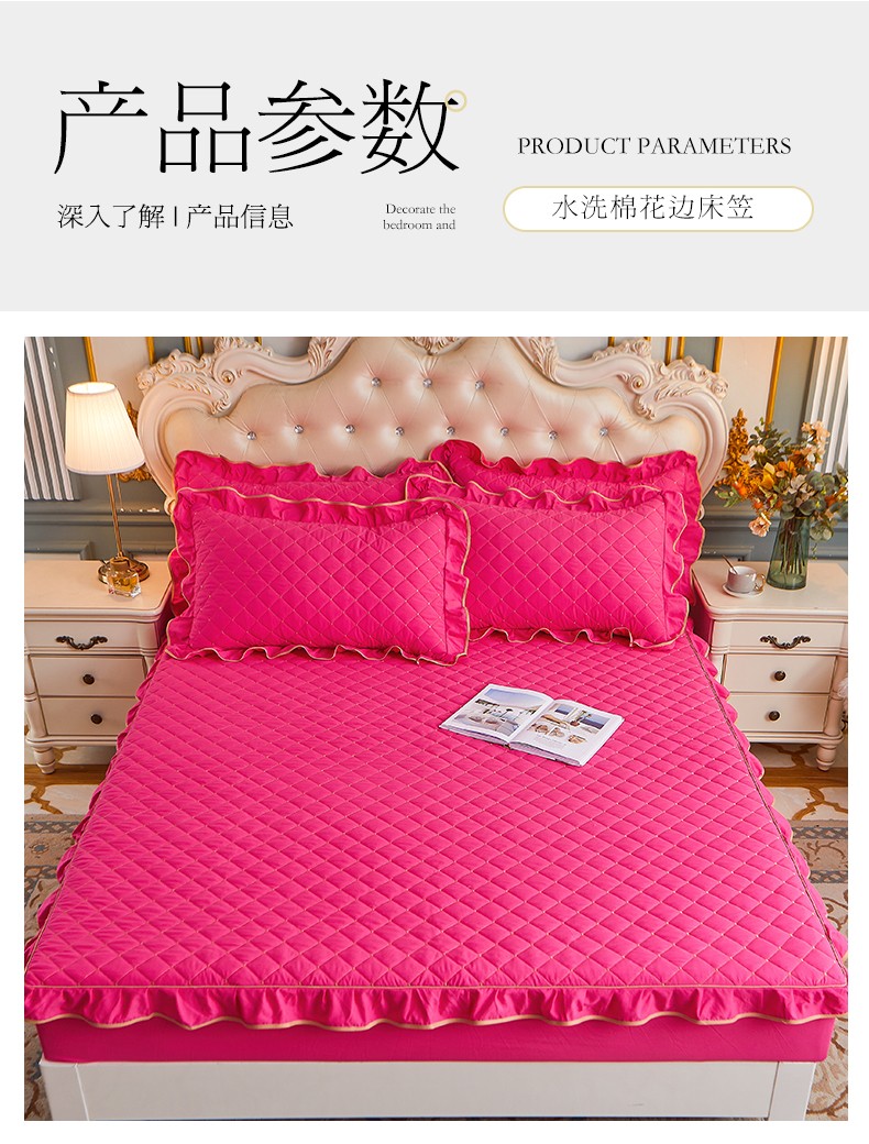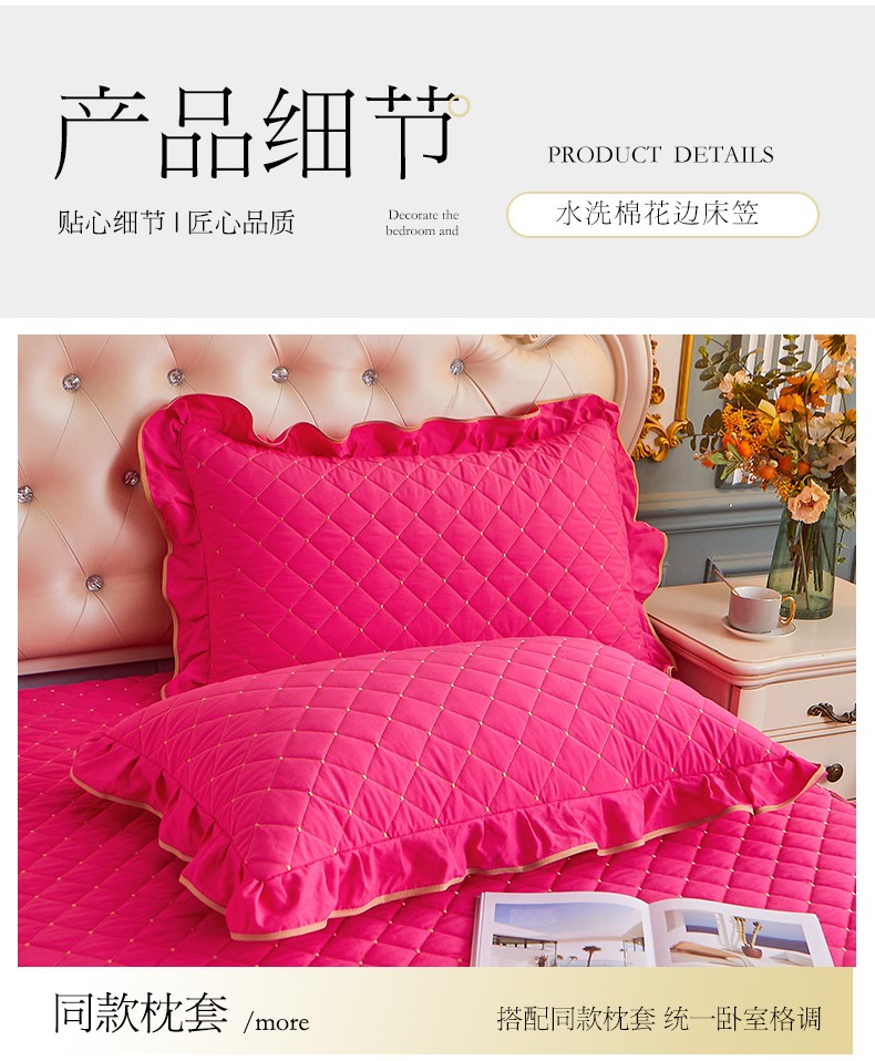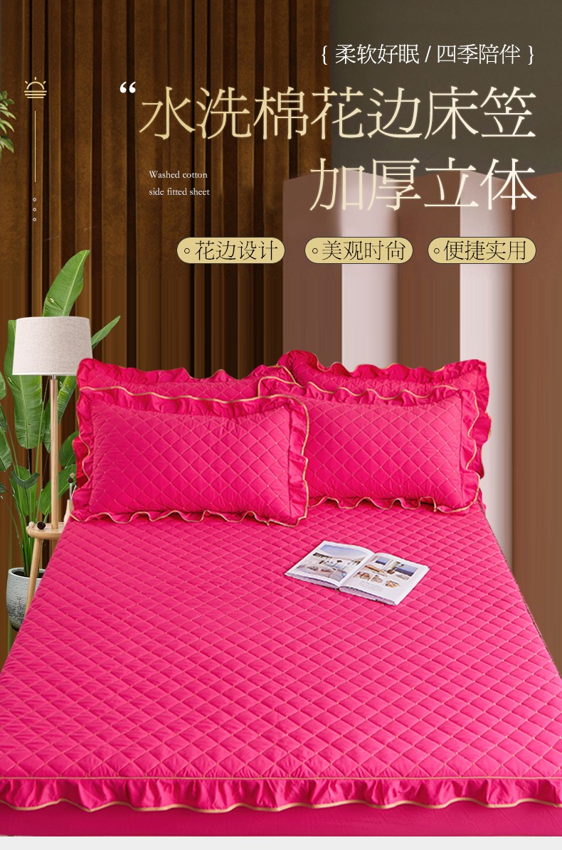 屹成 2024新款水洗棉蕾丝四季款床笠床裙单品套件-床笠三件套 玫红