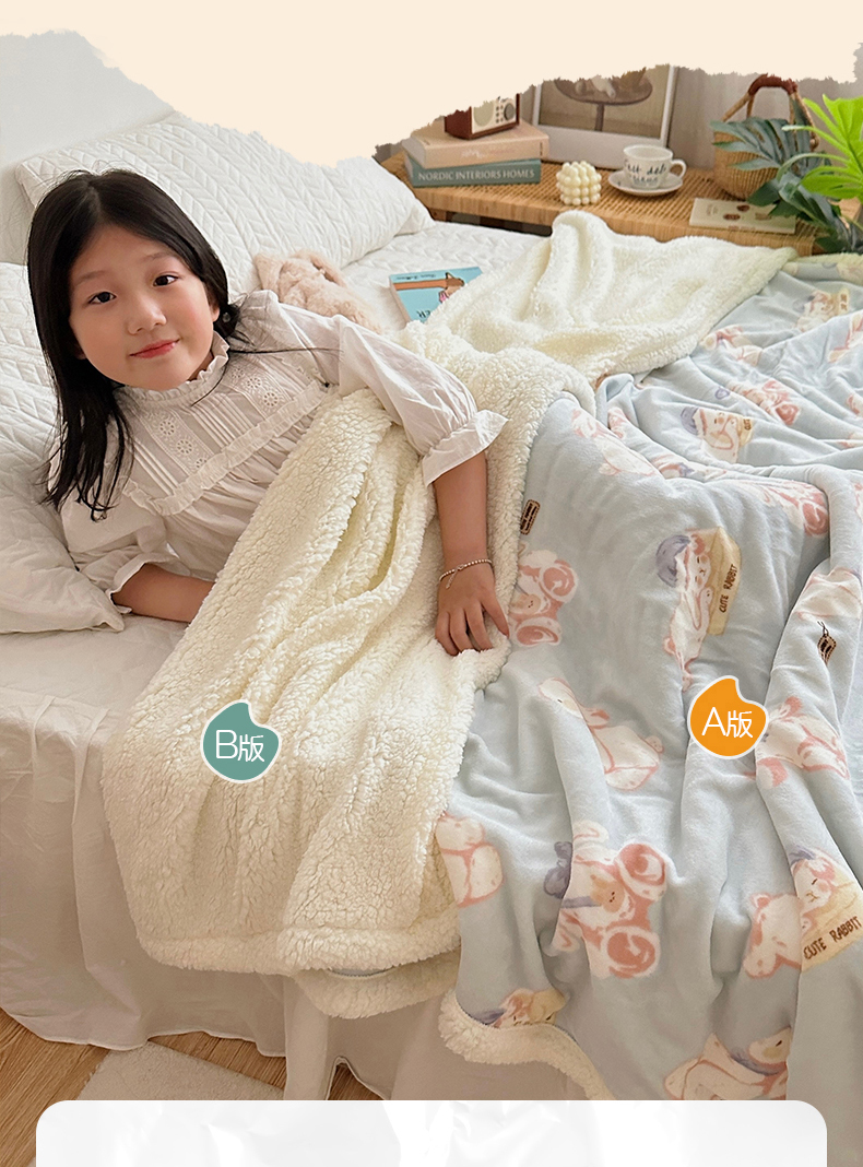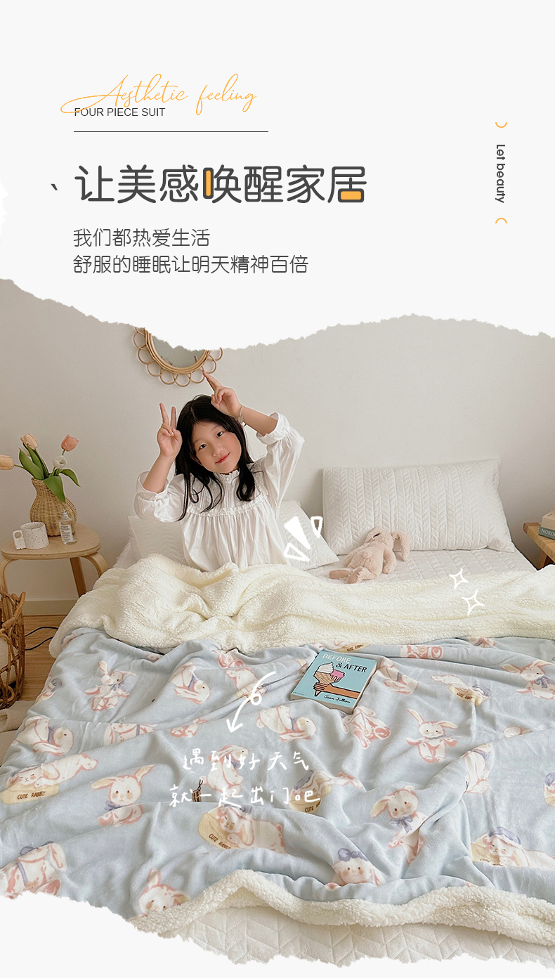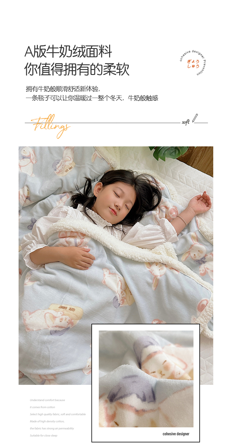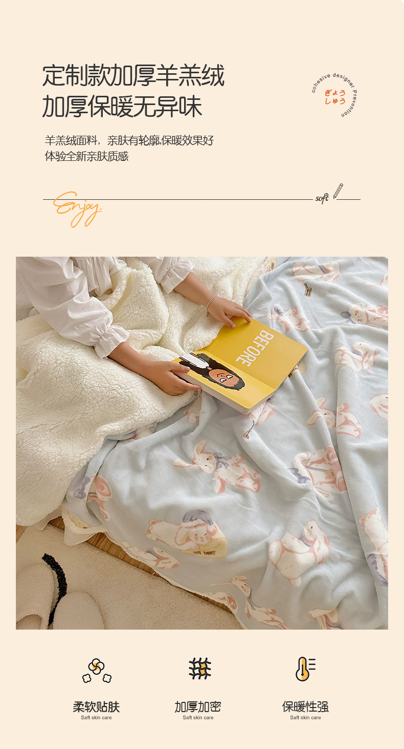 萝莉家纺 2023新款ins加厚牛奶绒羊羔绒毯午睡毯沙发盖毯 菲比兔