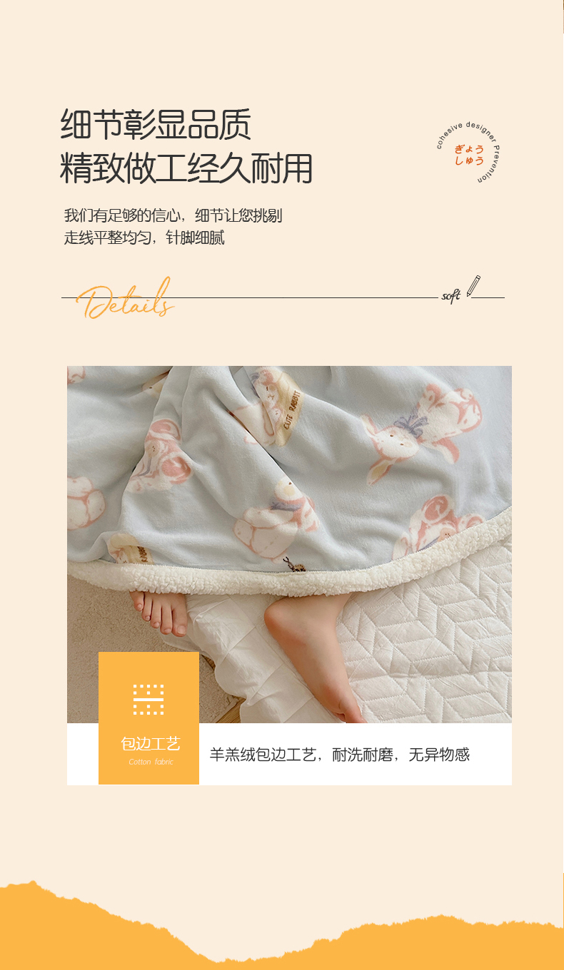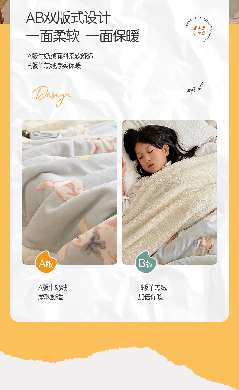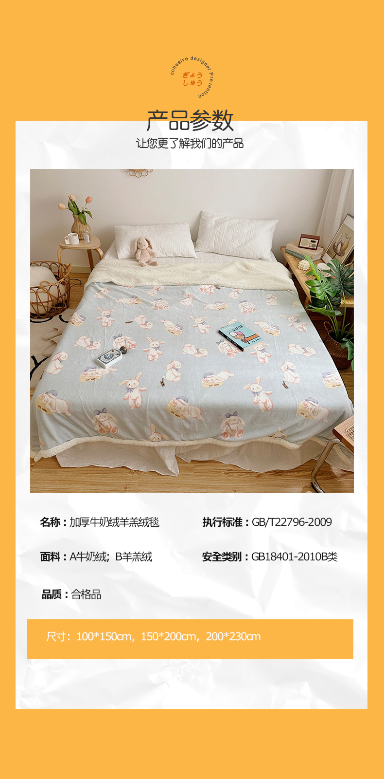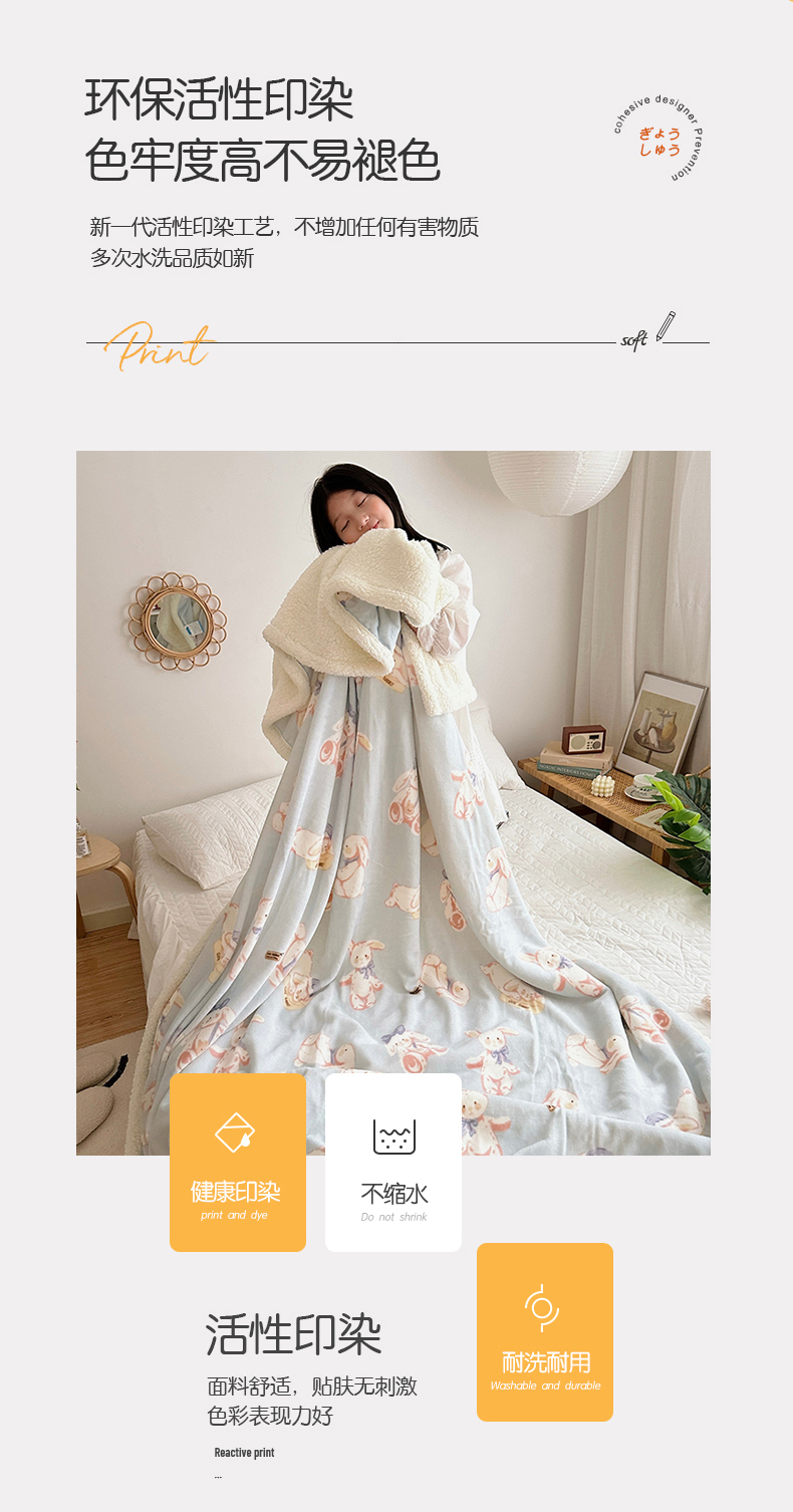 萝莉家纺 2023新款ins加厚牛奶绒羊羔绒毯午睡毯沙发盖毯 菲比兔