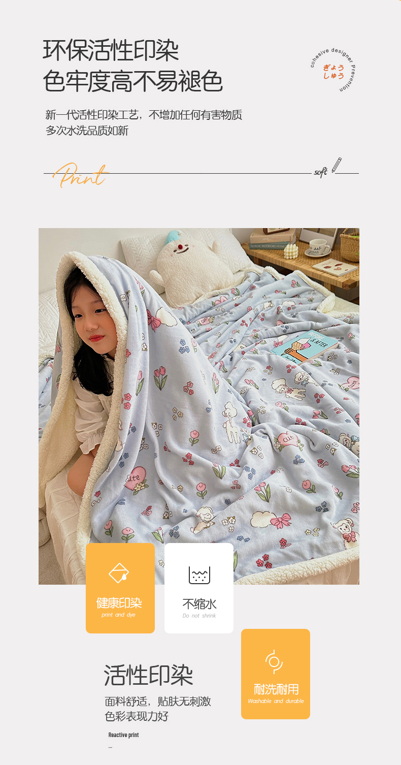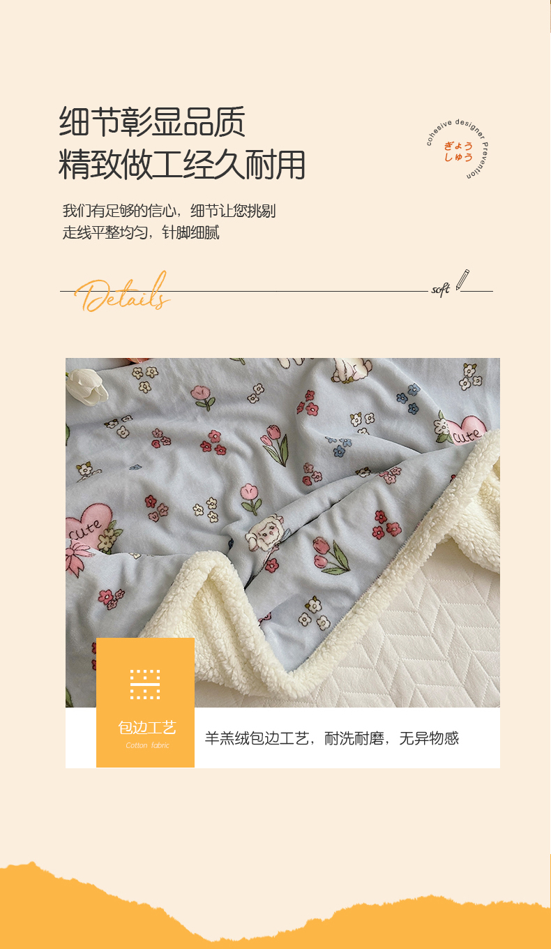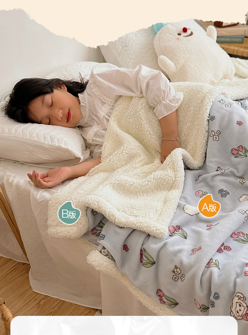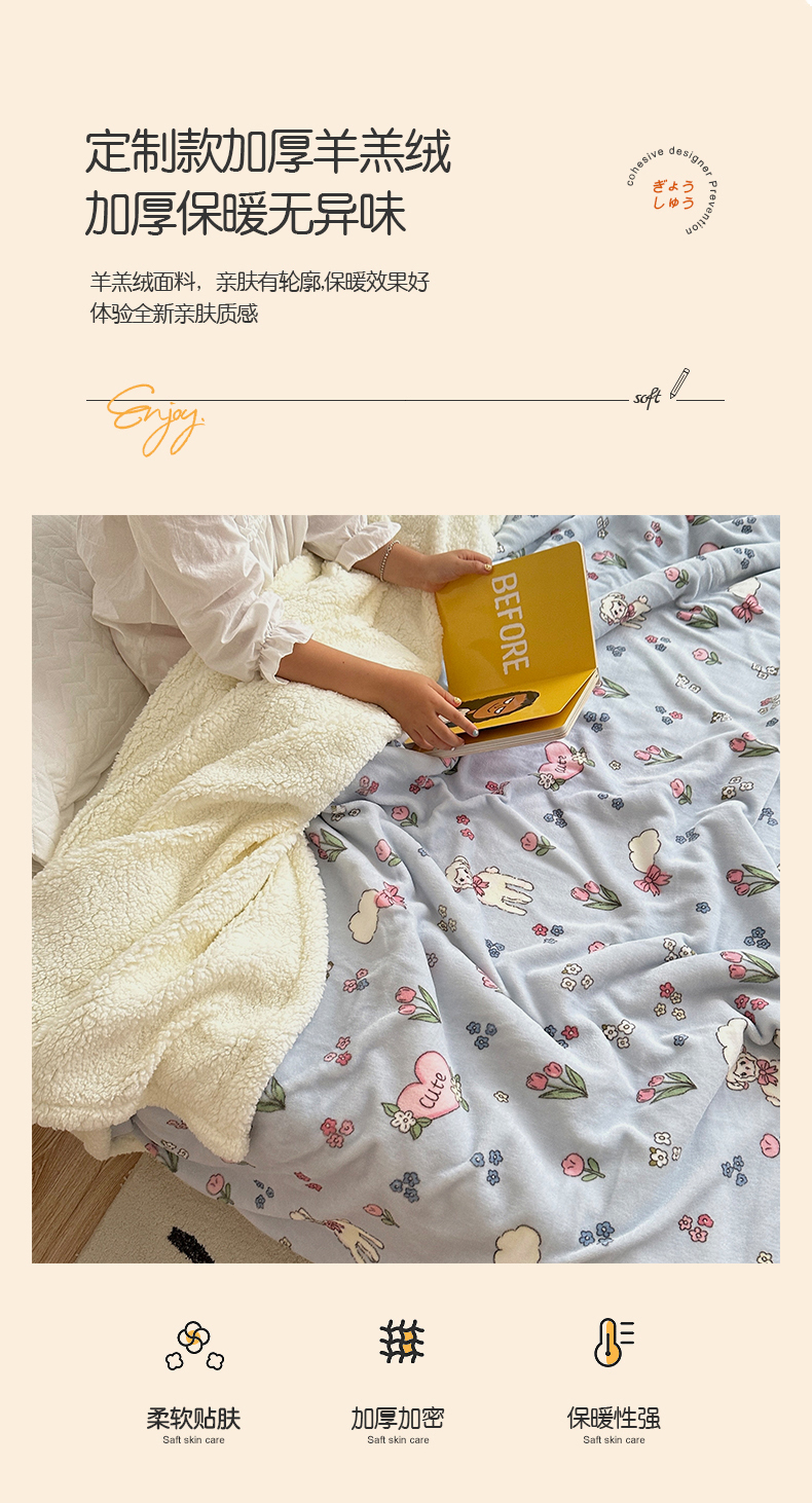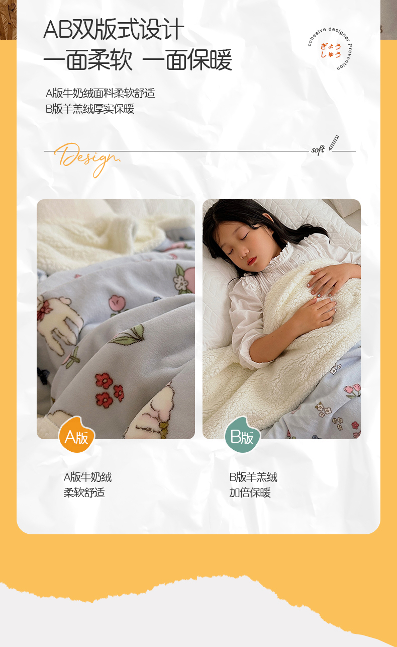 萝莉家纺 2023新款ins加厚牛奶绒羊羔绒毯午睡毯沙发盖毯 小可爱