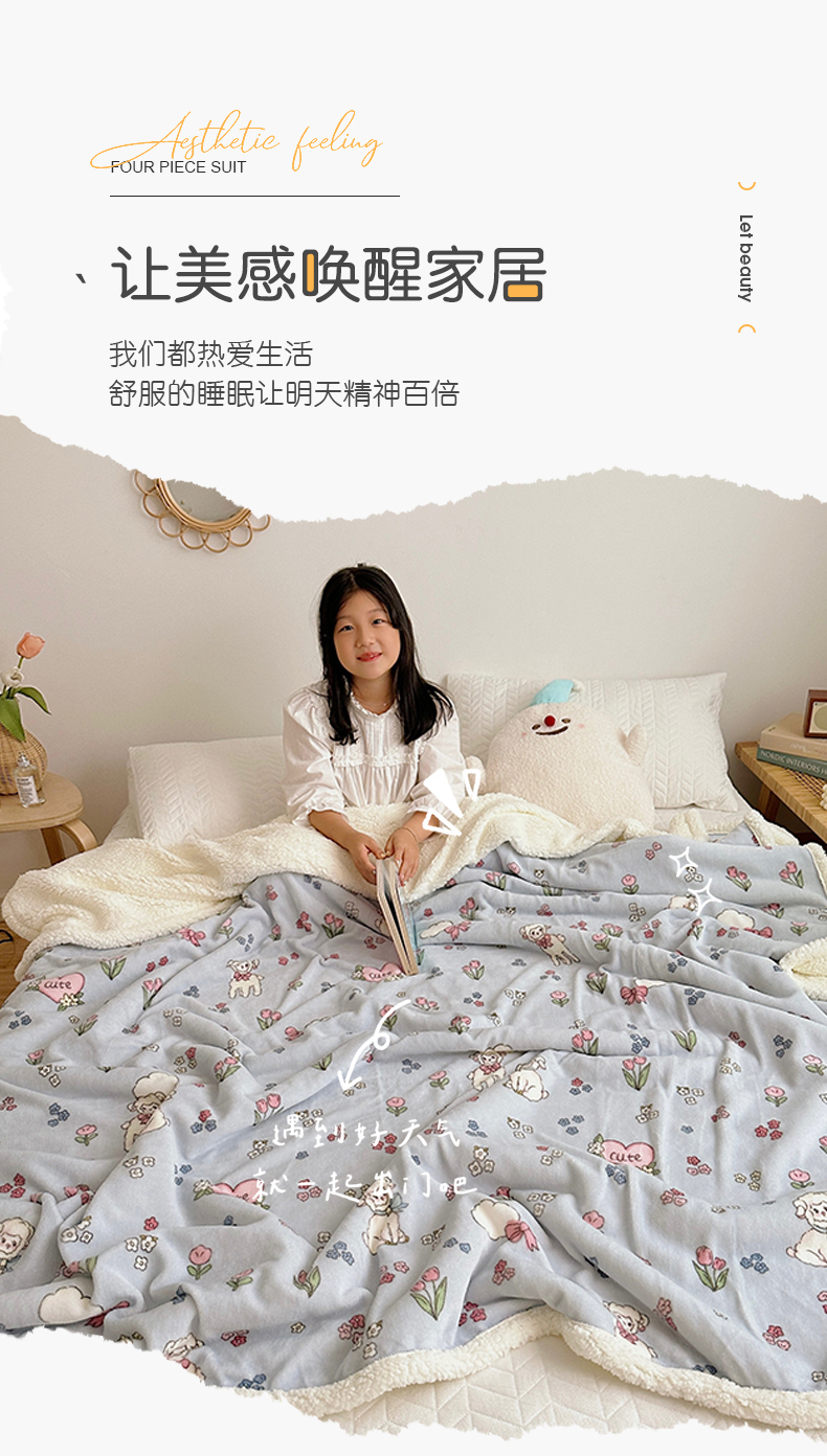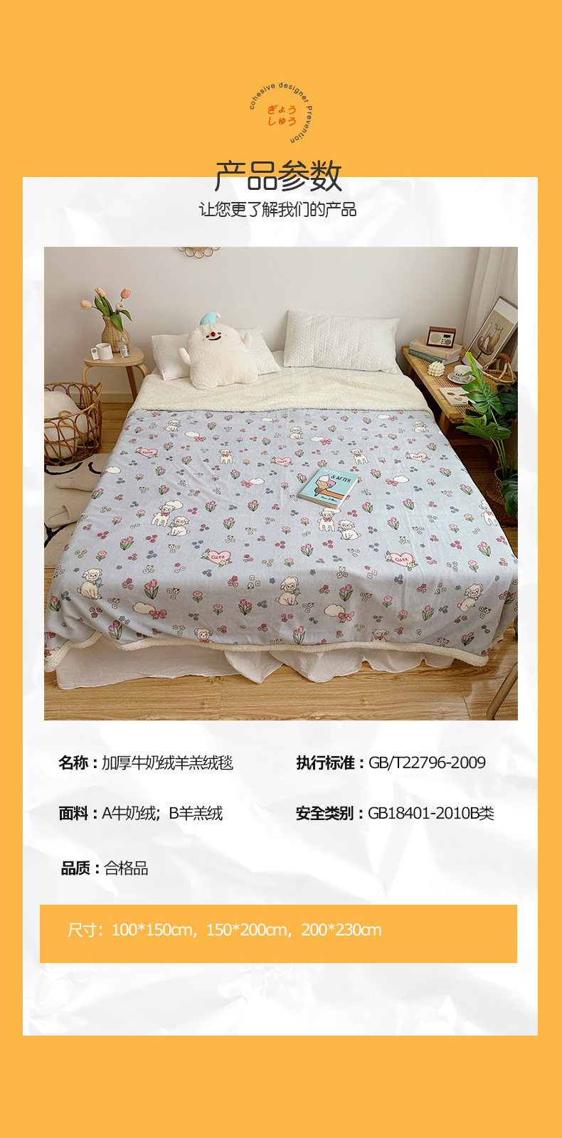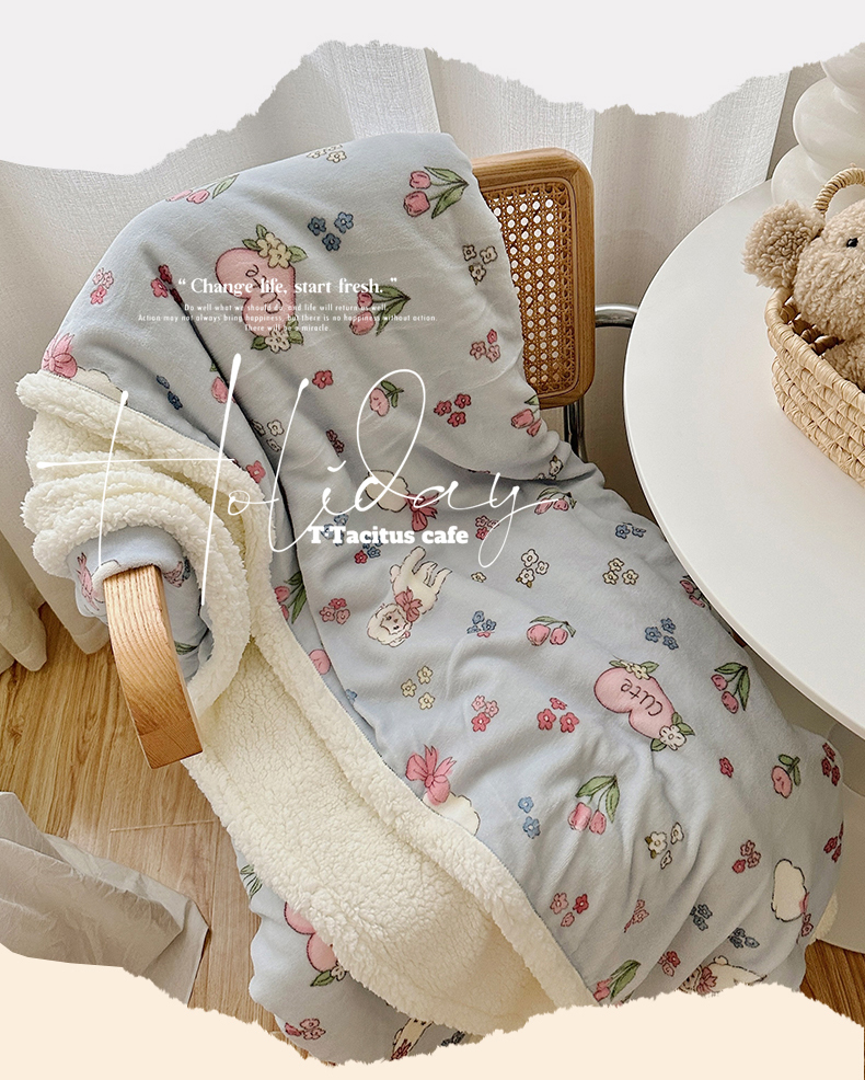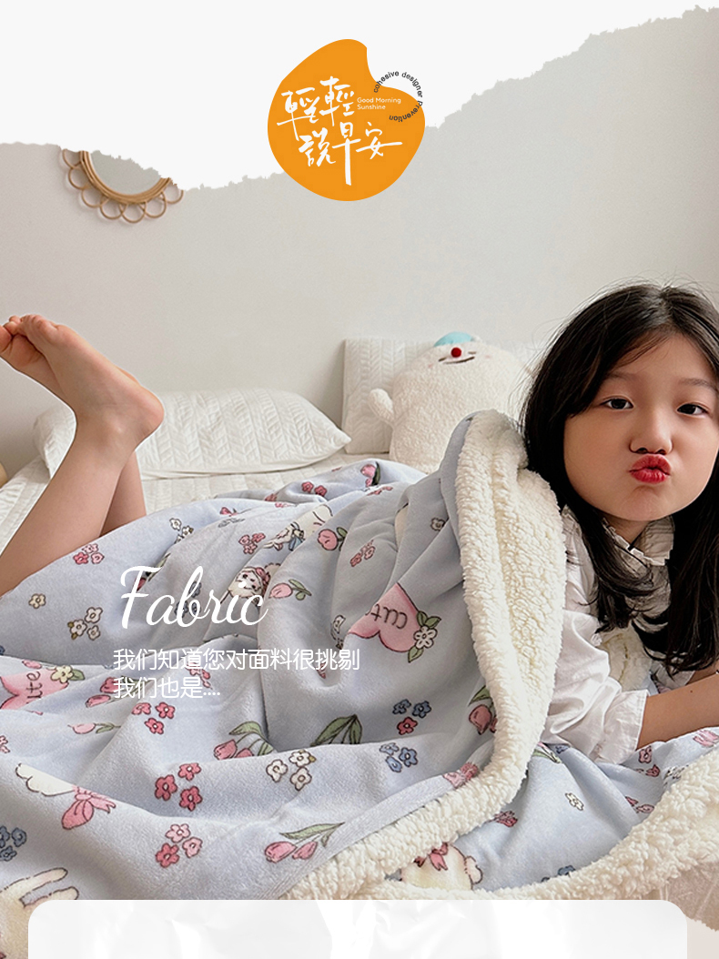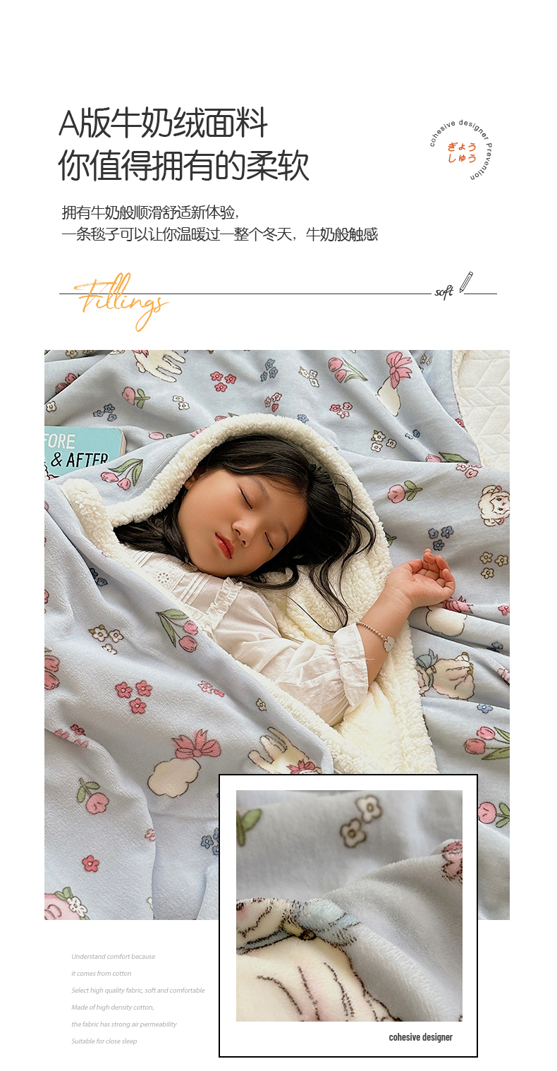 萝莉家纺 2023新款ins加厚牛奶绒羊羔绒毯午睡毯沙发盖毯 小可爱