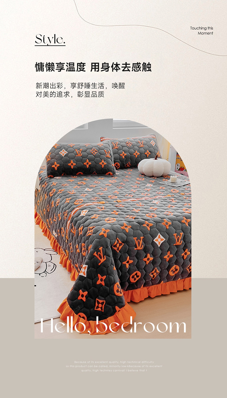 商品名称:情煊 2023新款牛奶绒印花床盖 大牌风范