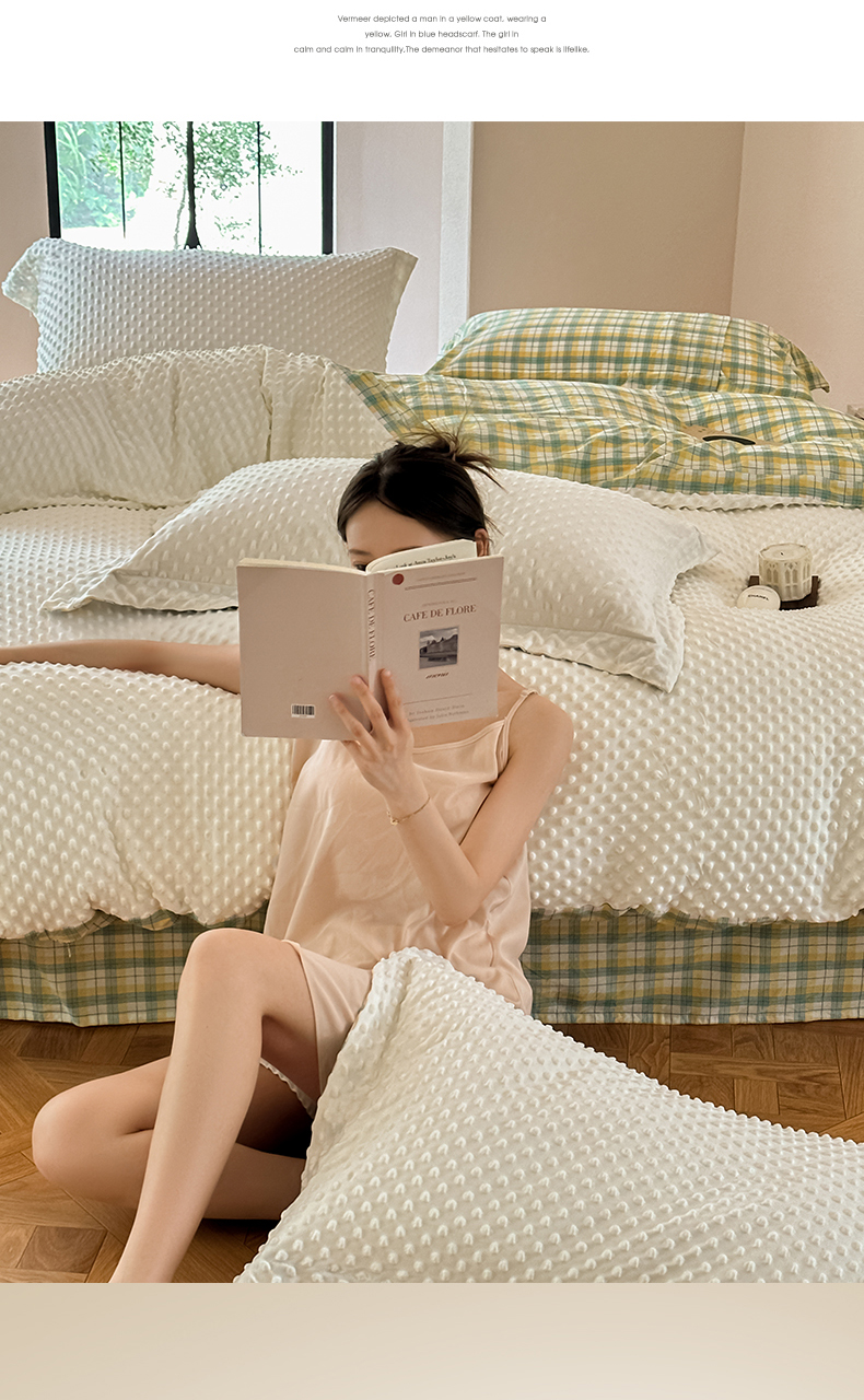 (总)换种生活 2024新款法式小清新全棉夏被四件套,冰玫粉,海之兰,奶昔白,青稞绿,生椰拿铁,松露黑