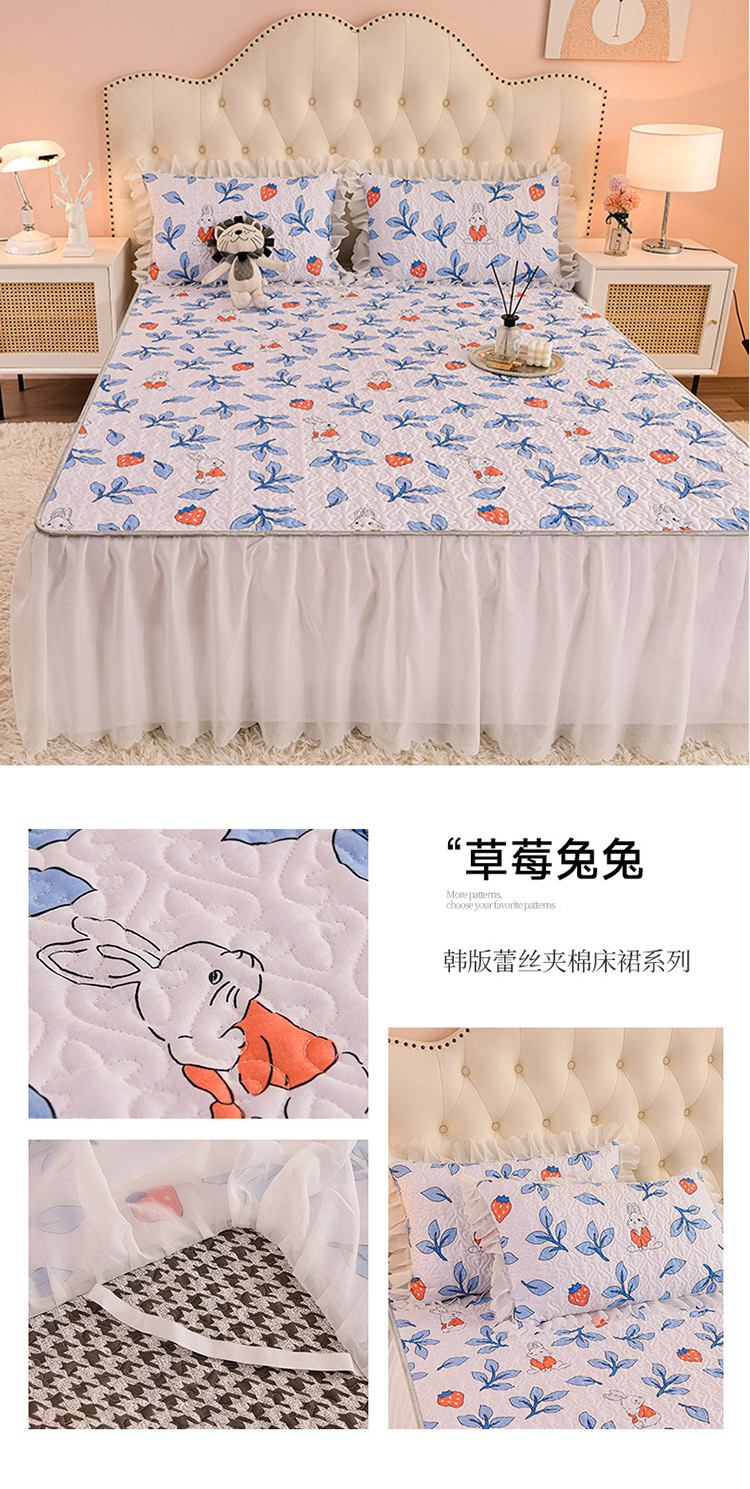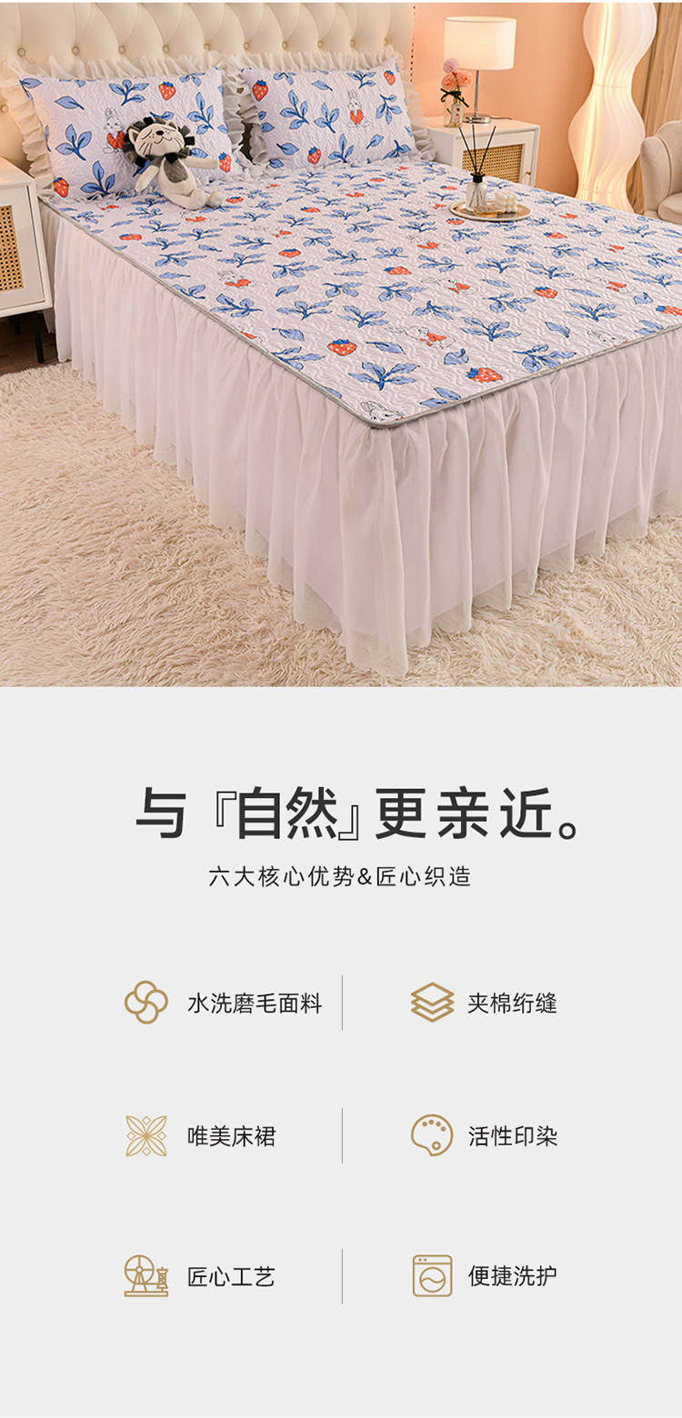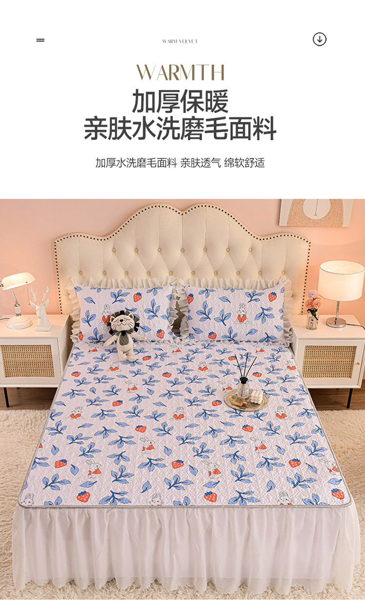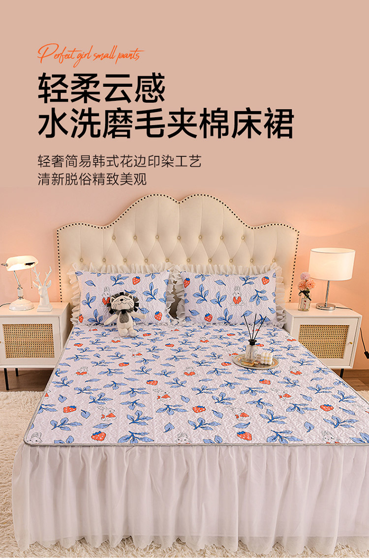 商品名称:艾兜坊 2023新款轻柔云感水洗磨毛夹棉床裙草莓兔兔