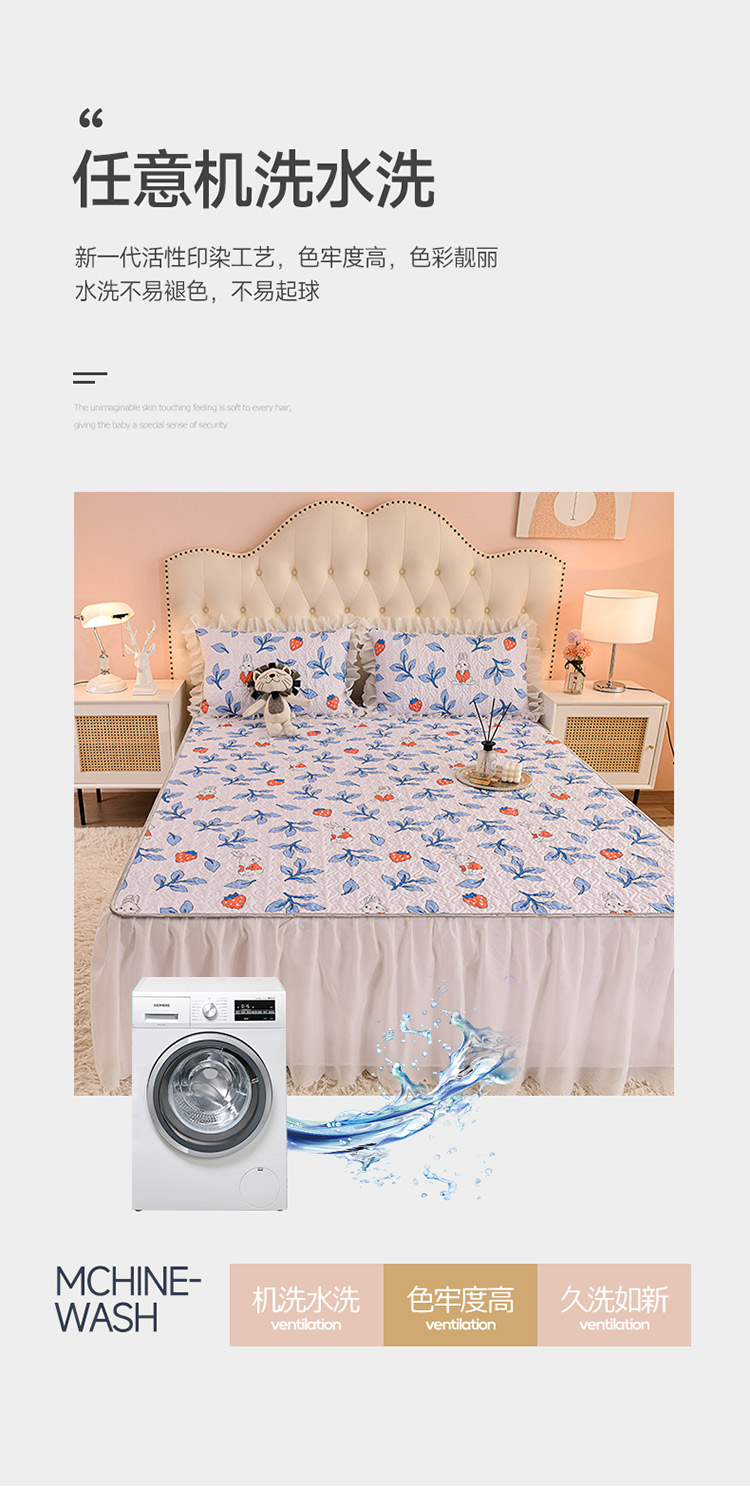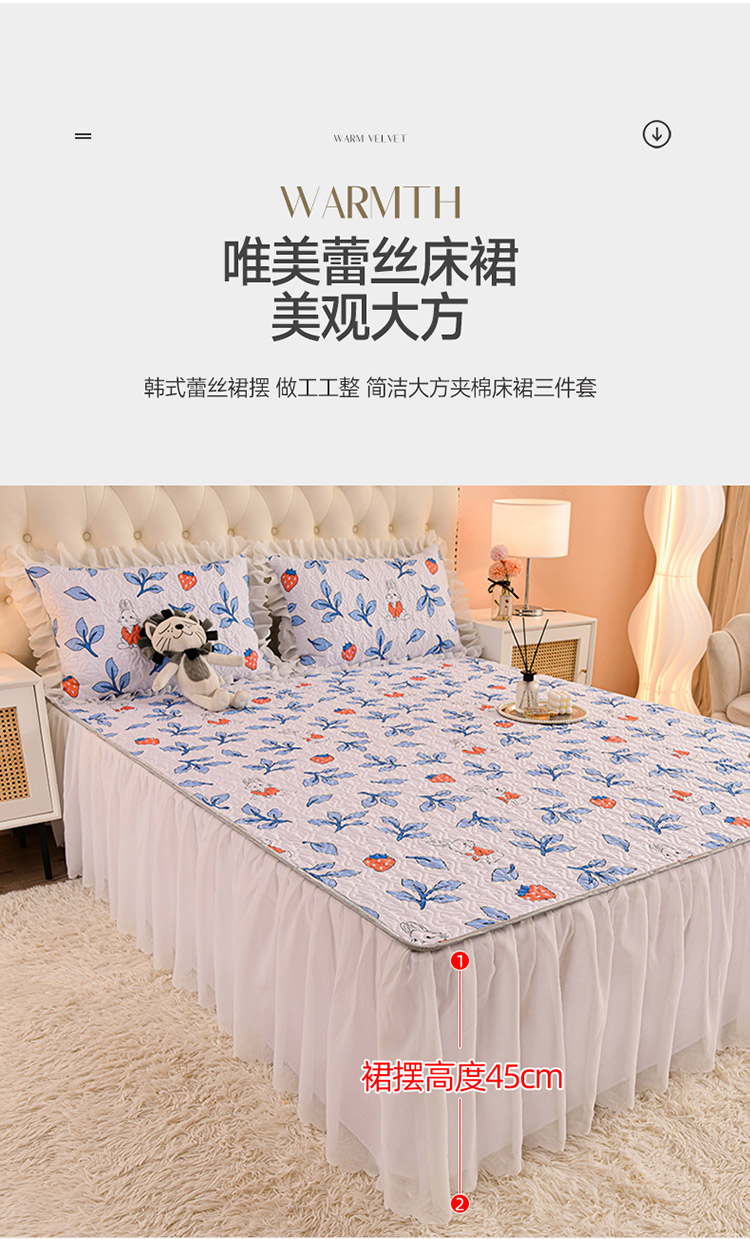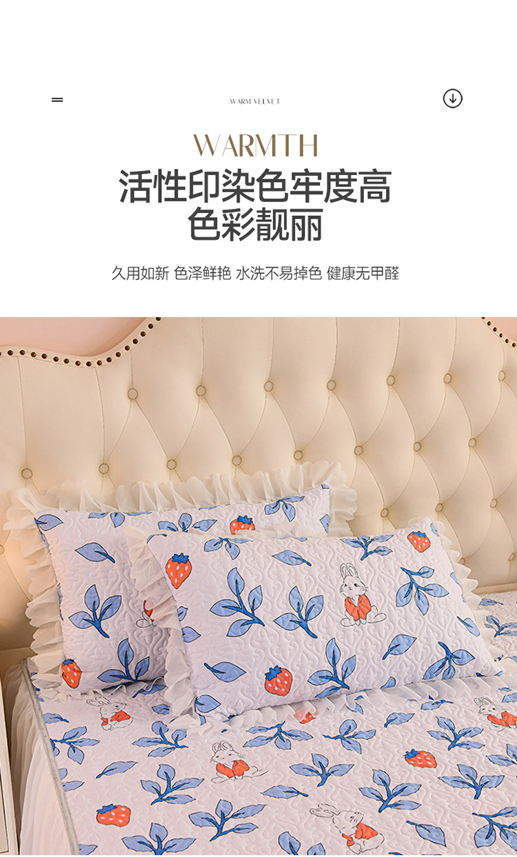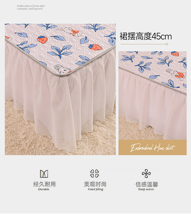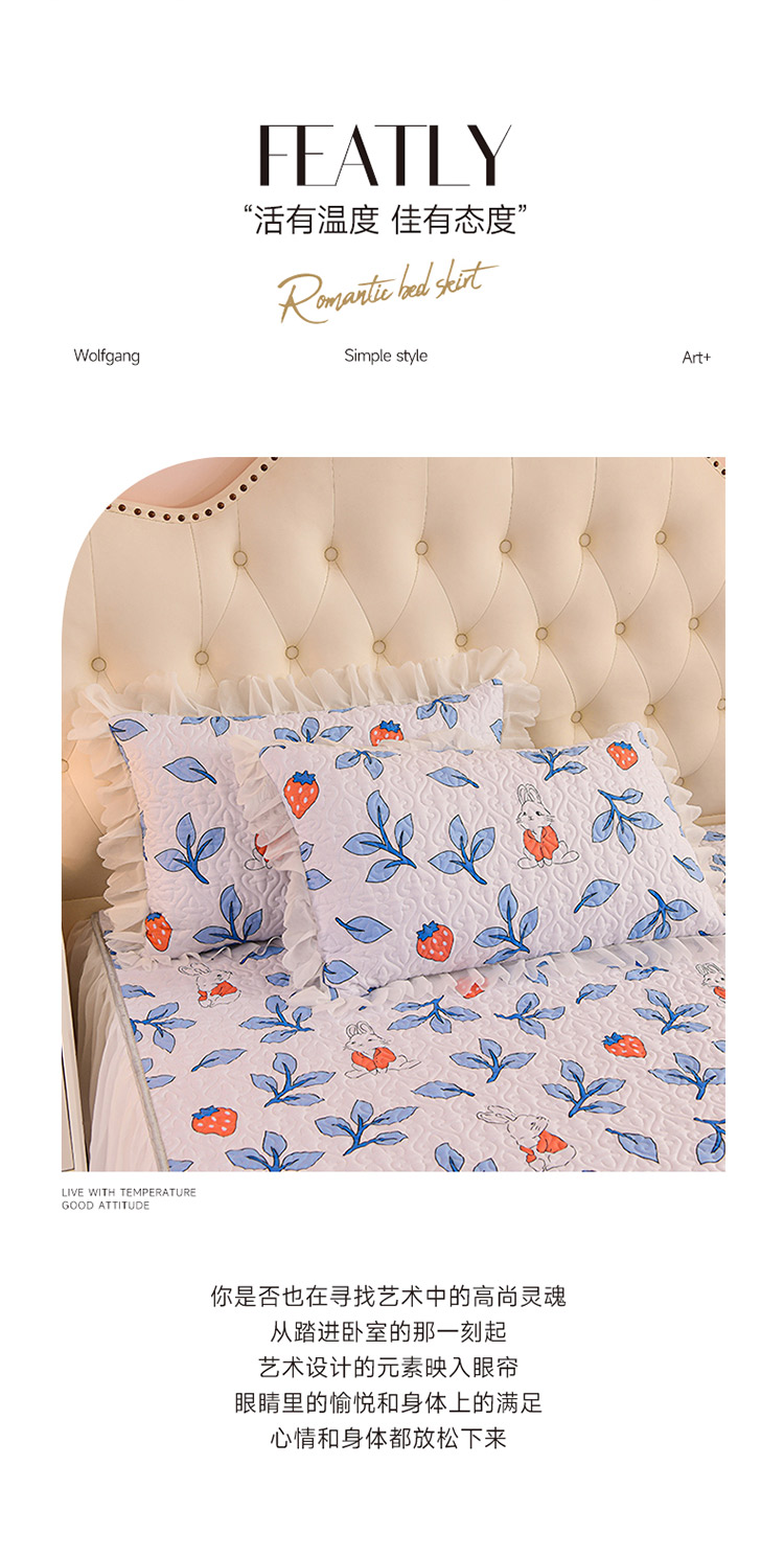 商品名称:艾兜坊 2023新款轻柔云感水洗磨毛夹棉床裙草莓兔兔