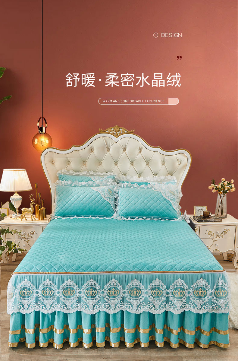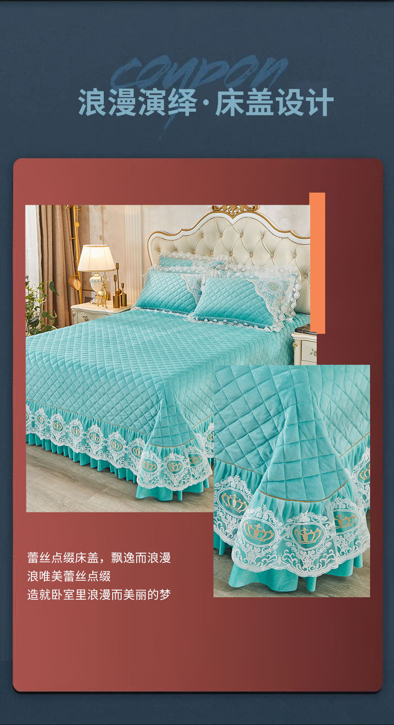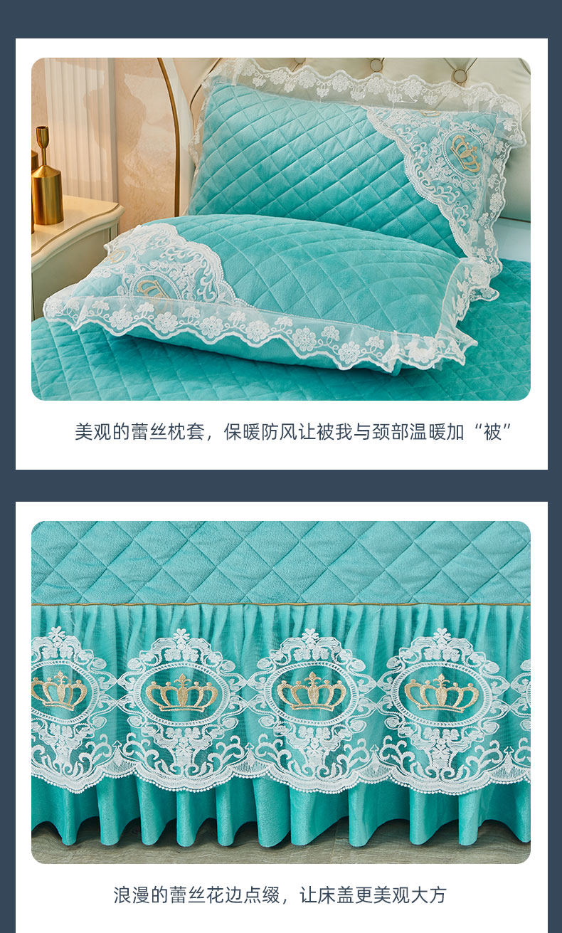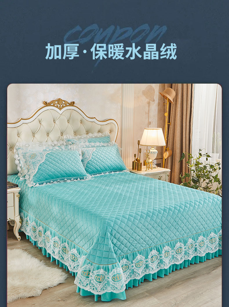商品名称:恋尚 2023新款可脱卸水晶绒夹棉床盖卡雯系列 水兰
