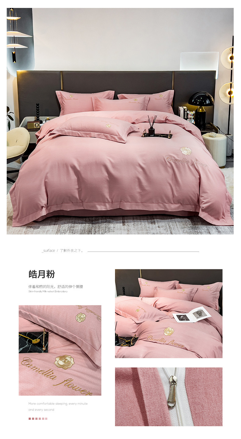 商品名称:N先生 2023新款加厚全棉磨毛四件套-米兰系列 皓月粉