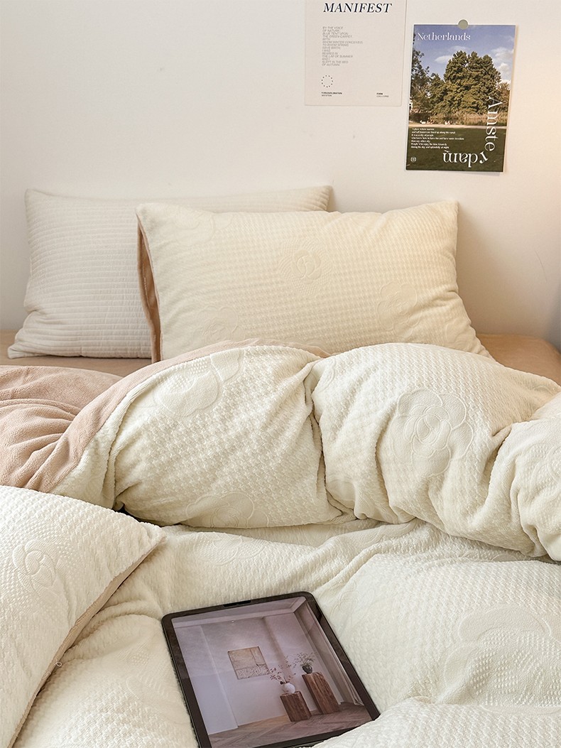(总)优彩 2025新款雕花牛奶绒四件套烂花牛奶绒四件套,若叶-奶杏,若叶-浅荷绿,玫瑰-粉,玫瑰-米,小几何-婴儿蓝