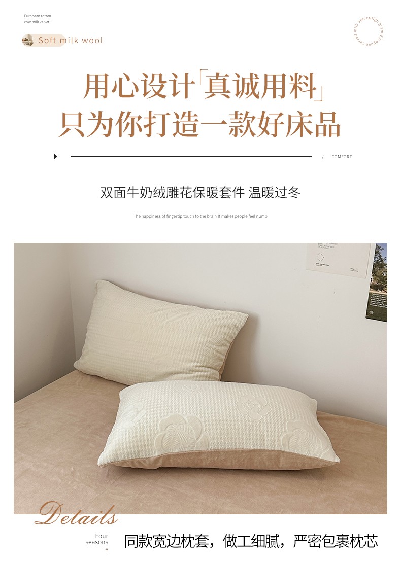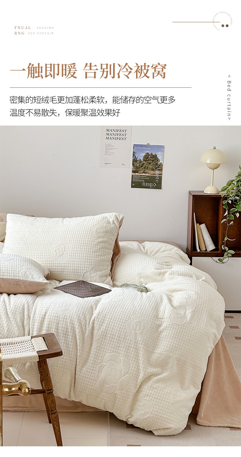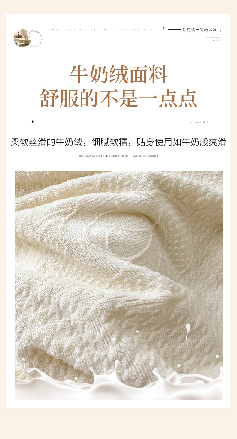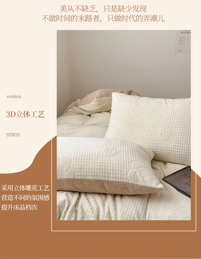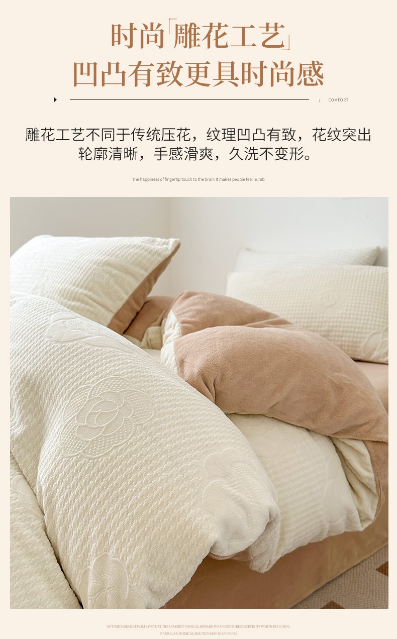 商品名称:优彩 2023新款高克重烂花牛奶绒剪花立体雕花牛奶绒四件套 嘉伯丽-奶咖