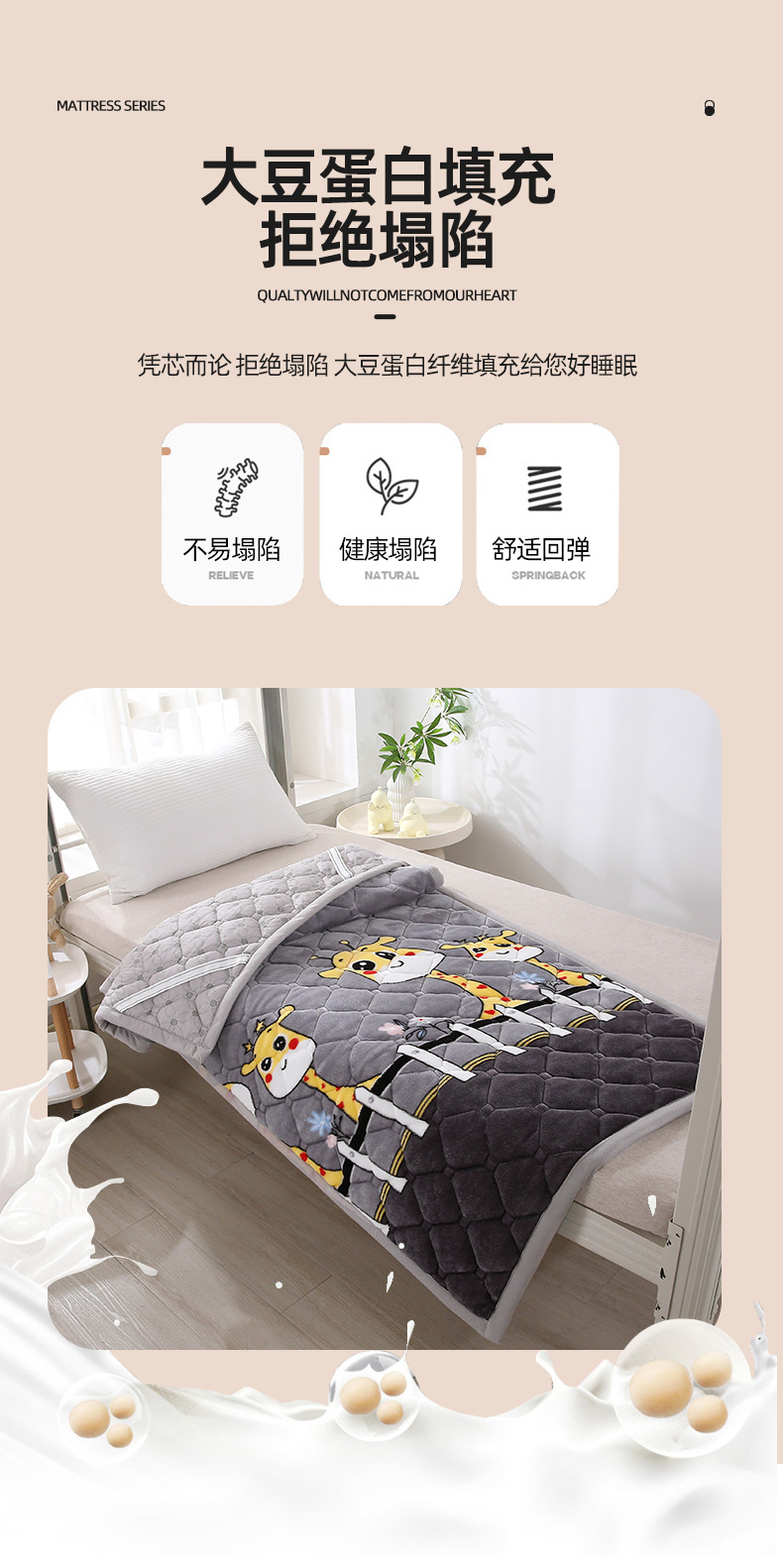 当前位置: 91家纺网 > 商品网购 > 床垫/床褥 > 普通床垫 > 东宇床垫 2025新款A类抗菌牛奶绒加厚大豆学生床垫 可爱长颈鹿