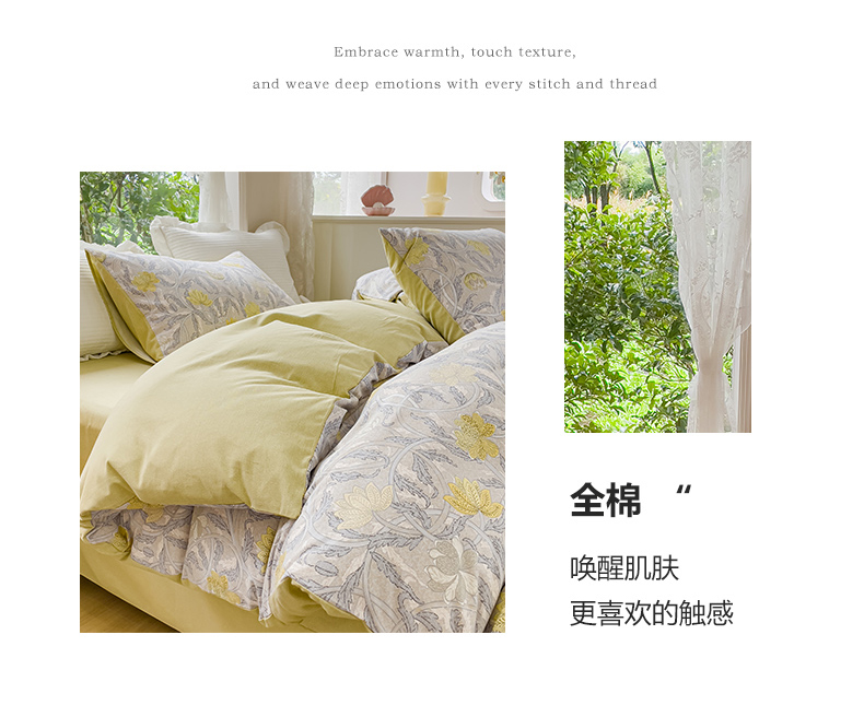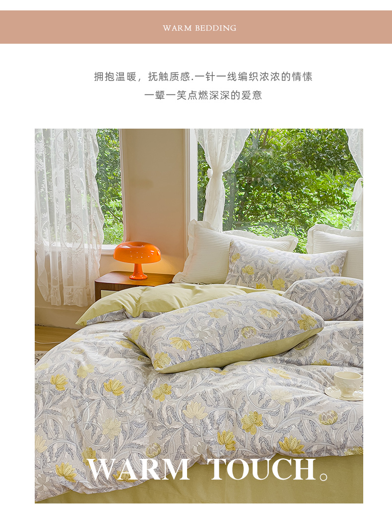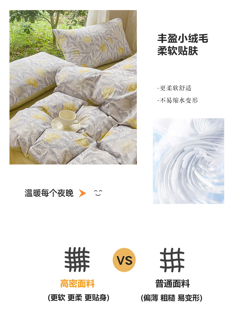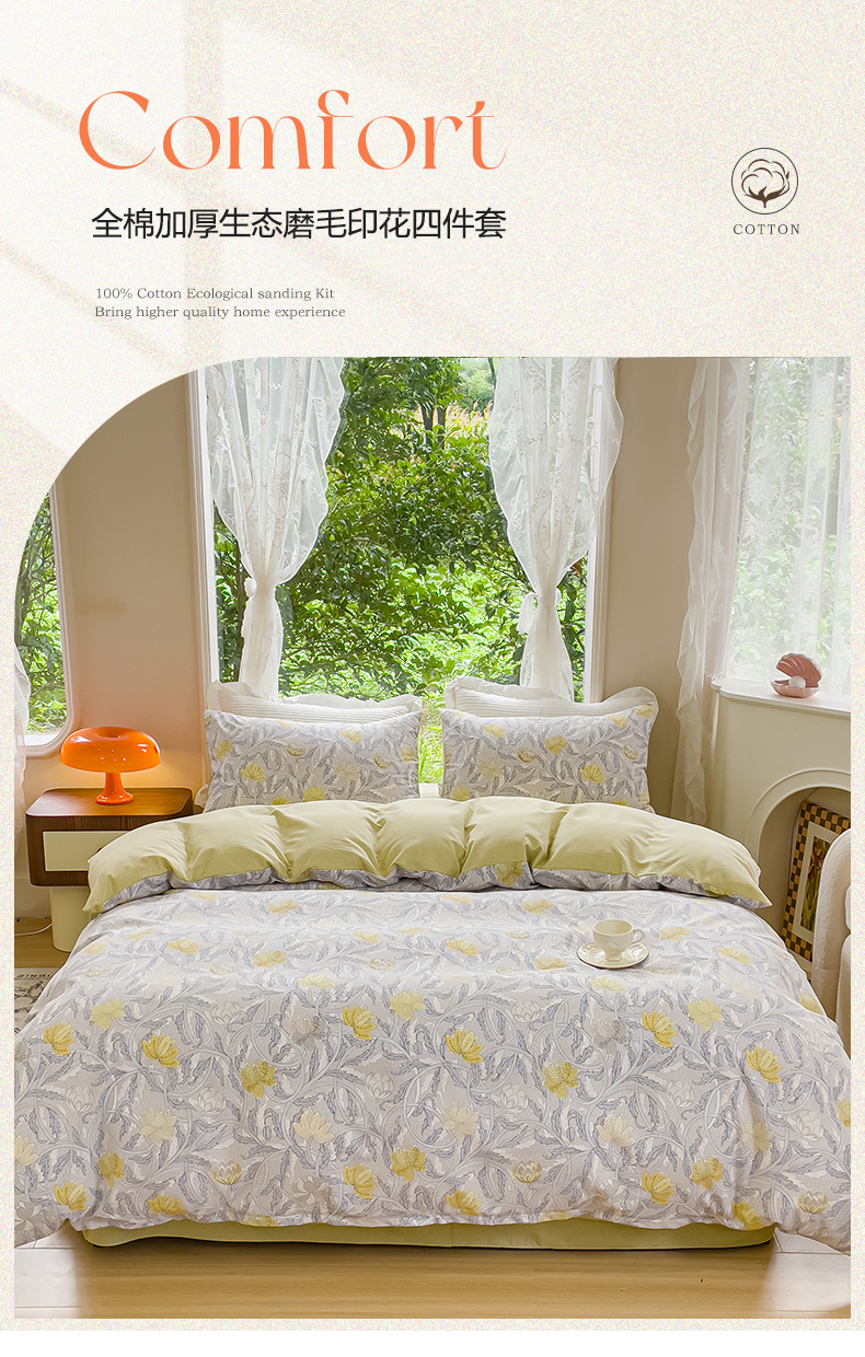 商品名称:感遇家纺 2023新款印花系列全棉生态磨毛加厚四件套 漫森