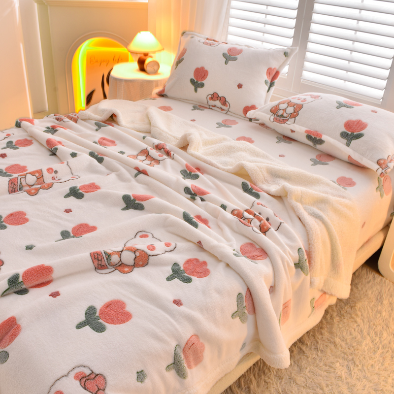 (总)同田家纺 2023年新款雪花绒&羊羔绒四件套,爱心熊,彩虹桥,草莓泡芙,蛋糕兔,快乐桃桃,露露,煤球君,米朵,晴天之旅,太空恐龙,小花花,小花园,小萝卜兔,小熊果糖,幸运熊,樱桃少女,郁金香