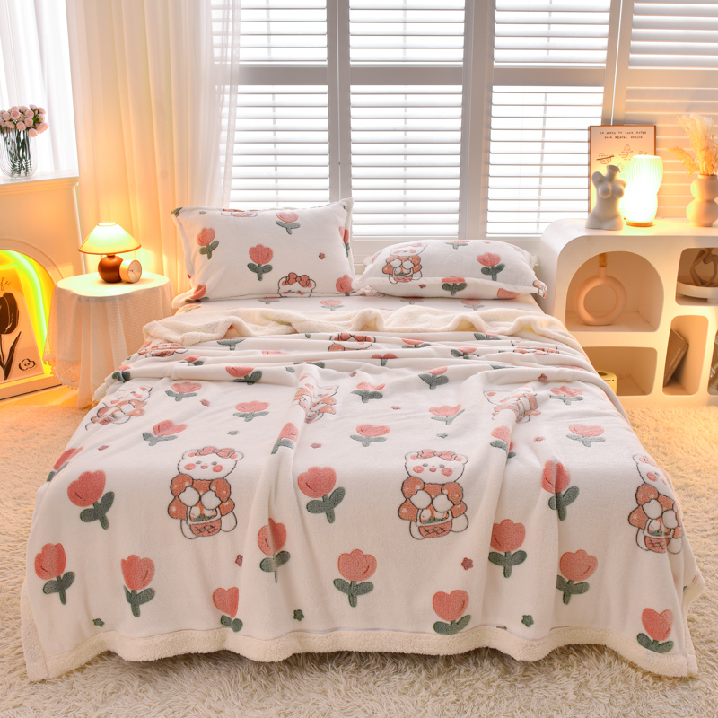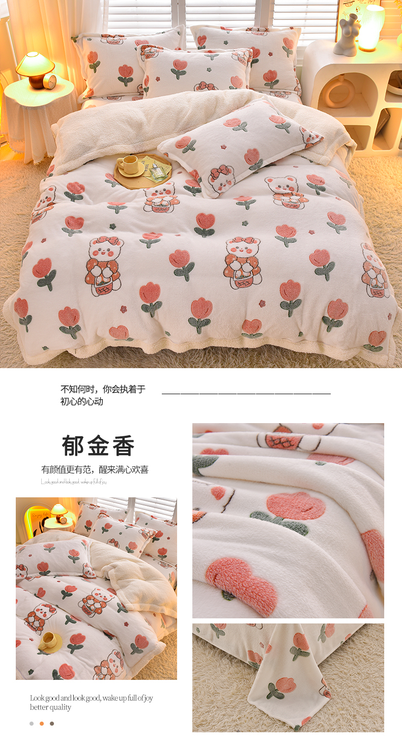 商品名称:同田家纺 2023年新款雪花绒&羊羔绒四件套 郁金香