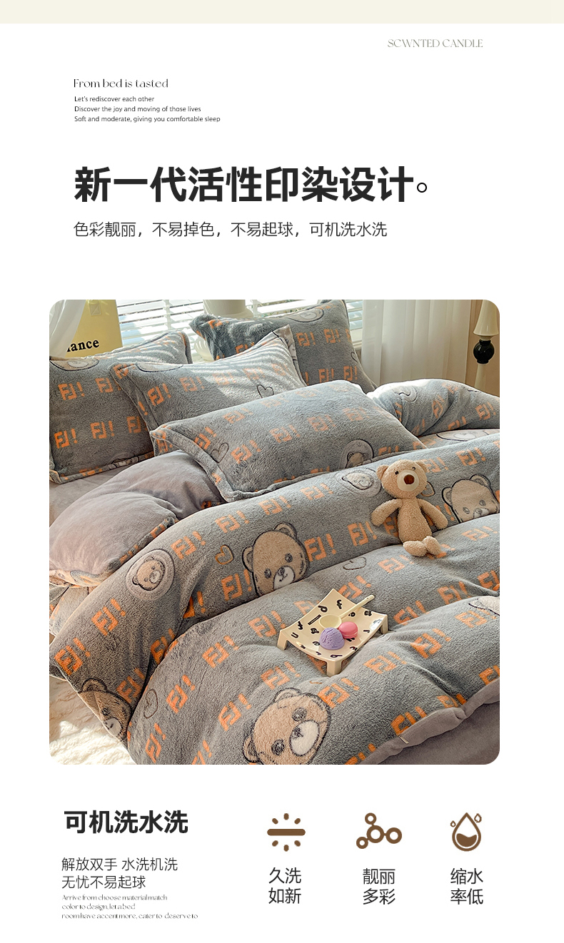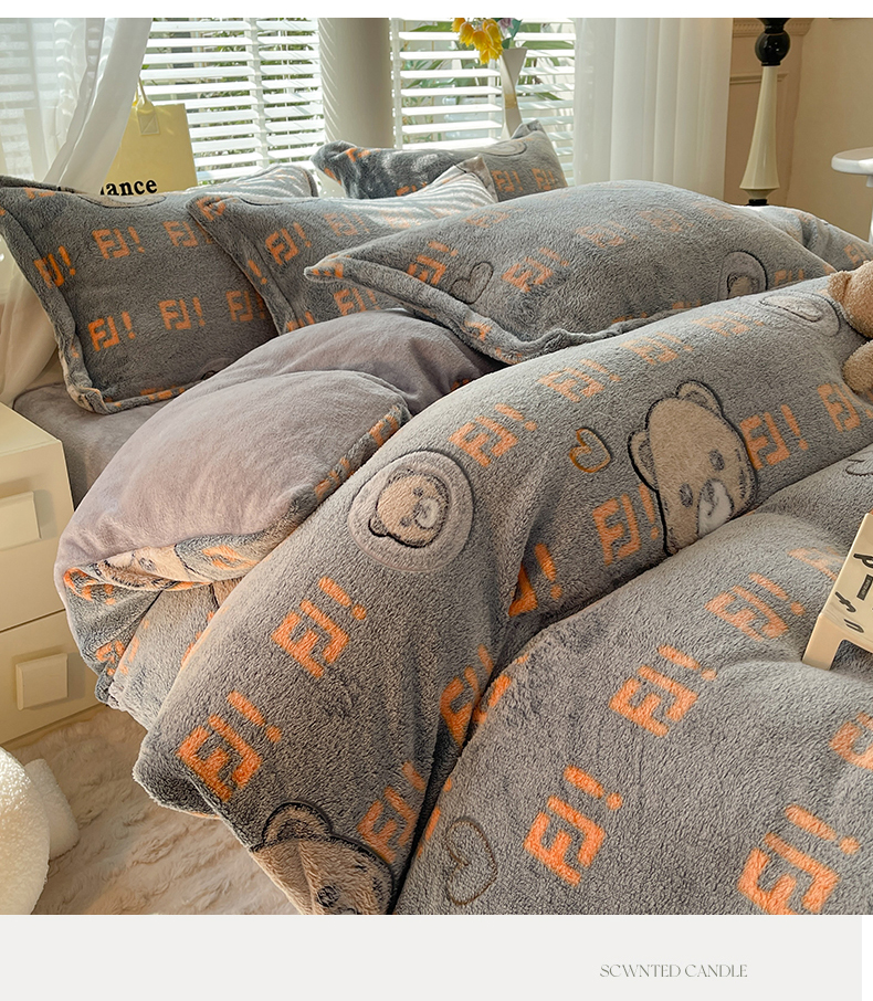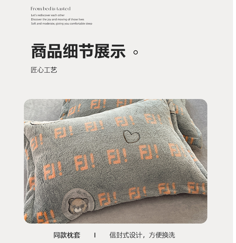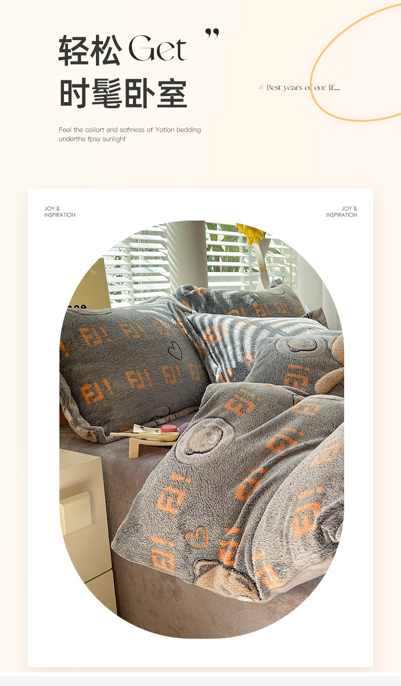 当前位置: 91家纺网 > 商品网购 > 床品套件 > 四件套 > 全棉普通四件套 > 妖妖家纺 2023新款妖妖雪花绒单品三四件套 呆萌字母熊