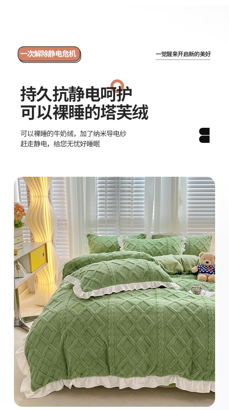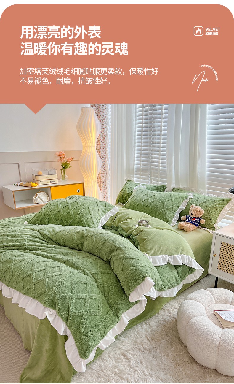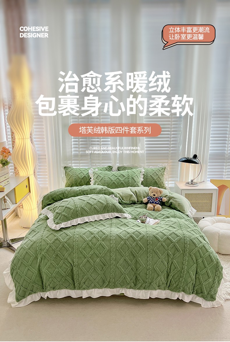 商品名称:澳梵 2023新款温柔梦境花梦塔芙绒韩版四件套 温柔梦境-草绿