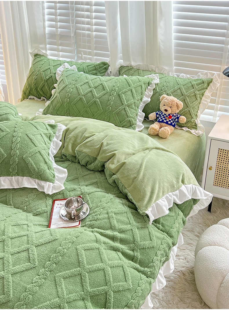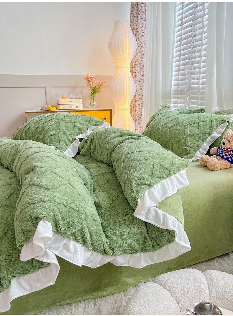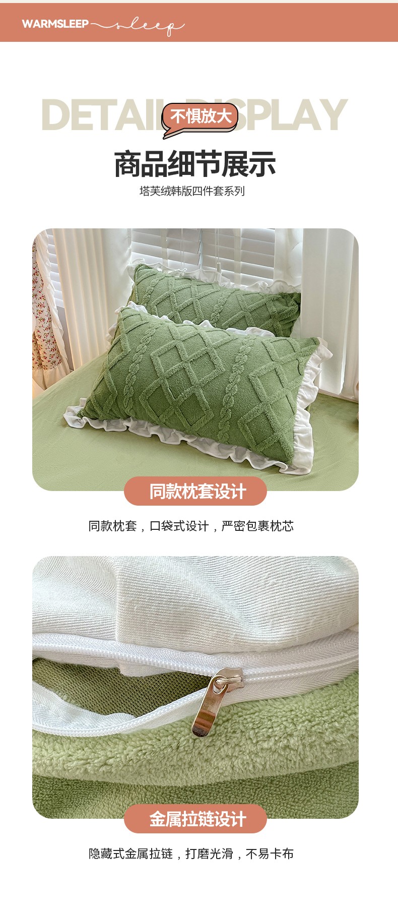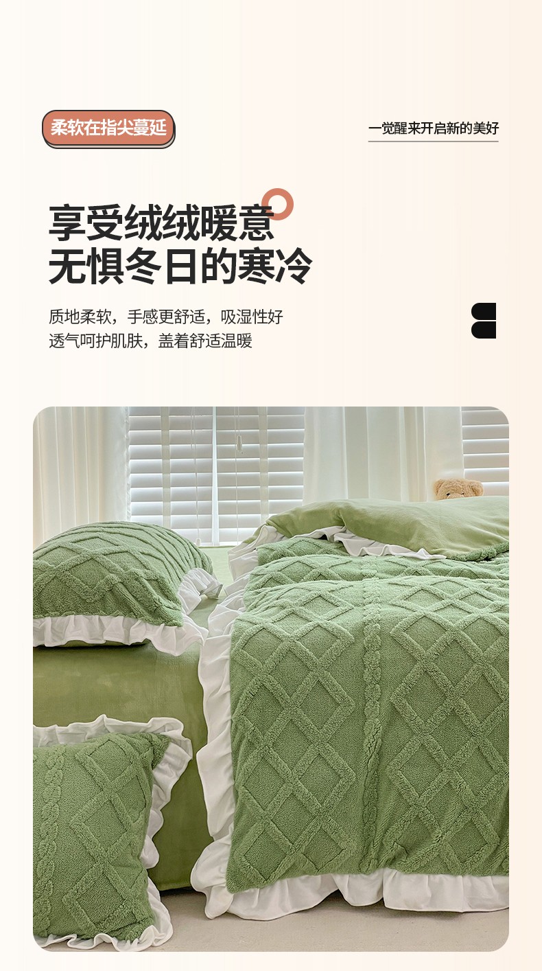 商品名称:澳梵 2023新款温柔梦境花梦塔芙绒韩版四件套 温柔梦境-草绿