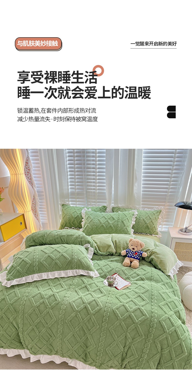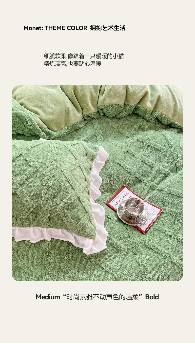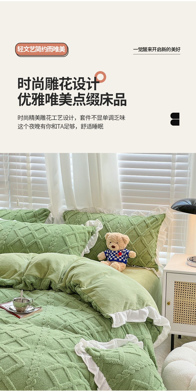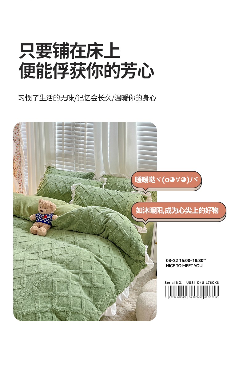 (总)澳梵家居 2025新款雕花牛奶绒韩版四件套-竹影柔柔,竹影柔柔,灰绿蝴蝶结,灰绿樱桃,卡其叶影,绿色叶影,漫调花语-粉,漫调花语-绿,玫瑰蝶语-蓝,玫瑰蝶语-绿,奶芙蝴蝶结,糖霜玫瑰-卡其
