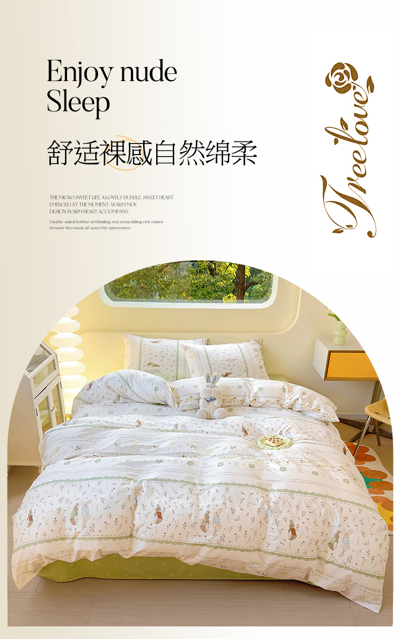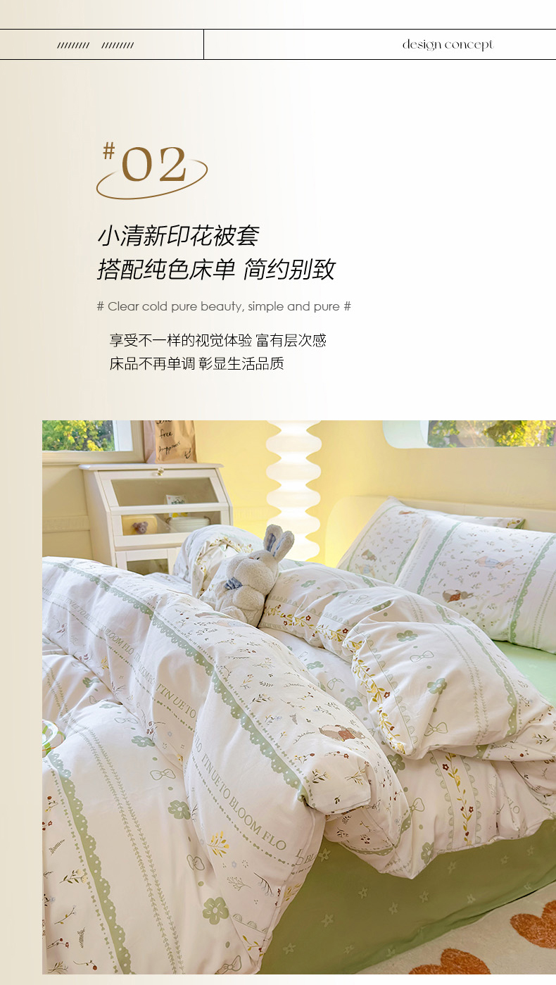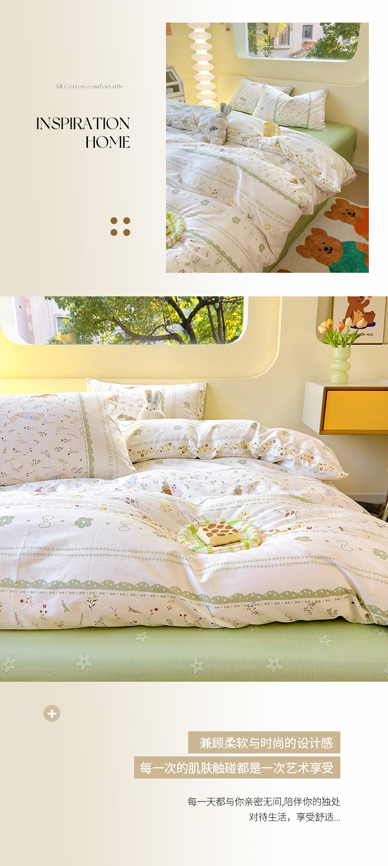 (总)田野 2022新款水洗棉小清新小碎花全棉四件套,花丛,花涧,绿婉,曼舞,桃夭,甜馨草莓,兔兔,银杏