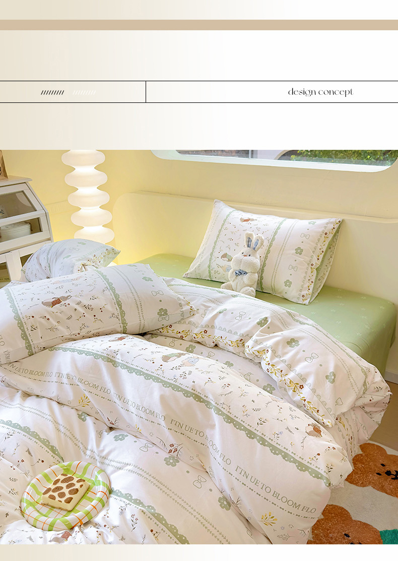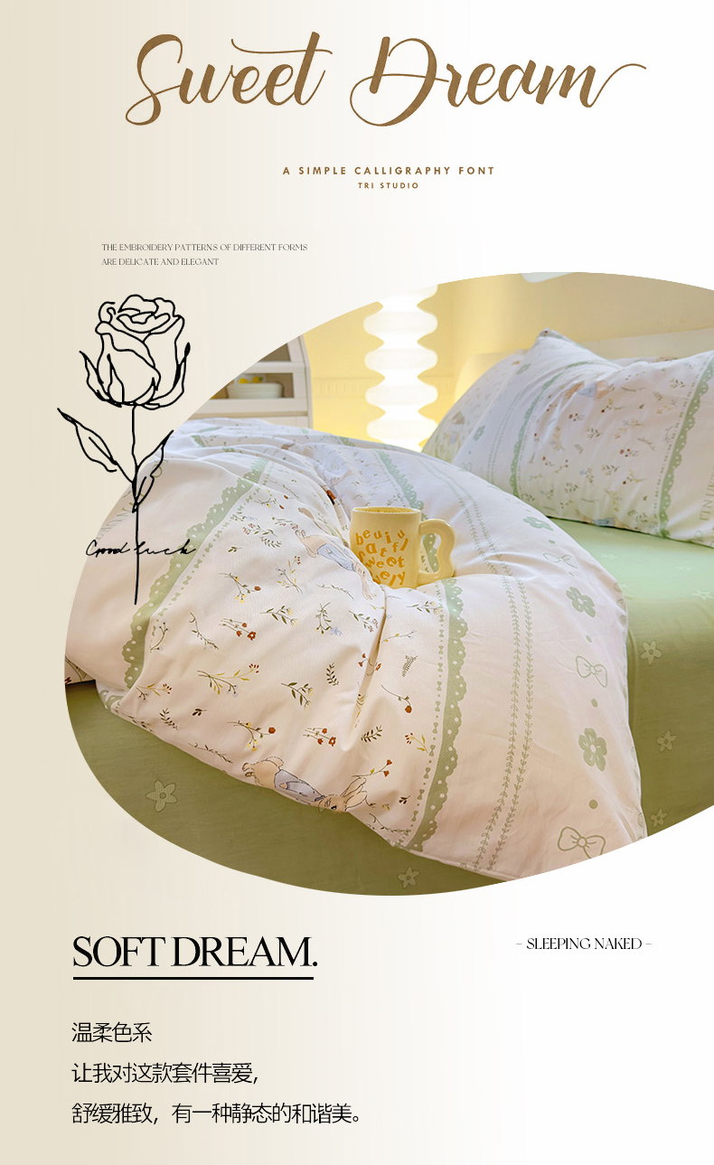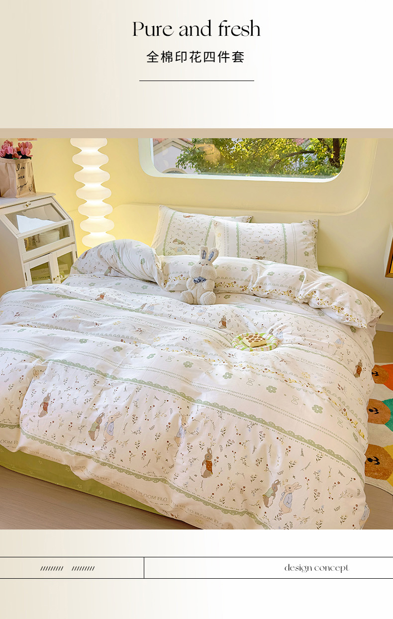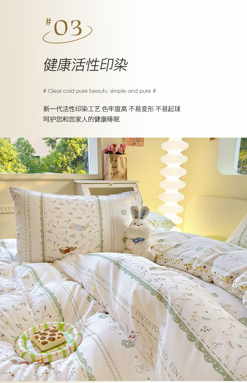 (总)田野2021小清新全棉四件套纯棉碎花田园风三件套,菲菲兔,芬芳-绿,花期,萝拉,莎拉,恬爱,仙草,樱花草-蓝