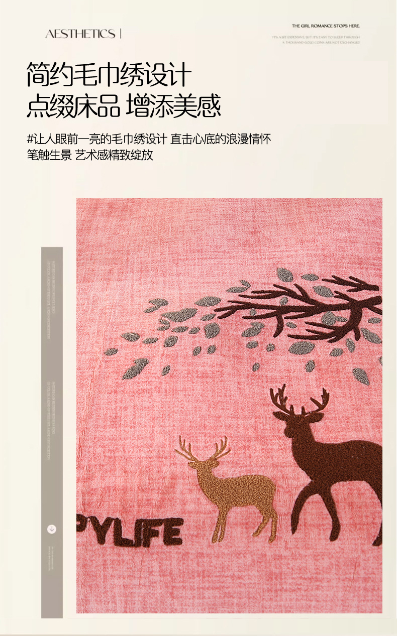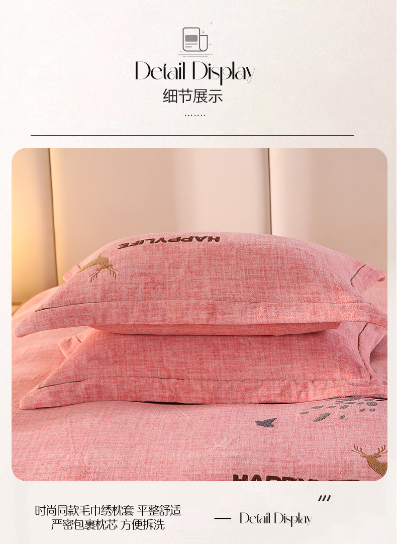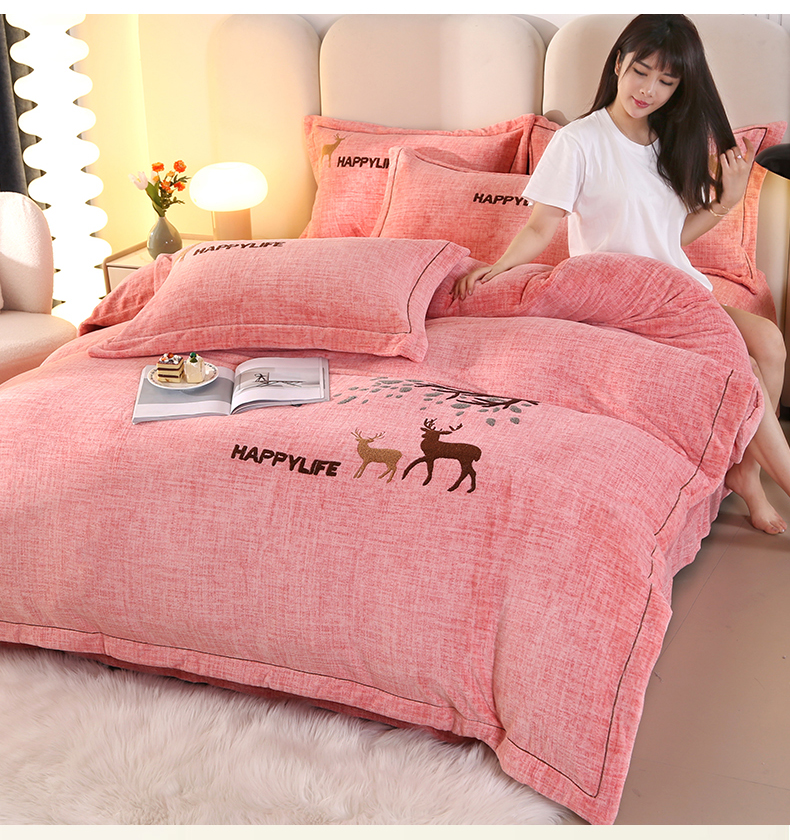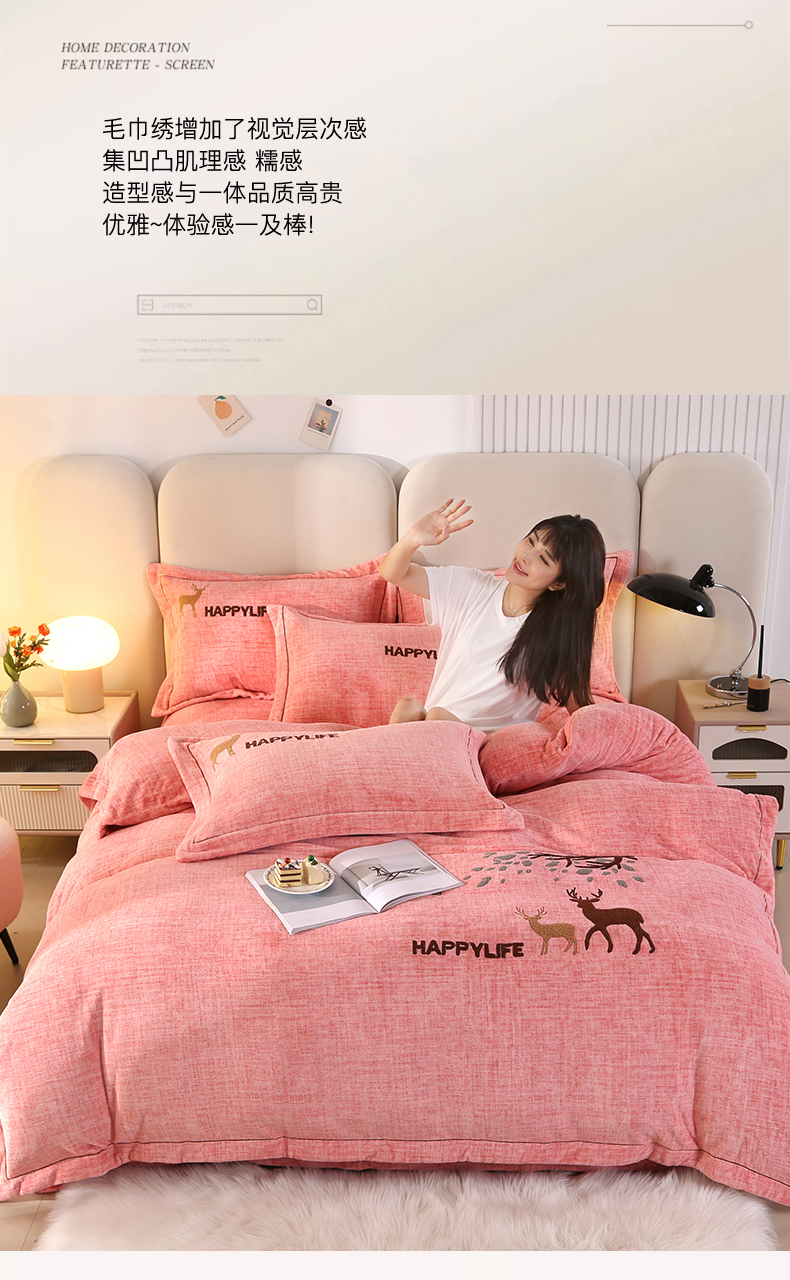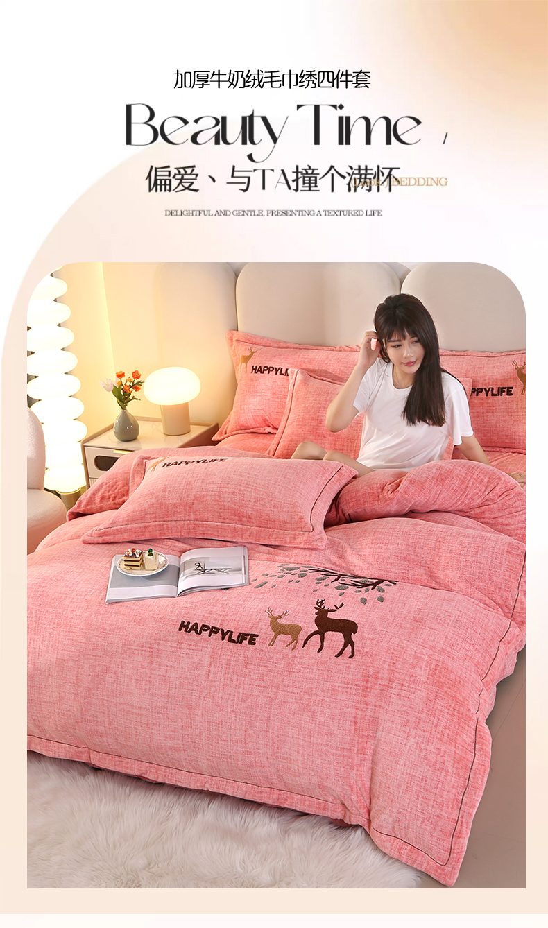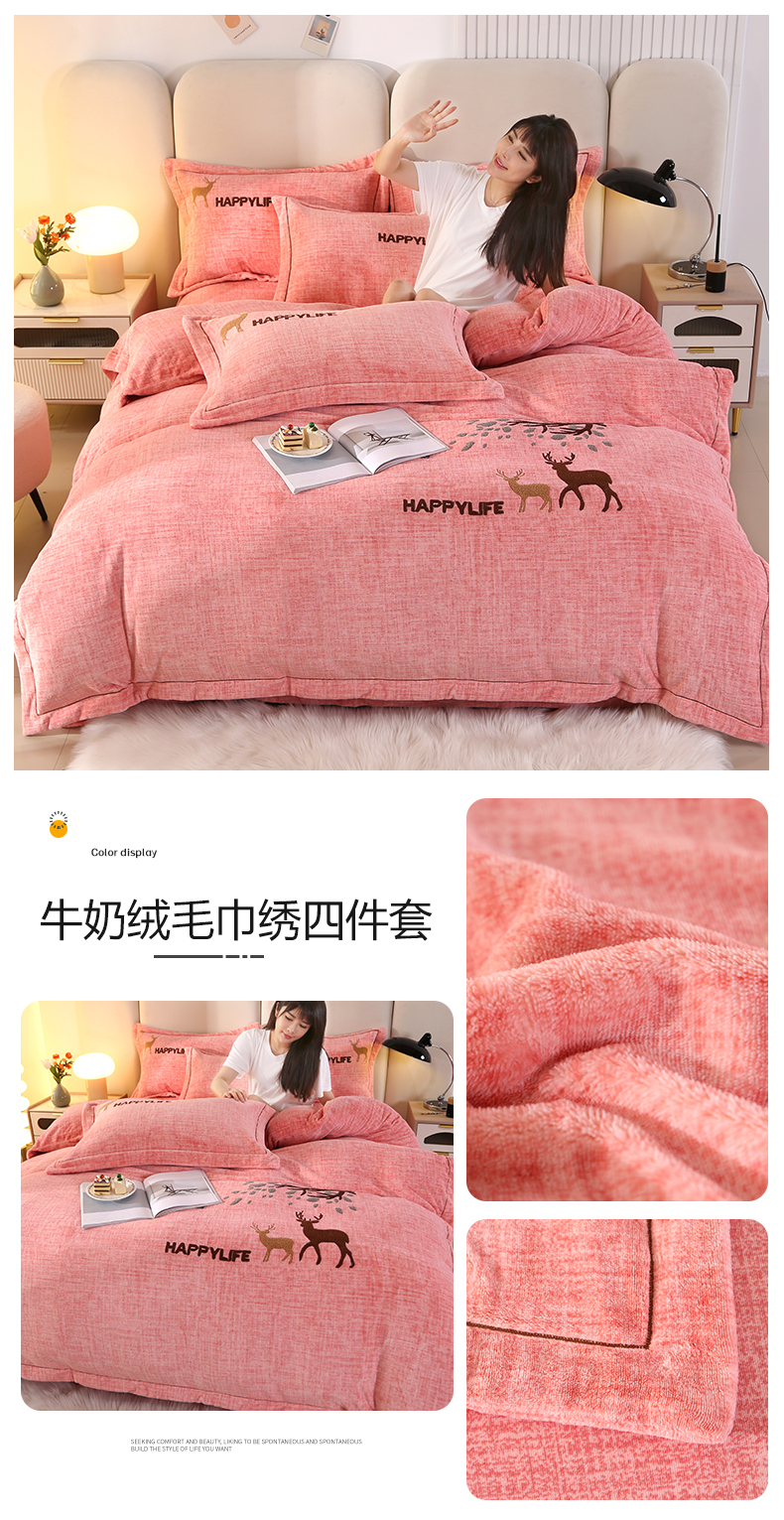 代芙家纺 2023秋冬新品全消光8.5斤牛奶绒加厚保暖毛巾绣四件套 小鹿-玉