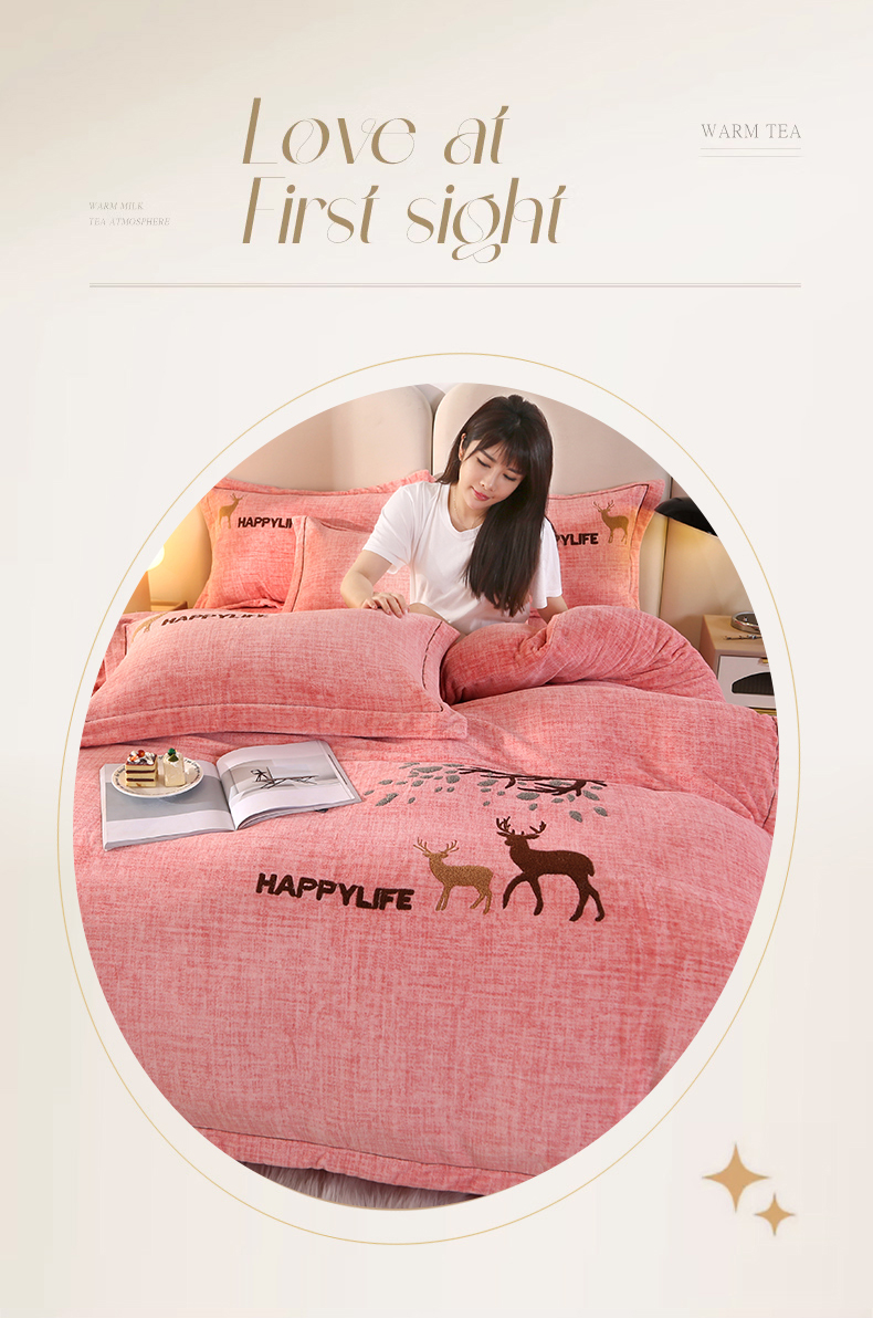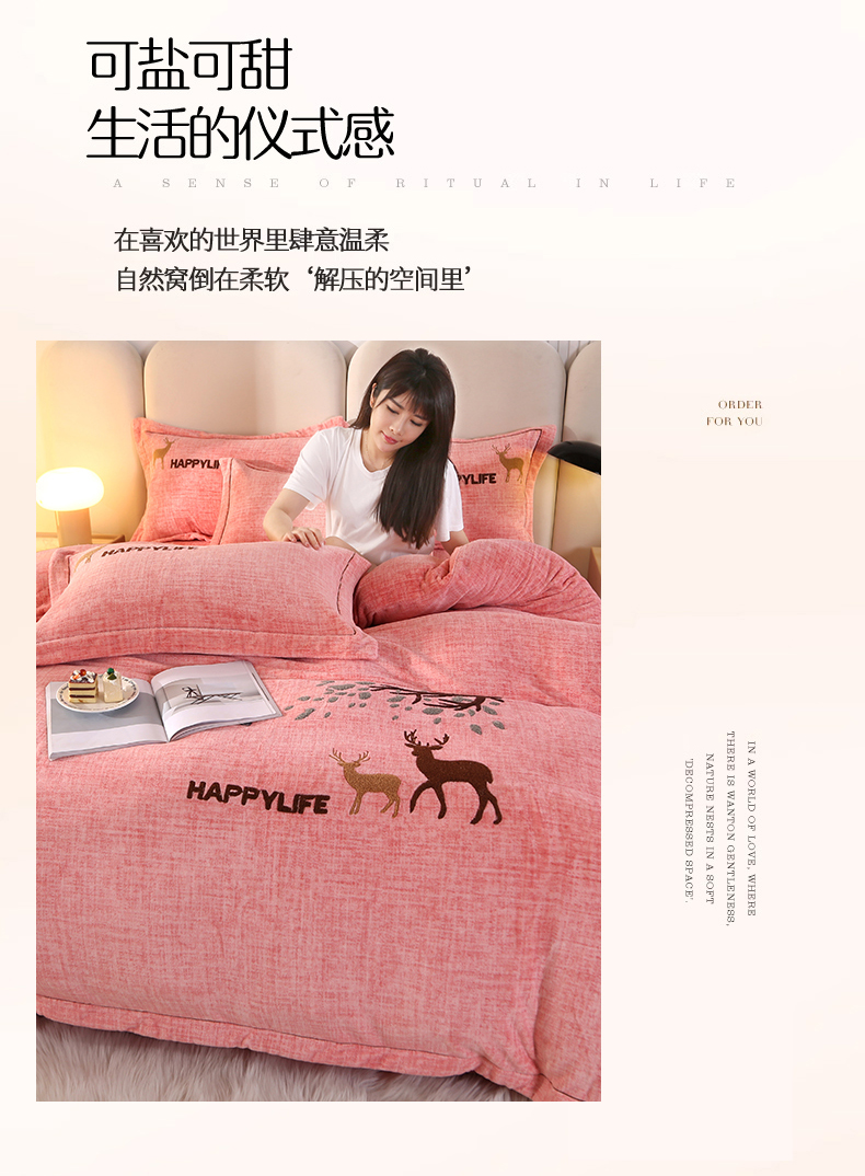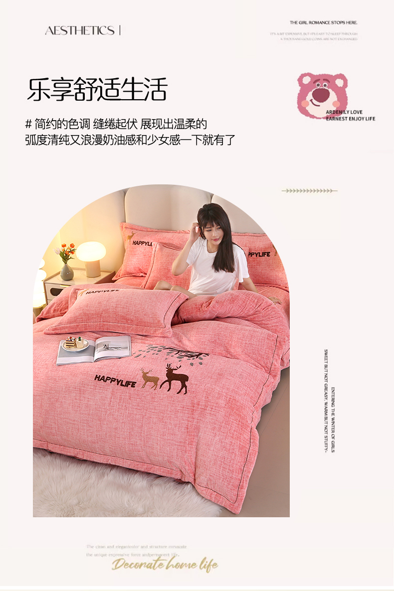 (总)代芙家纺 2025新款宝宝绒夹棉床盖款四件套,甜心-粉豆沙,甜心-海蓝,甜心-火山红,甜心-魔力紫,甜心-优雅灰