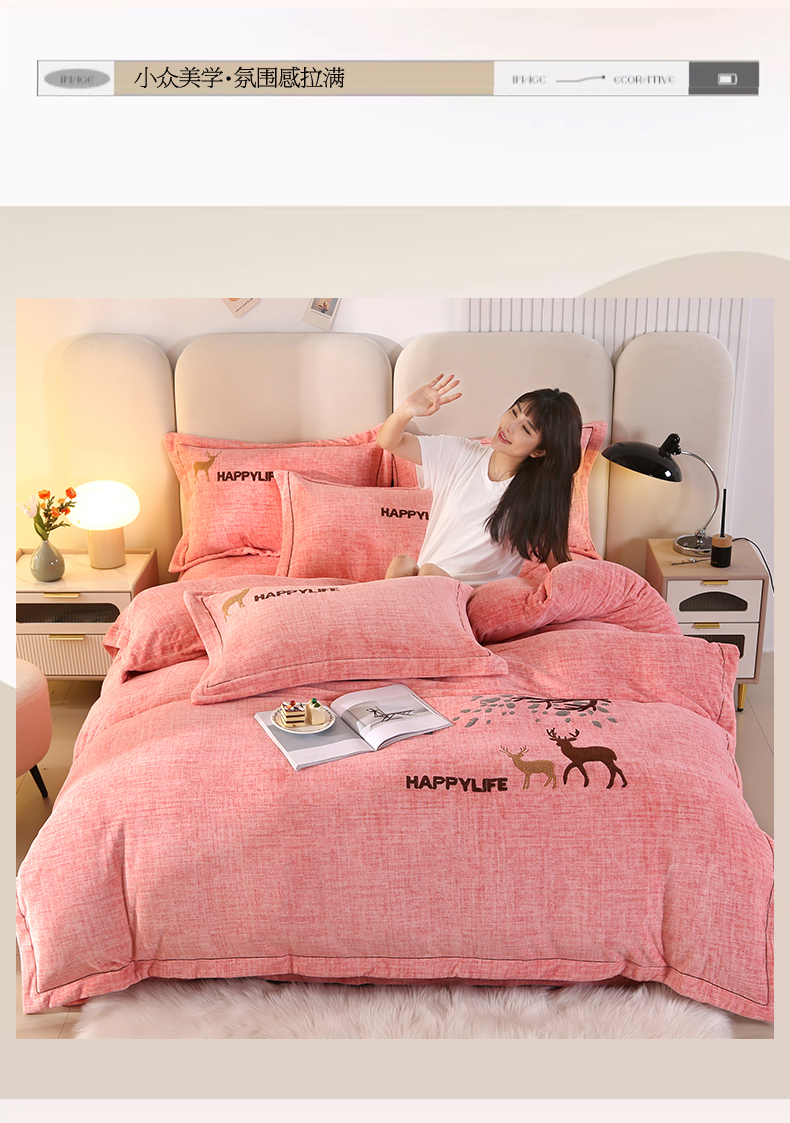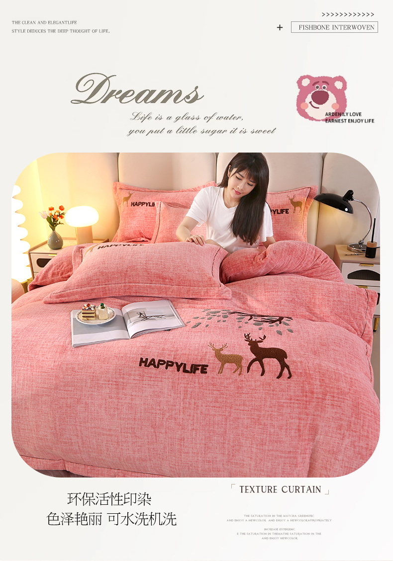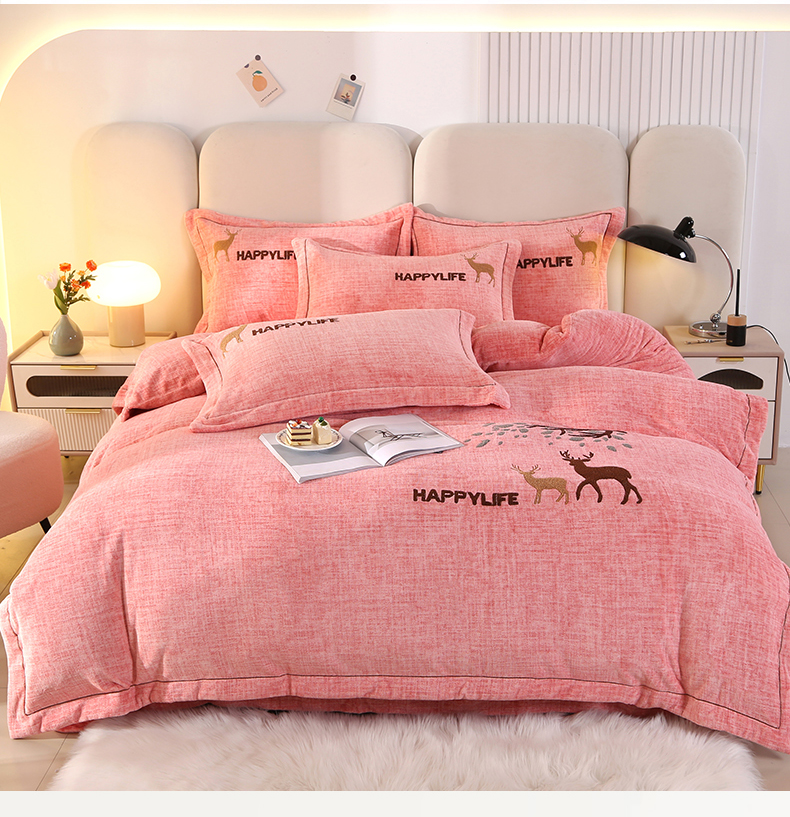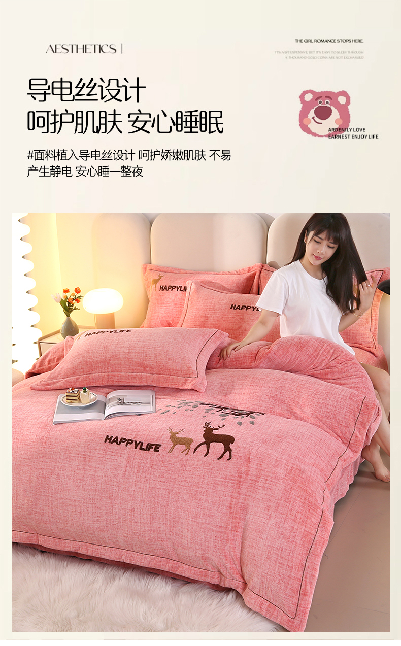 (总)代芙家纺 2025新款宝宝绒夹棉床盖款四件套,甜心-粉豆沙,甜心-海蓝,甜心-火山红,甜心-魔力紫,甜心-优雅灰