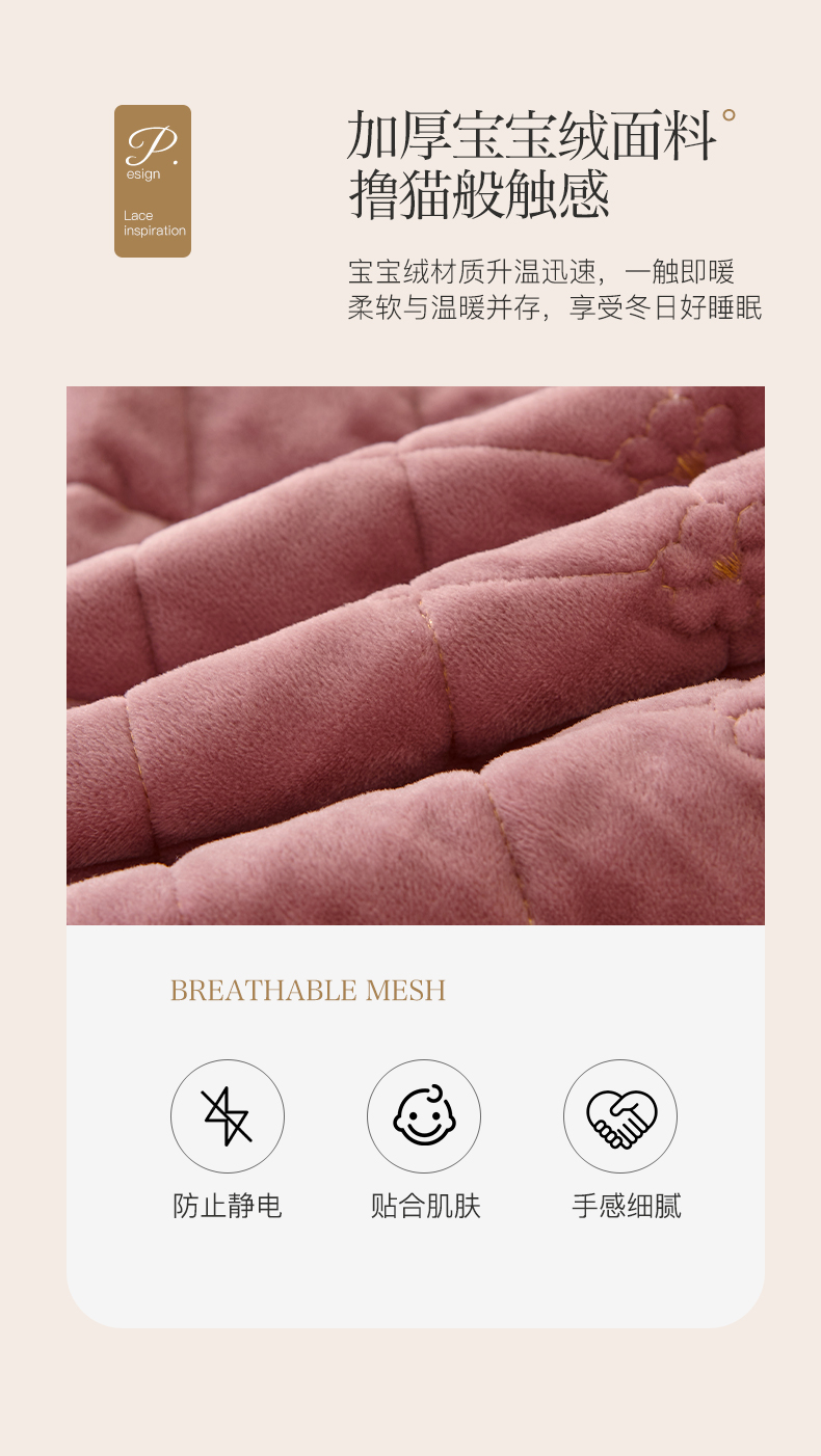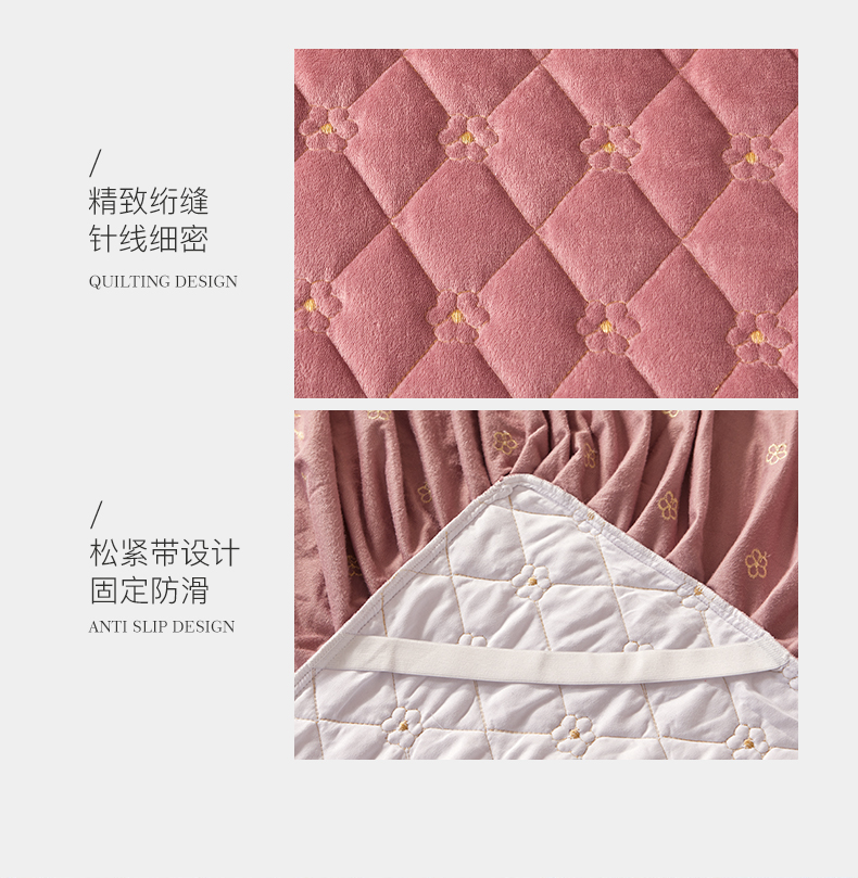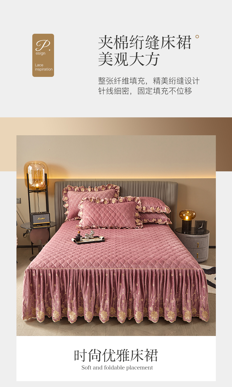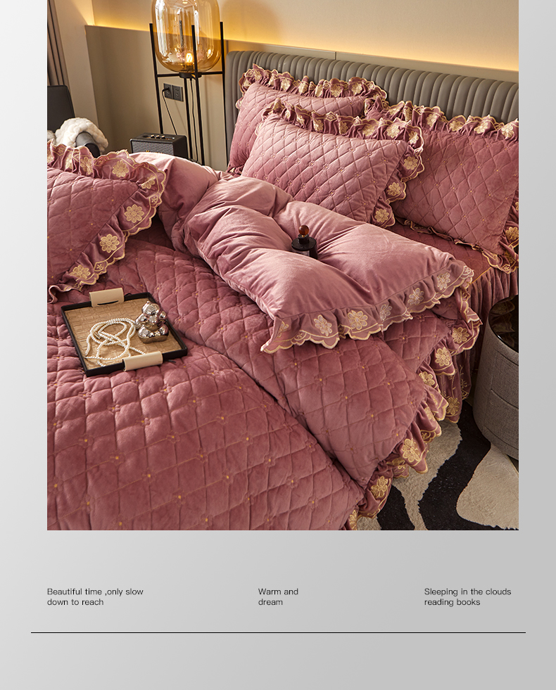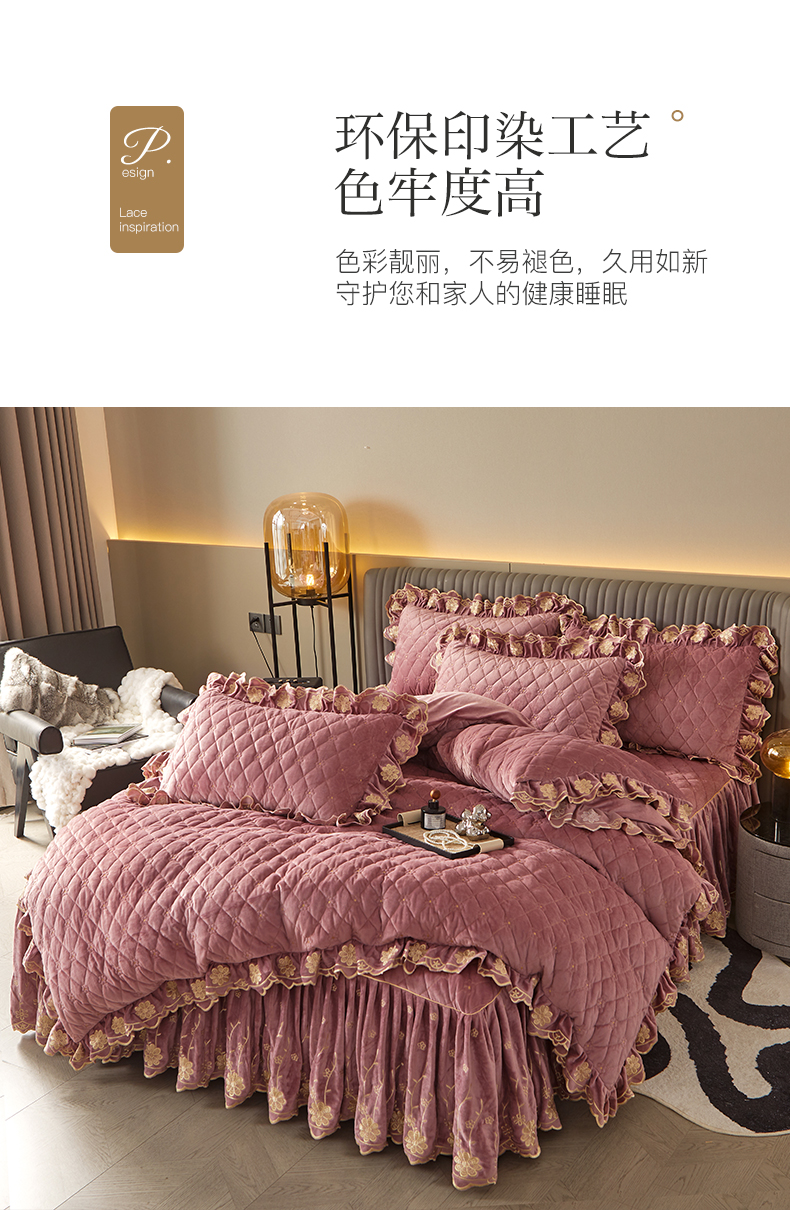 当前位置: 91家纺网 > 商品网购 > 床品套件 > 四件套 > 宝宝绒四件套 > 罗艺轩 2024新款花季宝宝绒全套夹棉絎缝加厚系列床裙套件 豆沙粉