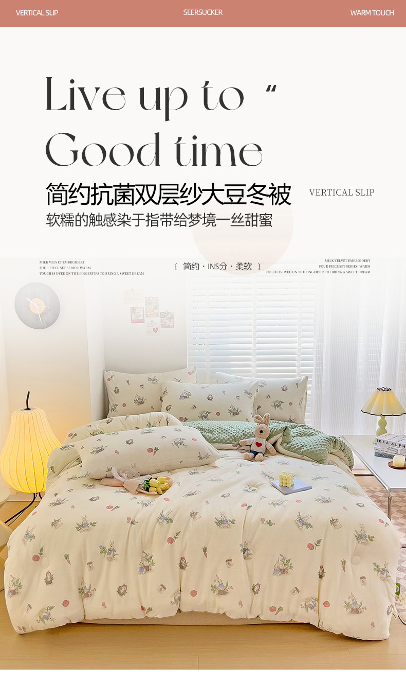(总)寐居 2023新款水洗双层纱+豆豆绒 A类大豆抗菌被