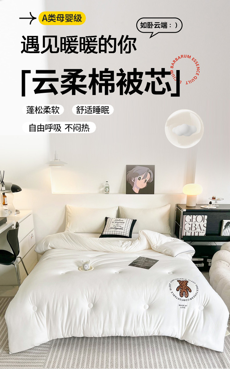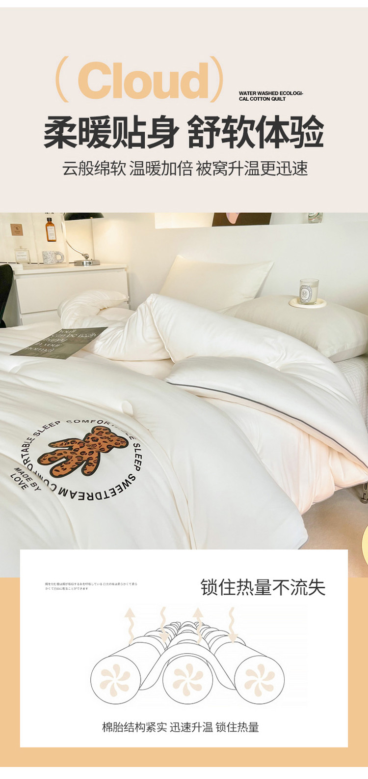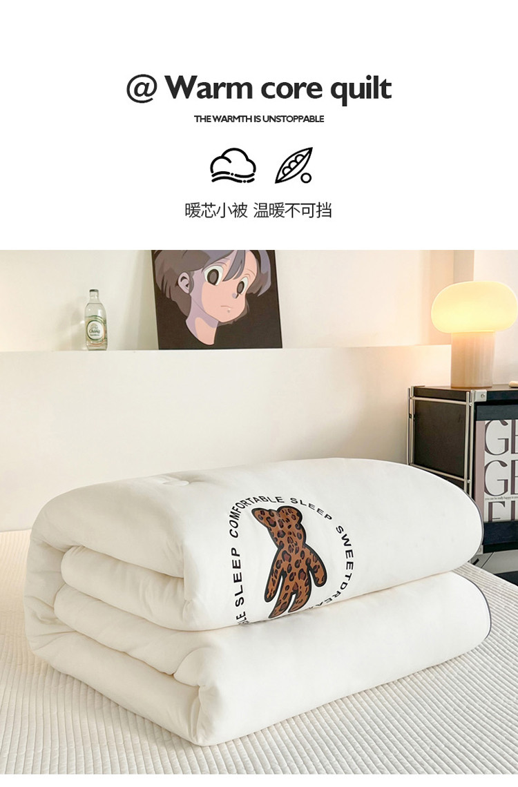 商品名称:寐居 2023新款A类云柔棉被芯-烫画豹纹熊-纯白