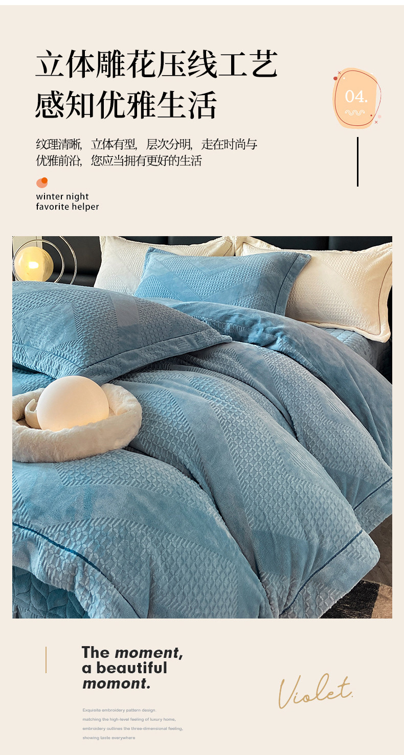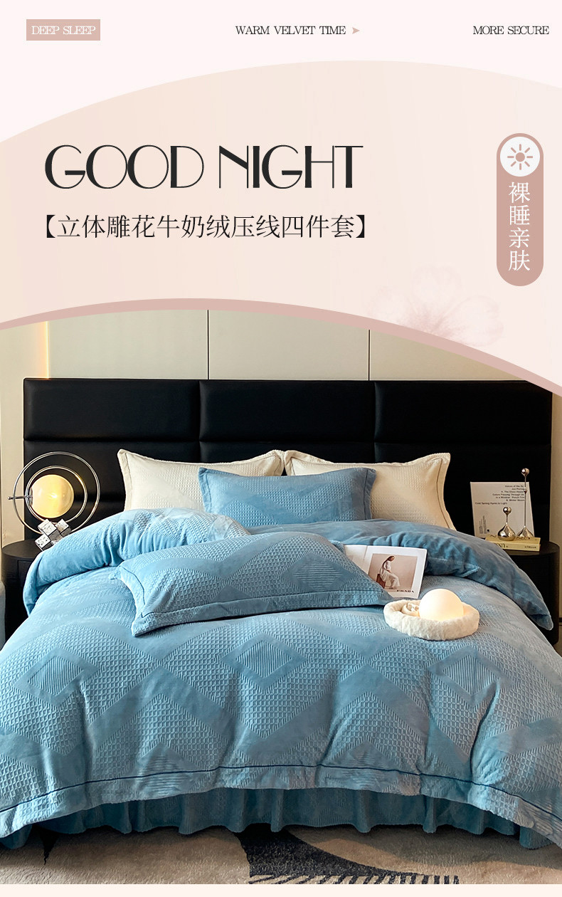 (总)美伦美焕 2025新款加厚雕花绒床盖款四件套-浅叶,浅叶-粉玉,浅叶-卡其,浅叶-绅士灰,浅叶-蔚蓝,浅叶-胭脂红