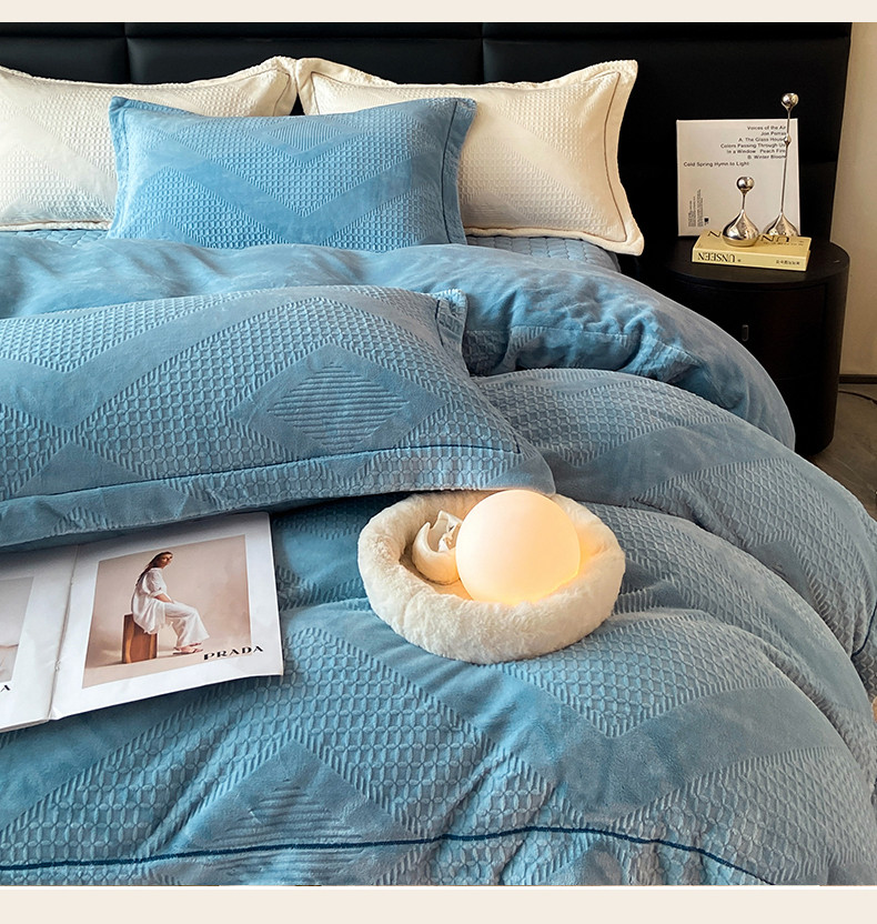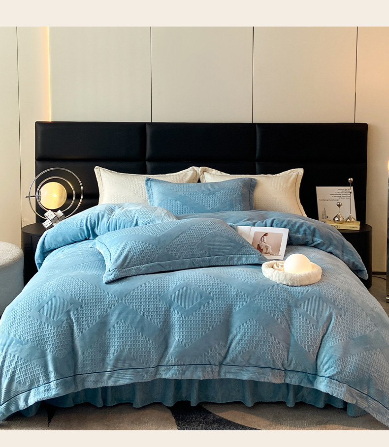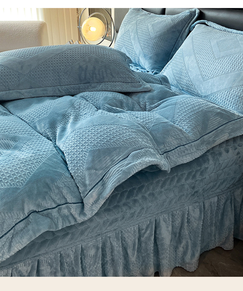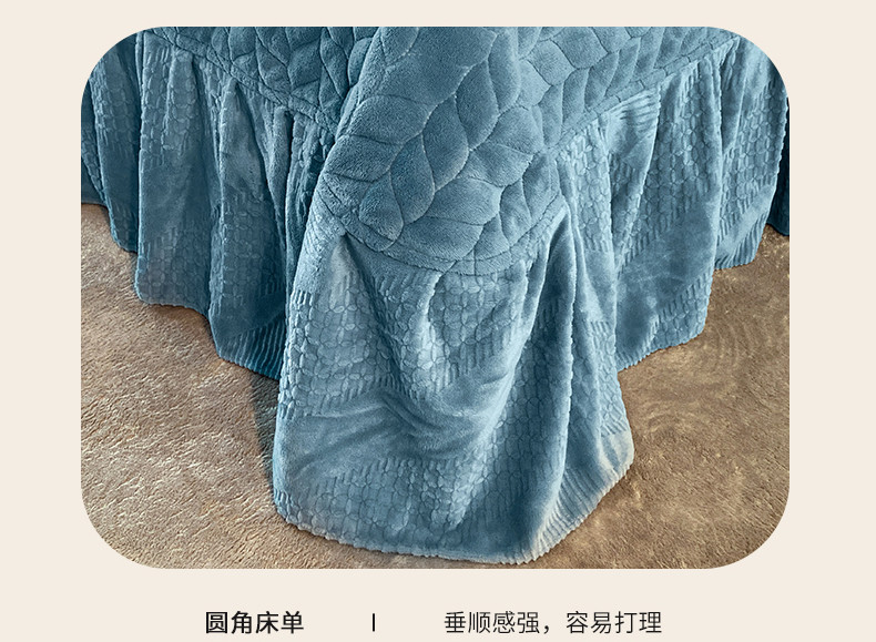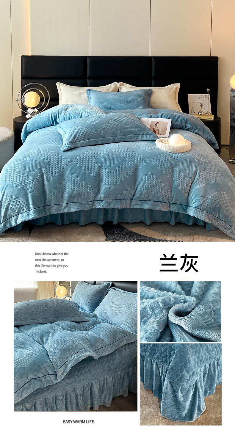美伦美焕2023新款纯色立体雕花牛奶绒床盖四件套床裙款式 兰灰