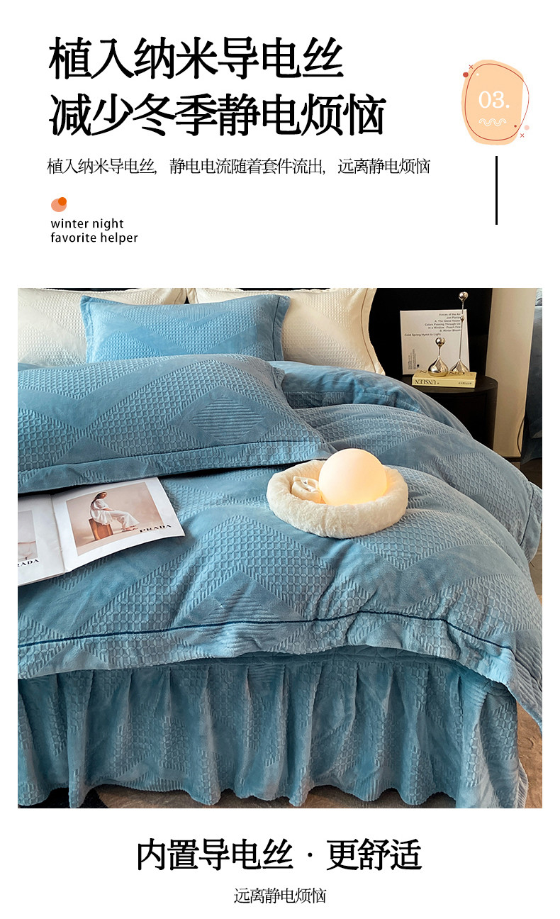 商品名称:美伦美焕2023新款纯色立体雕花牛奶绒床盖四件套床裙款式 兰灰