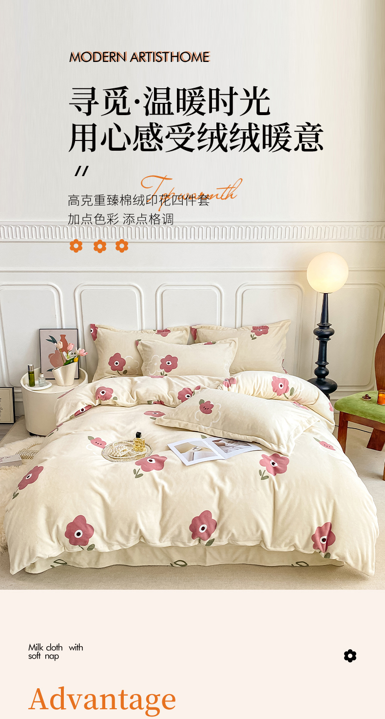 当前位置: 91家纺网 > 商品网购 > 床品套件 > 四件套 > 牛奶绒四件套 > 518家纺 2025新款A类高克重臻棉绒四件套 清新花朵
